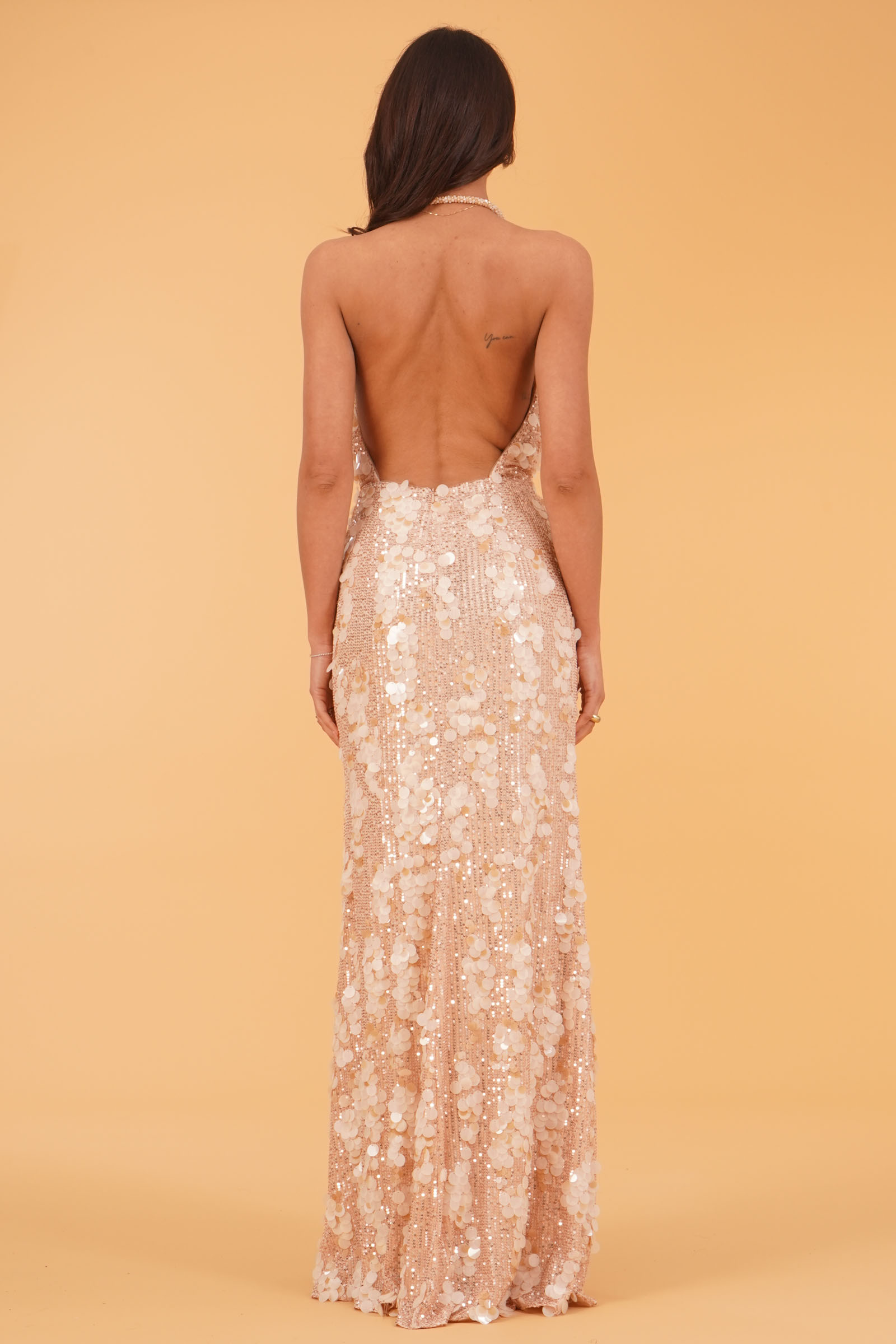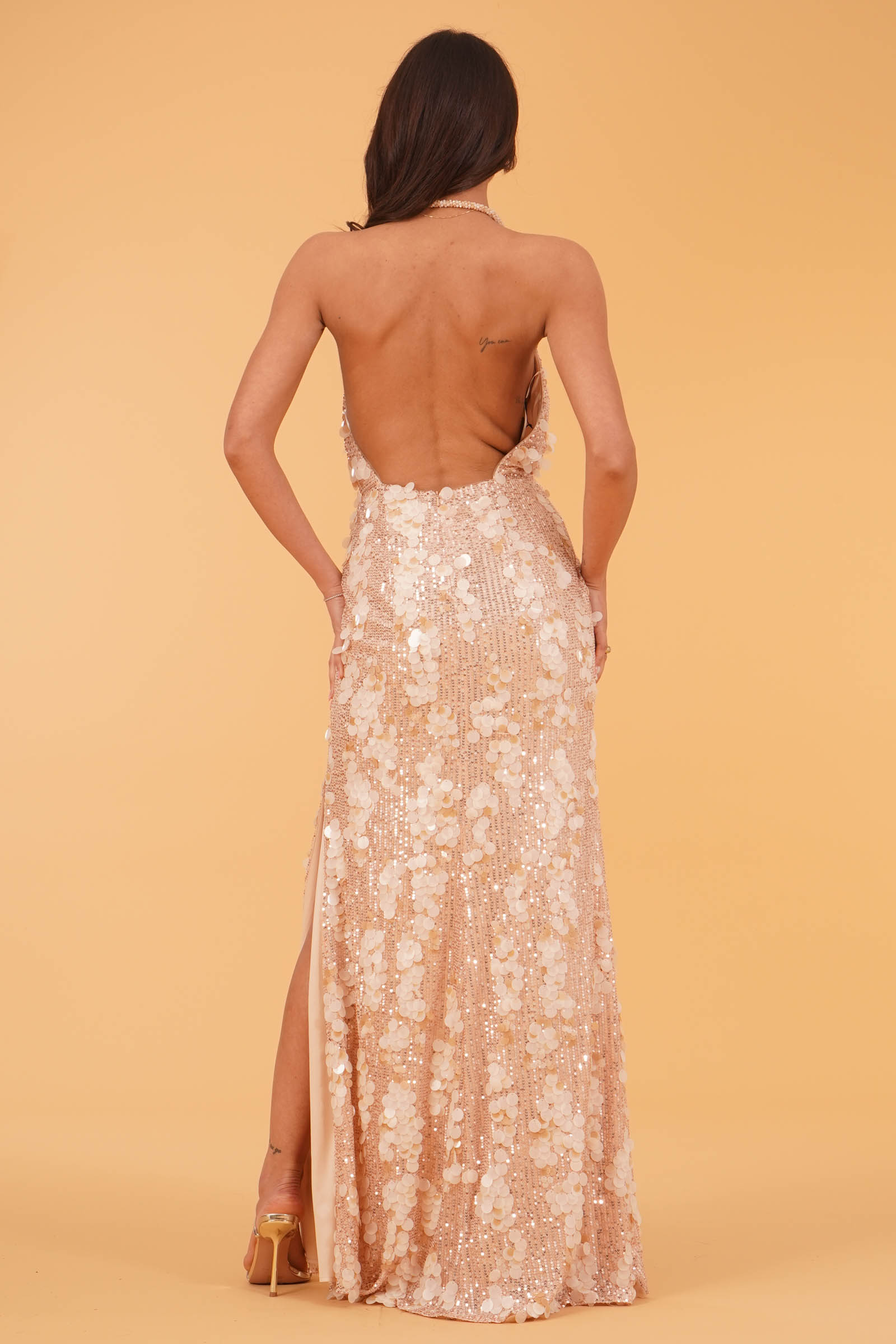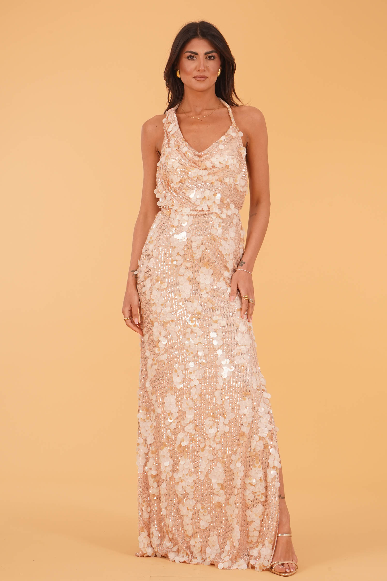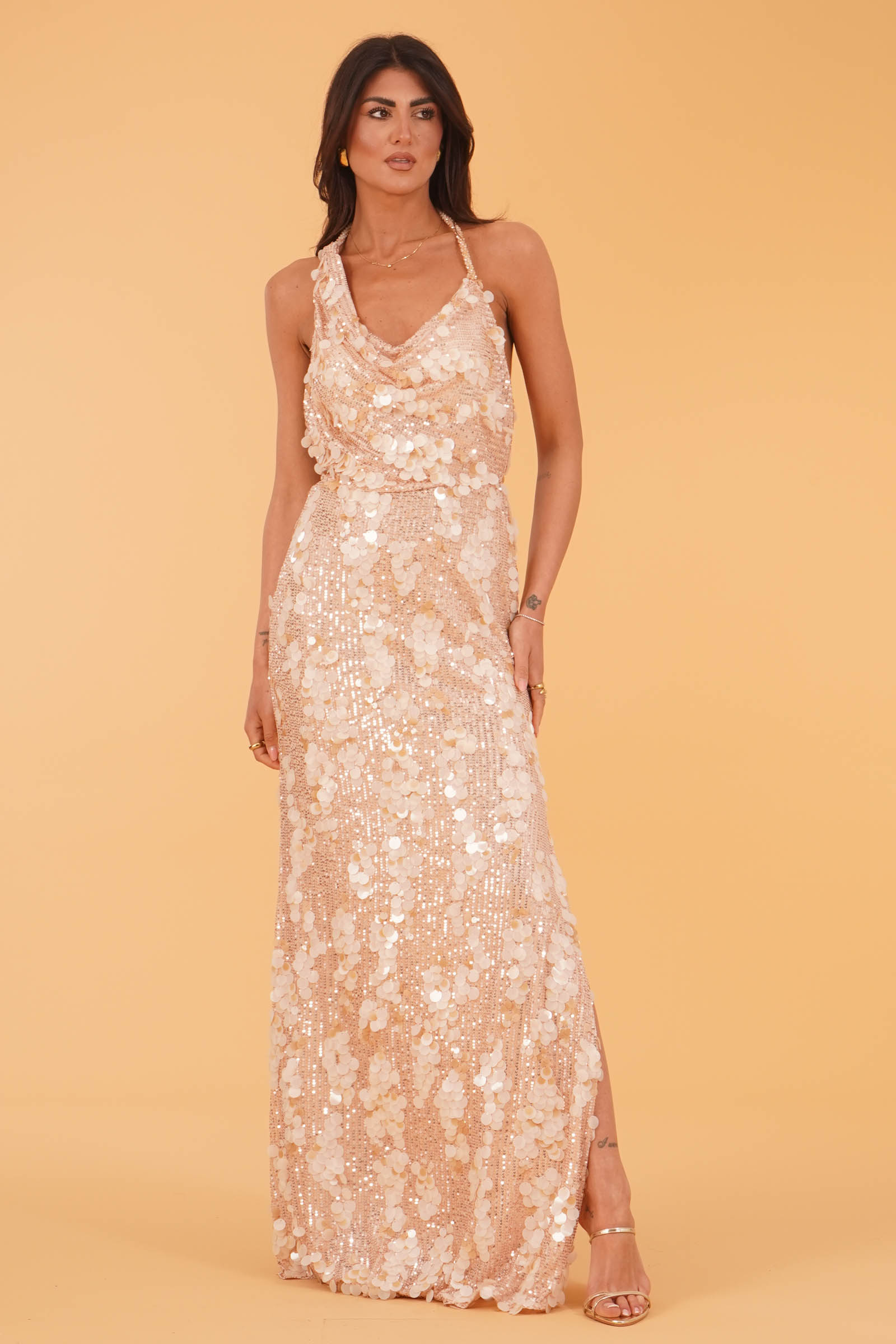Vestibilita' regolare. Spacco laterale. Scollo morbido con coppette incluse. Scollatura posteriore. Chiusura con zip invisibile posteriore. Altezza modella 1,80. Indossa la taglia 40. Composizione: 100% Poliestere. Brand: Allure Evening