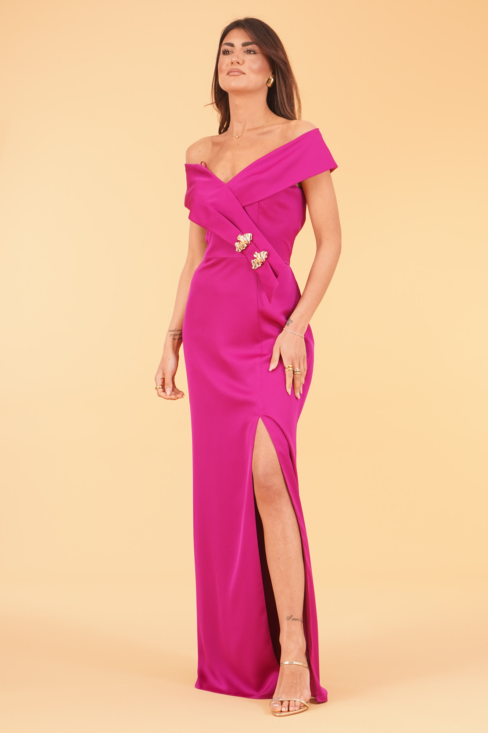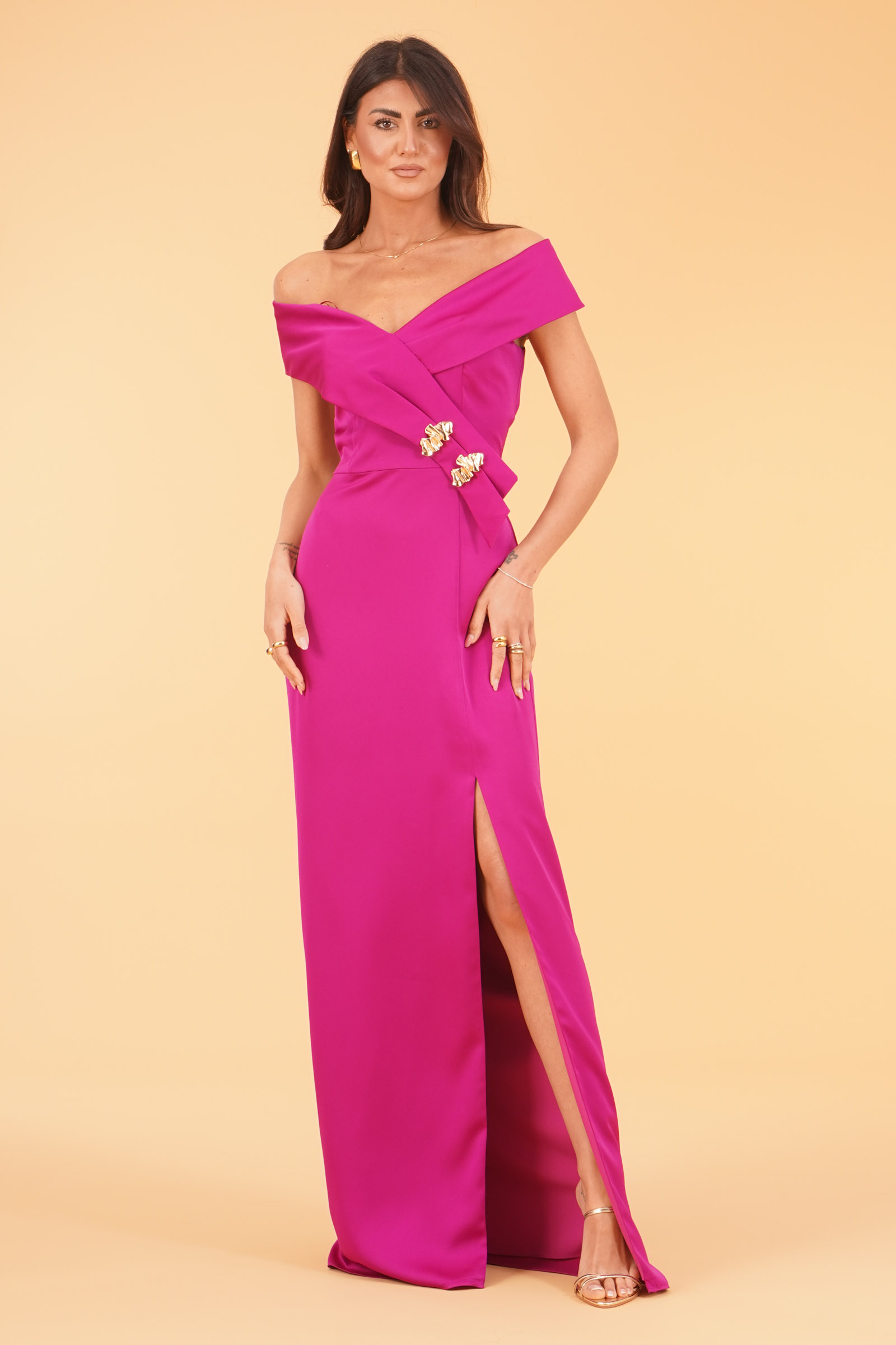Abito lungo con scollo omerale