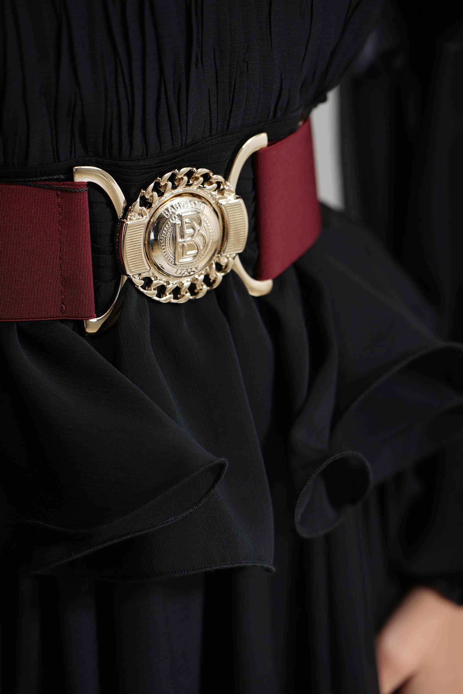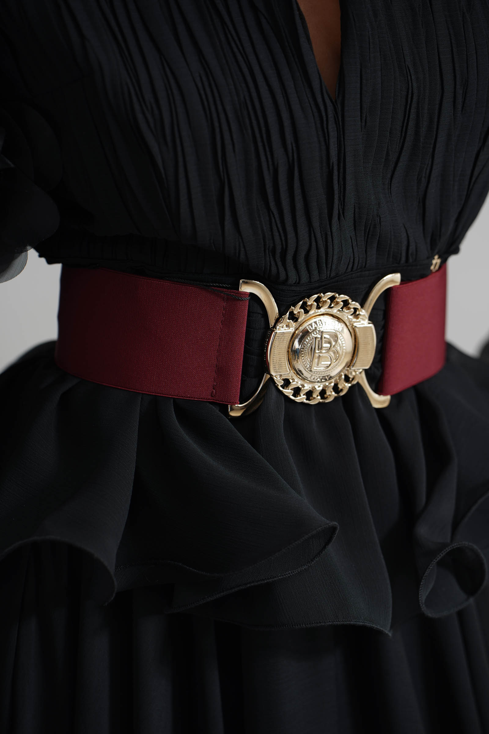 Cintura elastica con logo in metallo color oro. Brand: Babylon