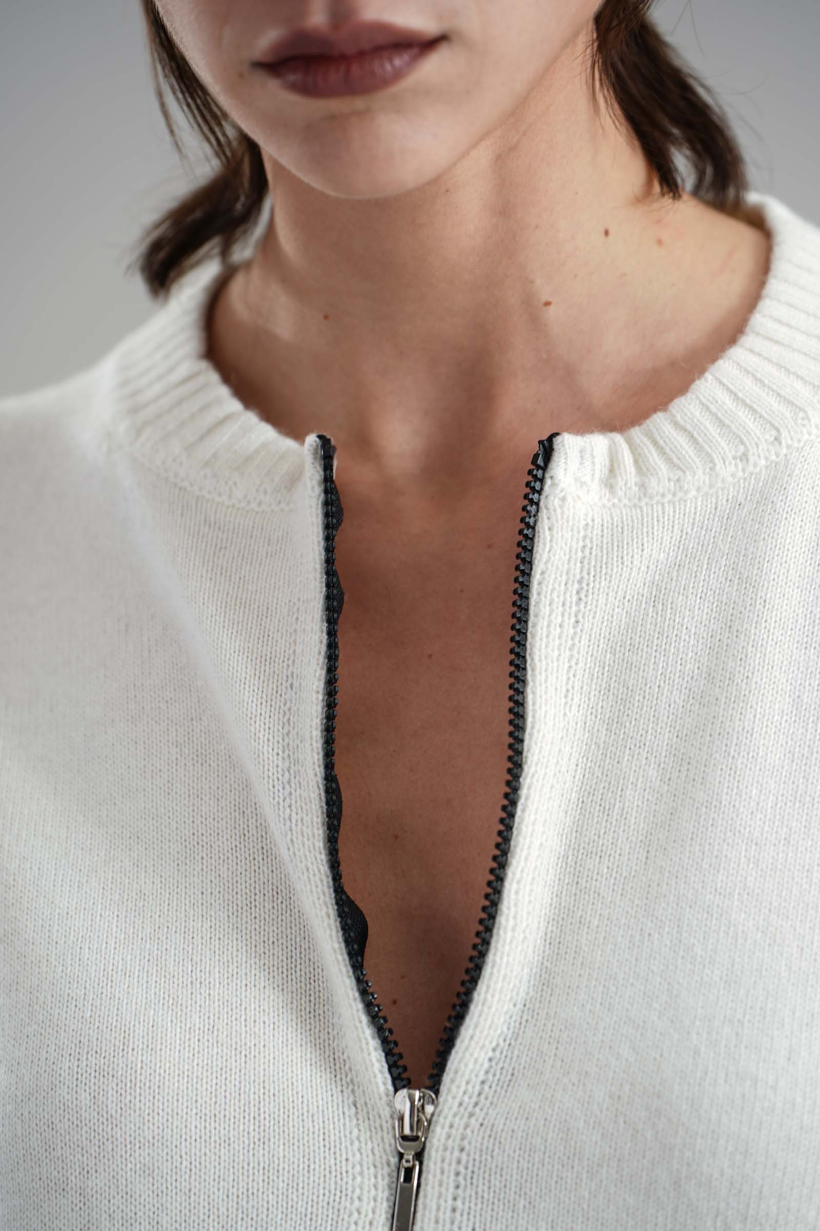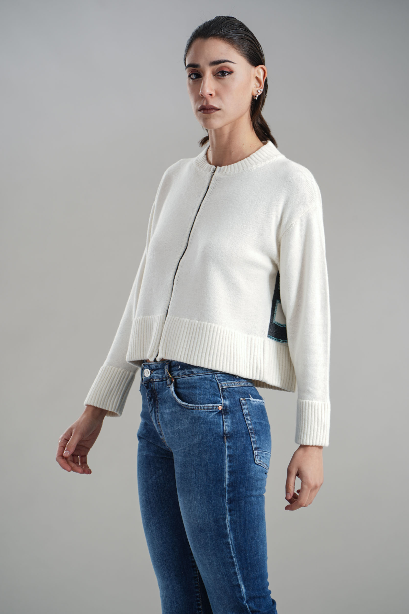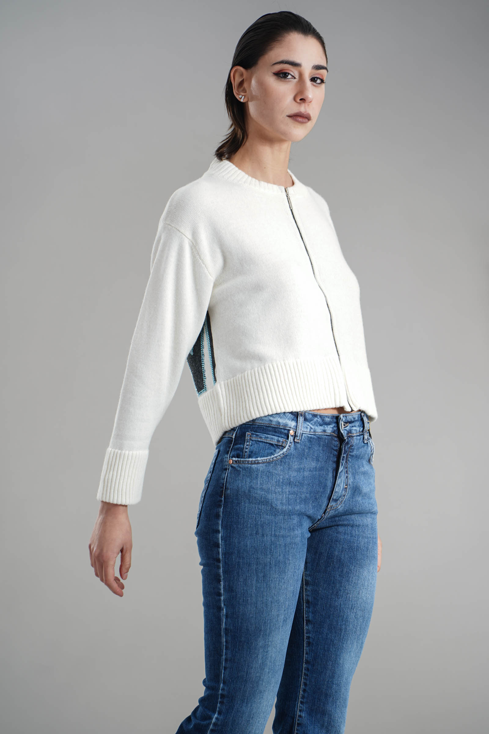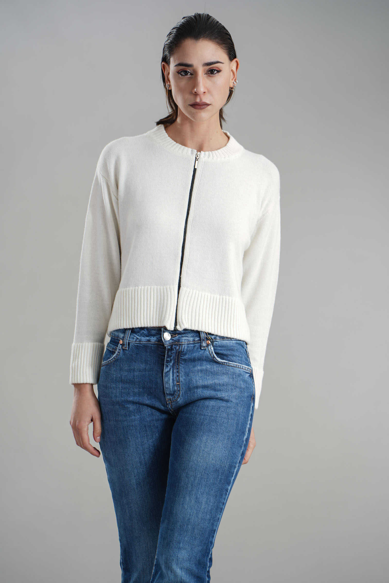 Vestibilita' comoda. Chiusura con zip. Elastico sul fondo e sui polsini. Dettaglio di strass logato posteriore. Altezza modella 1,82. Nella foto indossa la taglia 40. Composizione: 35% Poliammide, 30% Viscosa, 30% Lana, 5% Casmhmere. Brand: Brand Unique