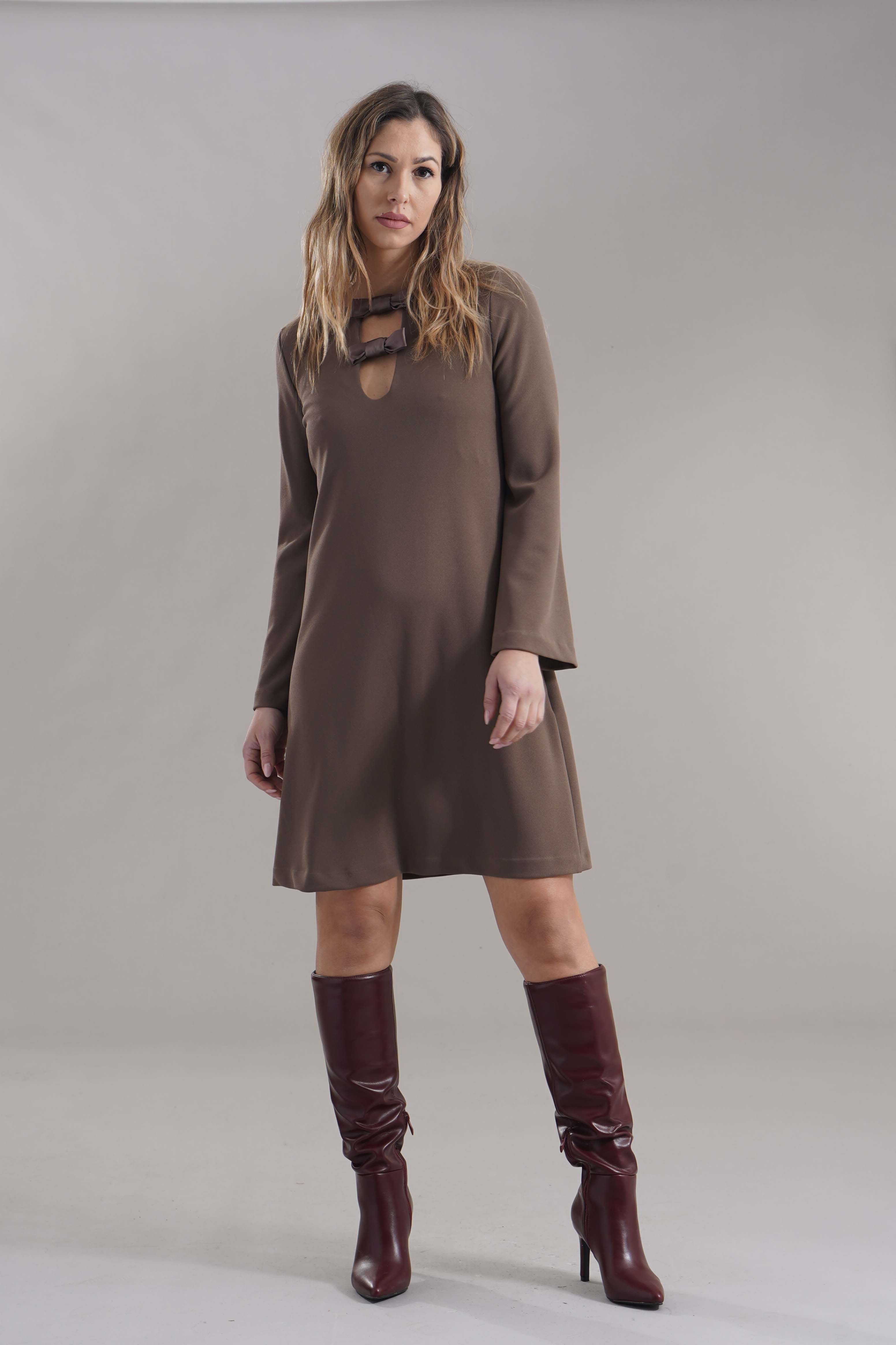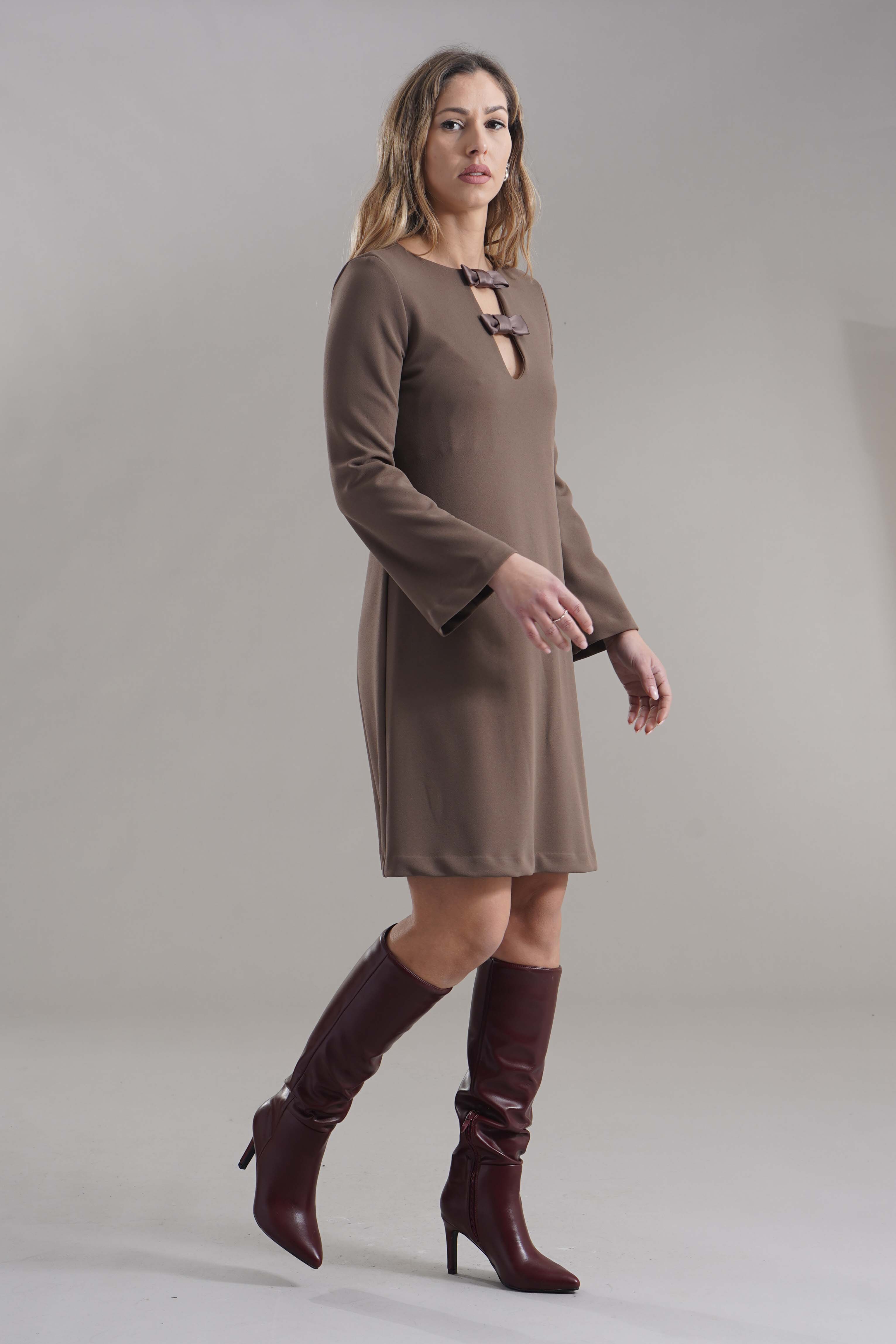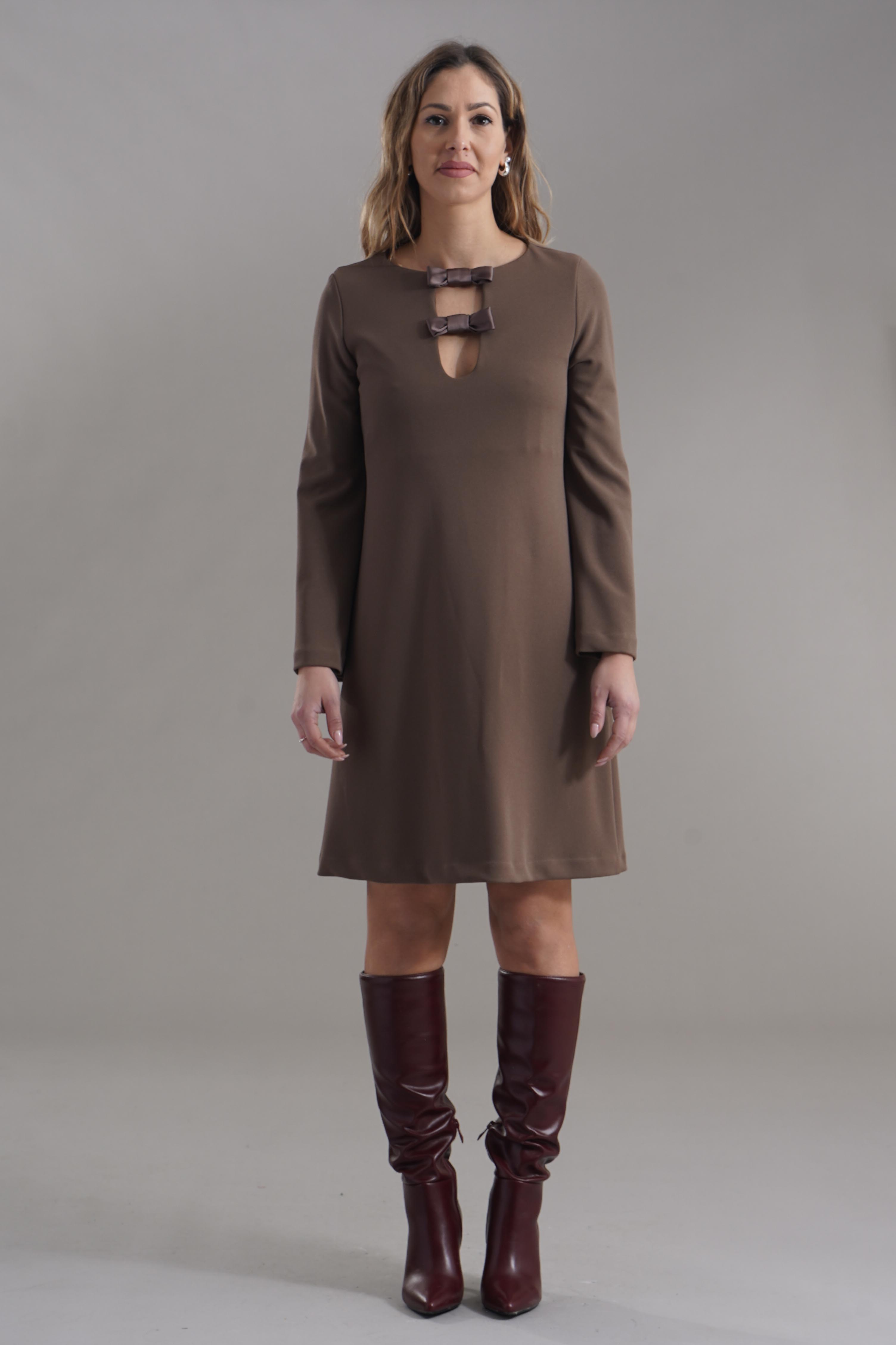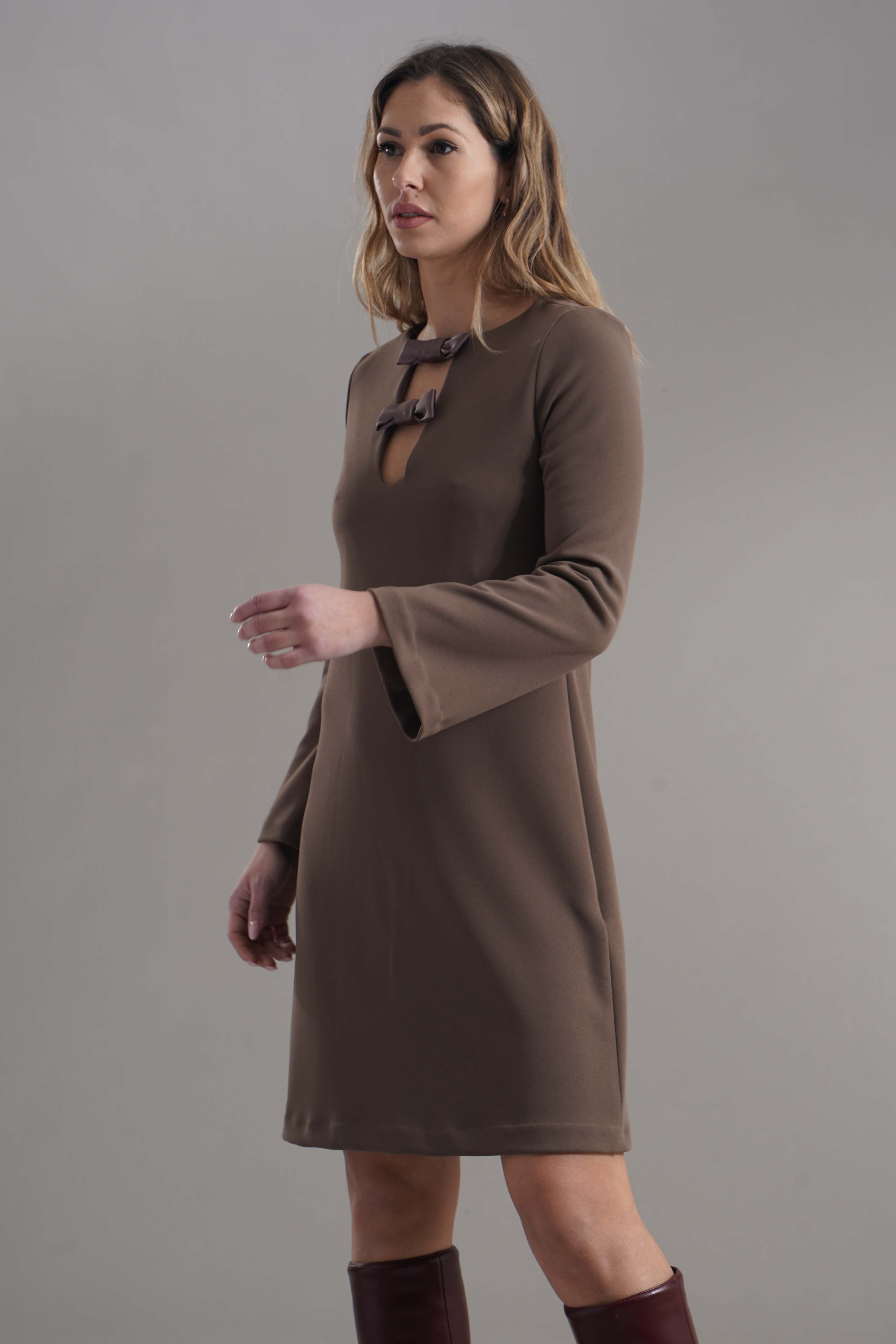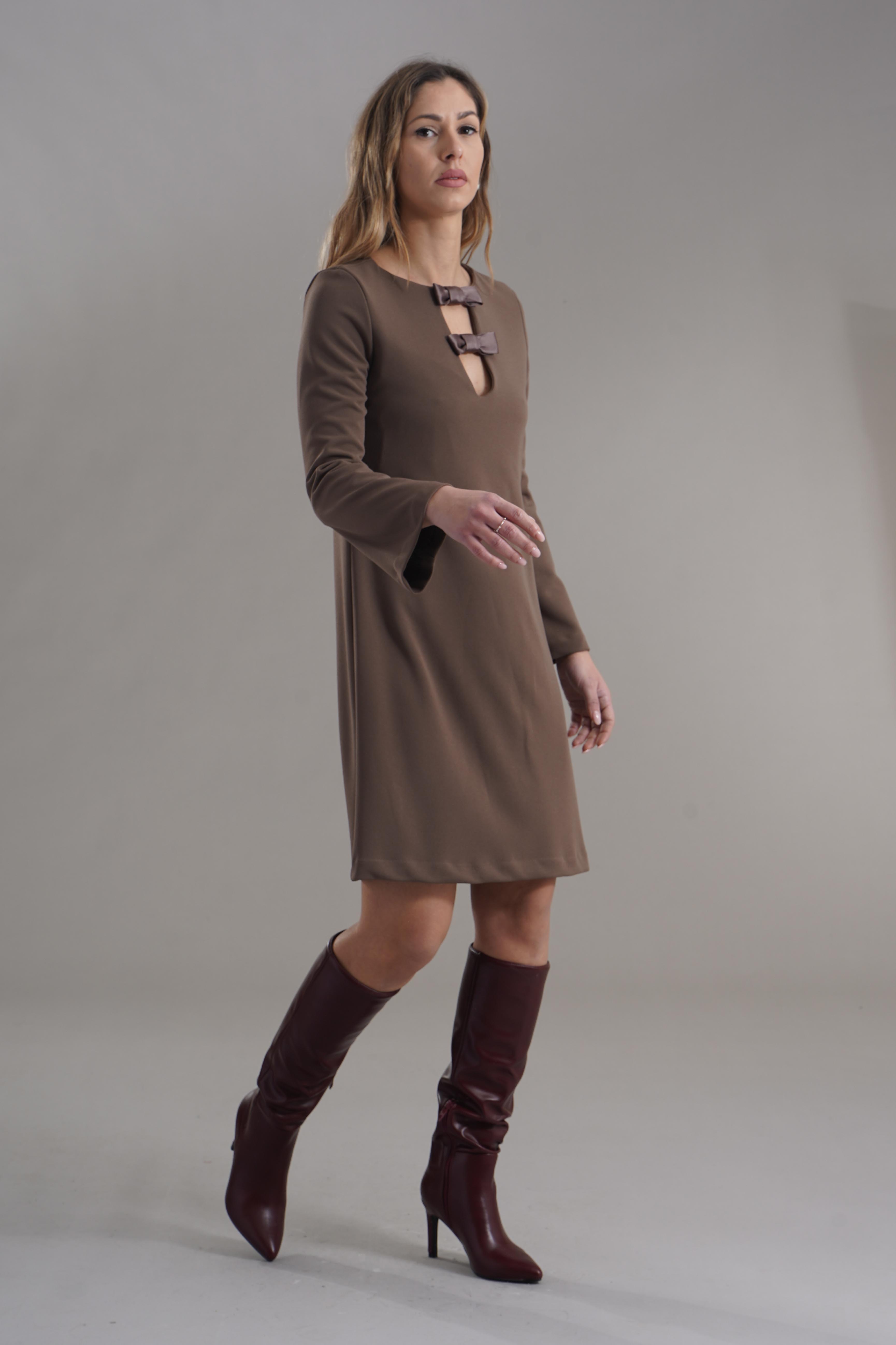 Vestibilita' regolare. Tessuto elastico. Fiocchetti in raso sulla scollatura. Altezza modella 1,78. Nella foto indossa la taglia 40. Composizione: 95% Poliestere, 5% Elastane. Brand: Celye