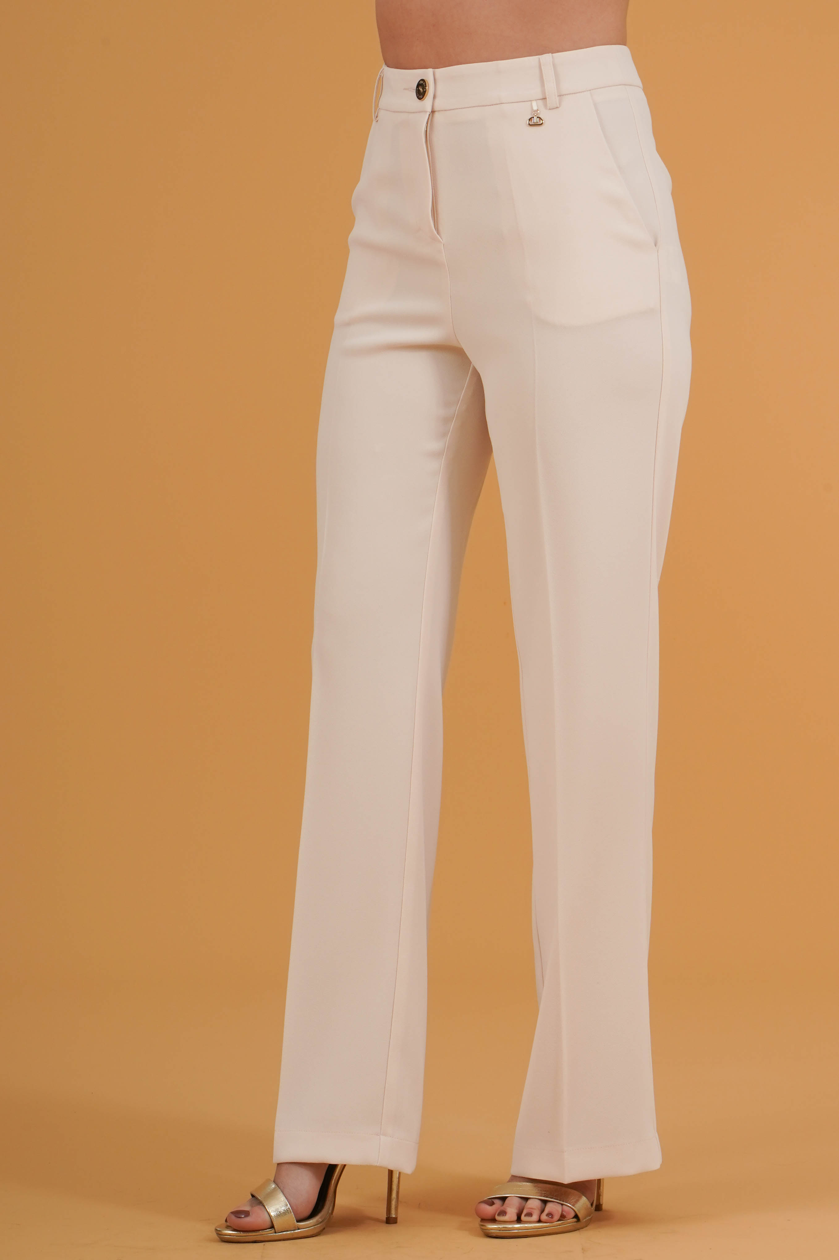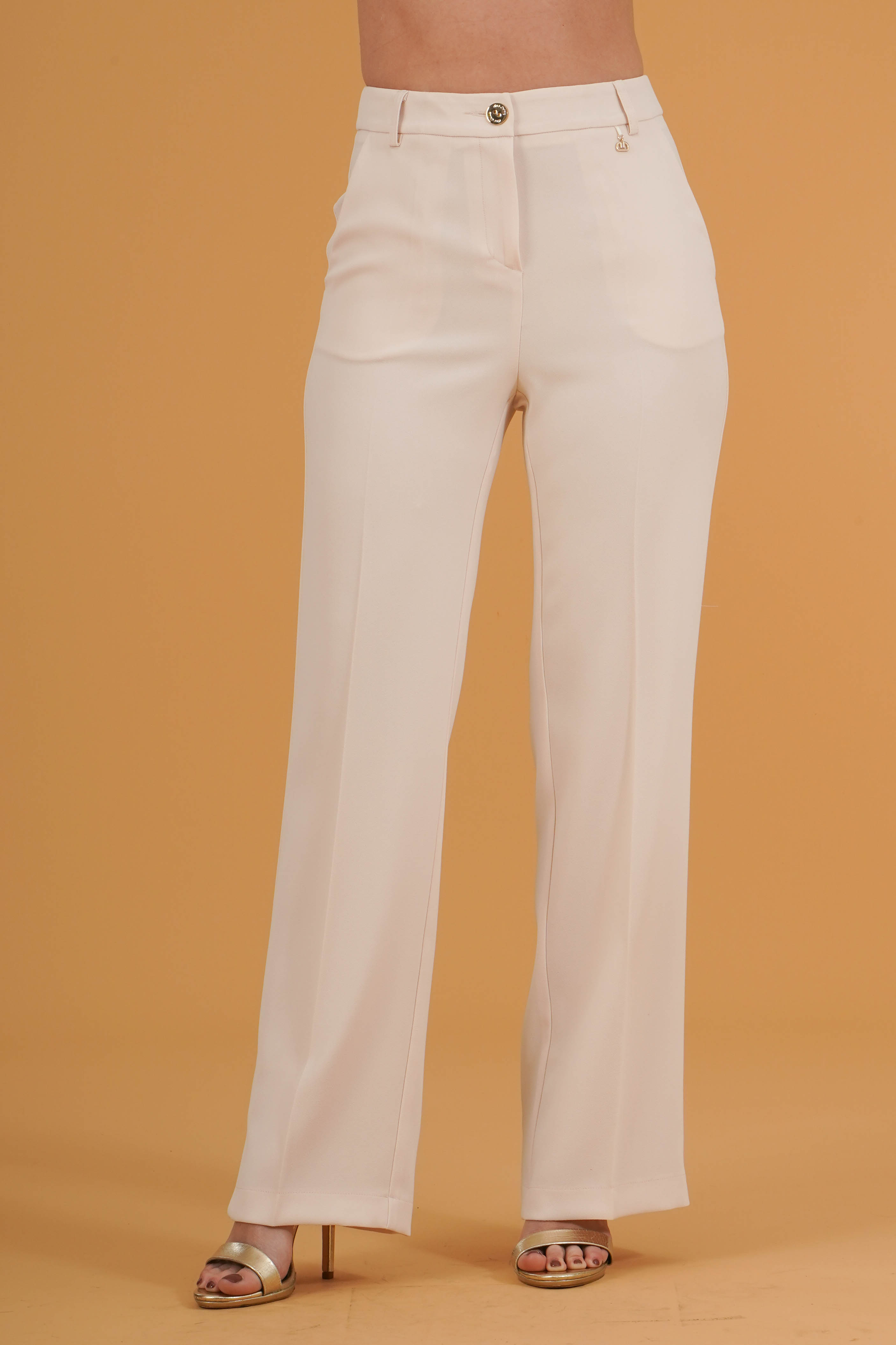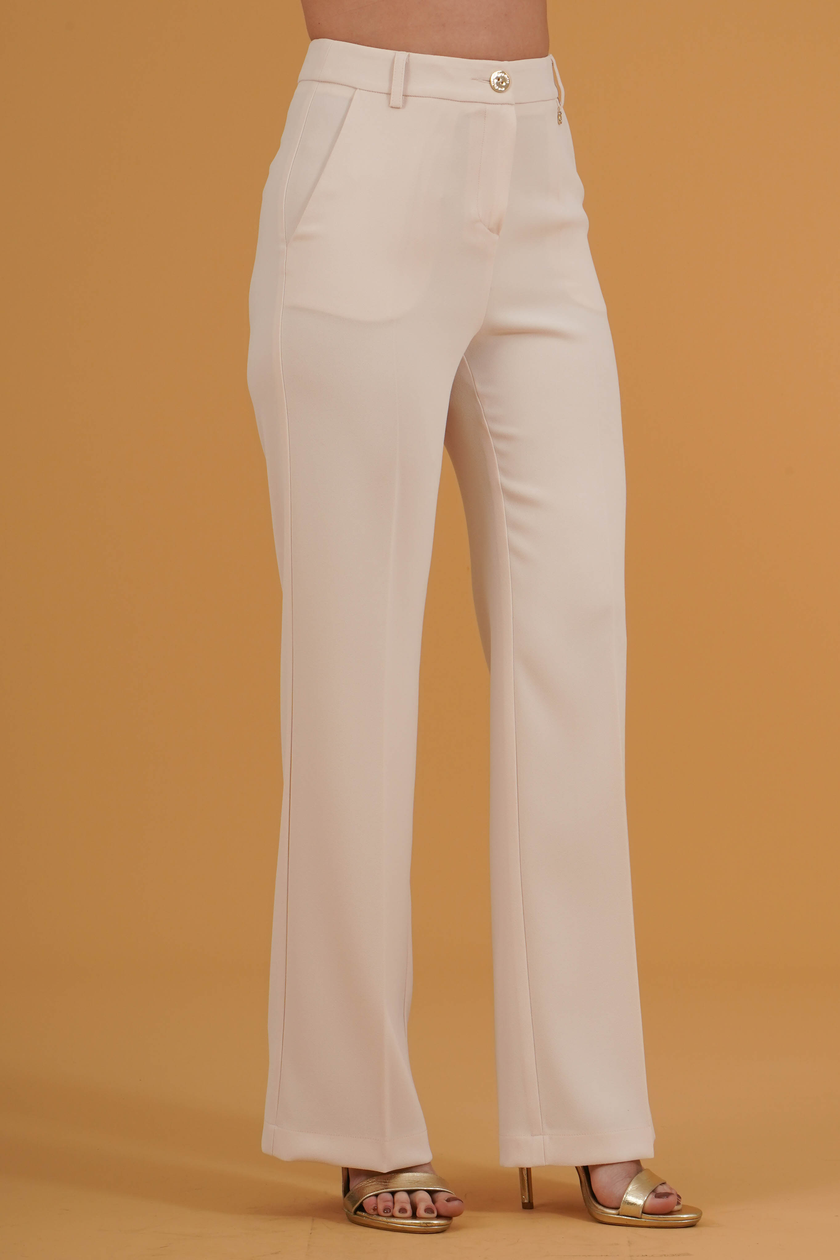 Vestibilita' regolare. Vita alta. Chiusura con bottone logato. Tasche america. Altezza modella 1,78. Nella foto ndossa la taglia 40. Composizione: 98% Poliestere, 2% Elastane. Brand: Divedivine