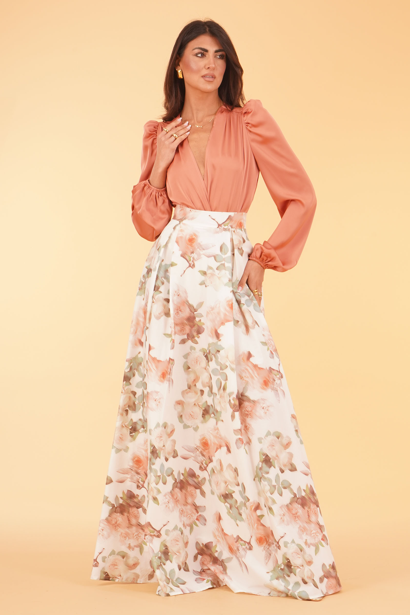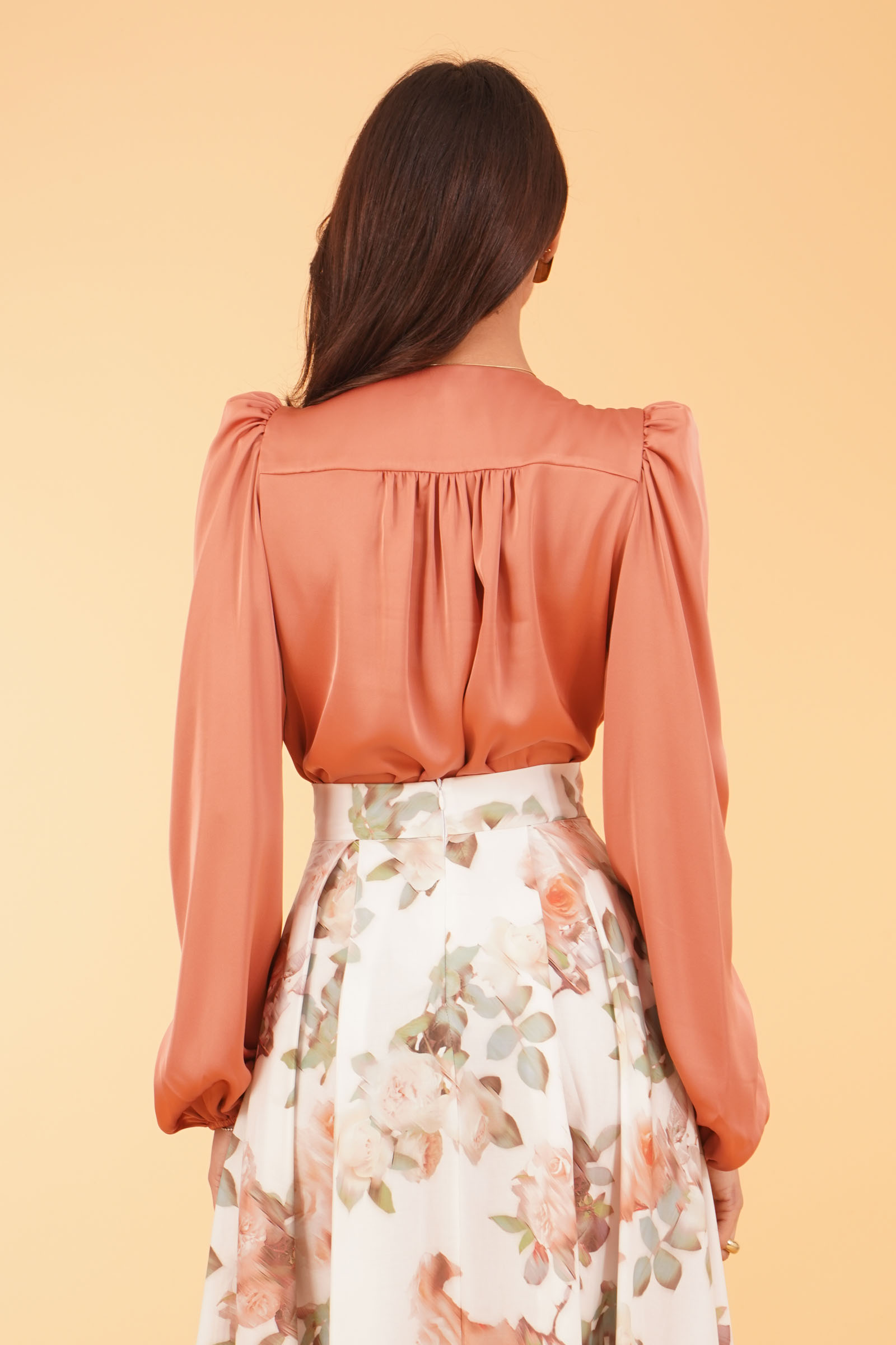 Vestibilita' regolare. Maniche a sbuffo con elastico sui polsini. Drappeggio sulle spalle. Scollo a punta. Altezza modella 1,80. Indossa la taglia 40. Composizione: 100% Poliestere. Brand: Dramee