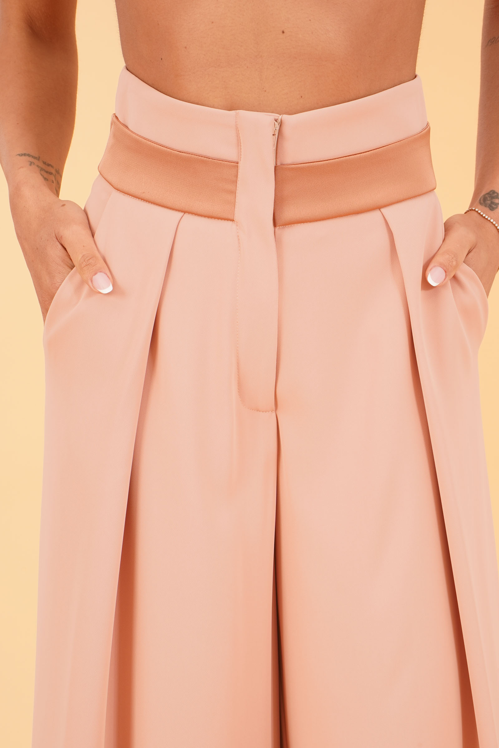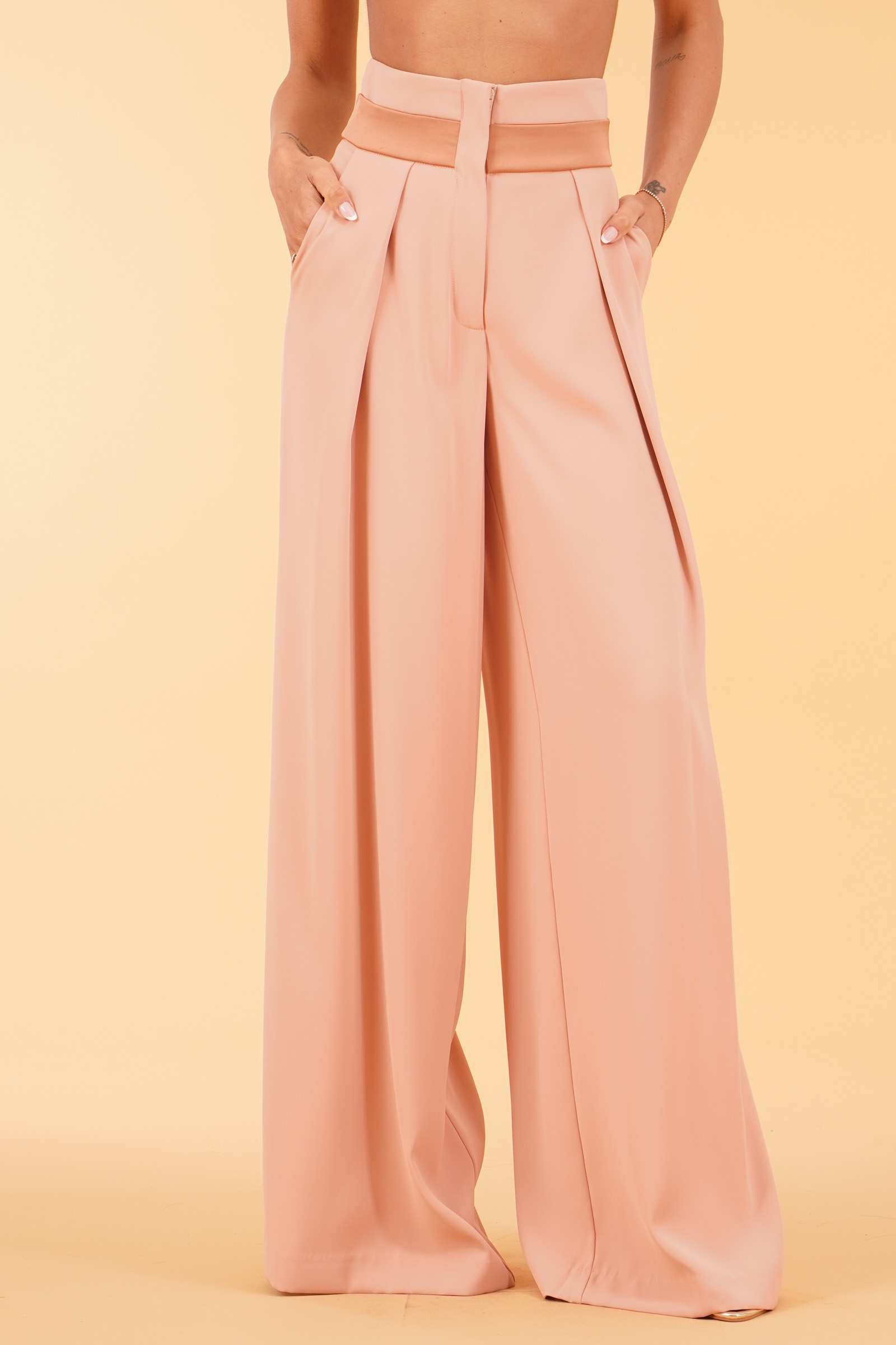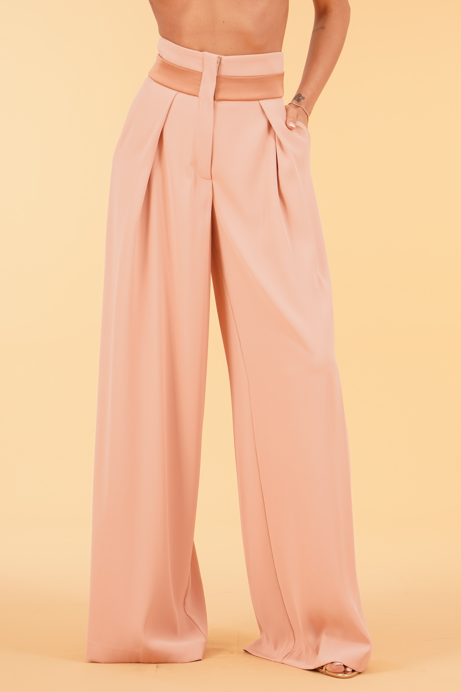Vestibilita' regolare. Vita alta con faschia in raso. Tasche a filo. Chiusura con zip. Altezza modella 1,80. Nella foto indossa la taglia 40. Composizione: 100% Poliestere. Brand: Dramee