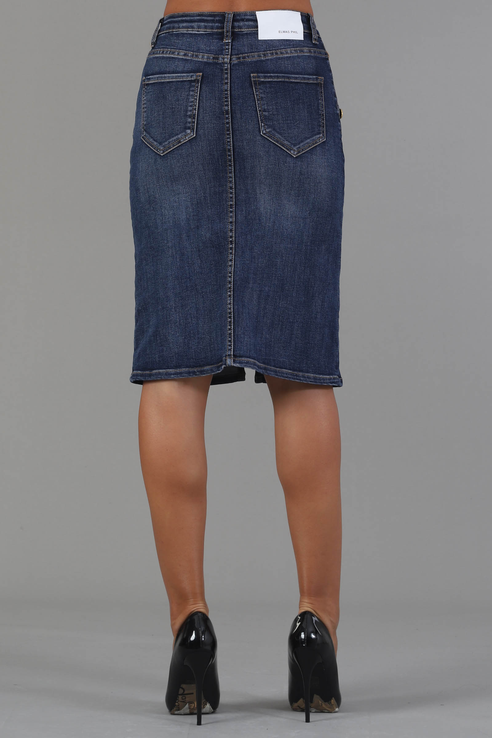 Vestibilita' regolare. Vita alta. Tasche con dettaglio di bottoni logati. Spacco anteriore. Altezza modella 1,79. Nella foto indossa la taglia 40. Composizione: 95% Cotone, 5% Elastane. Brand: Elamas Phil