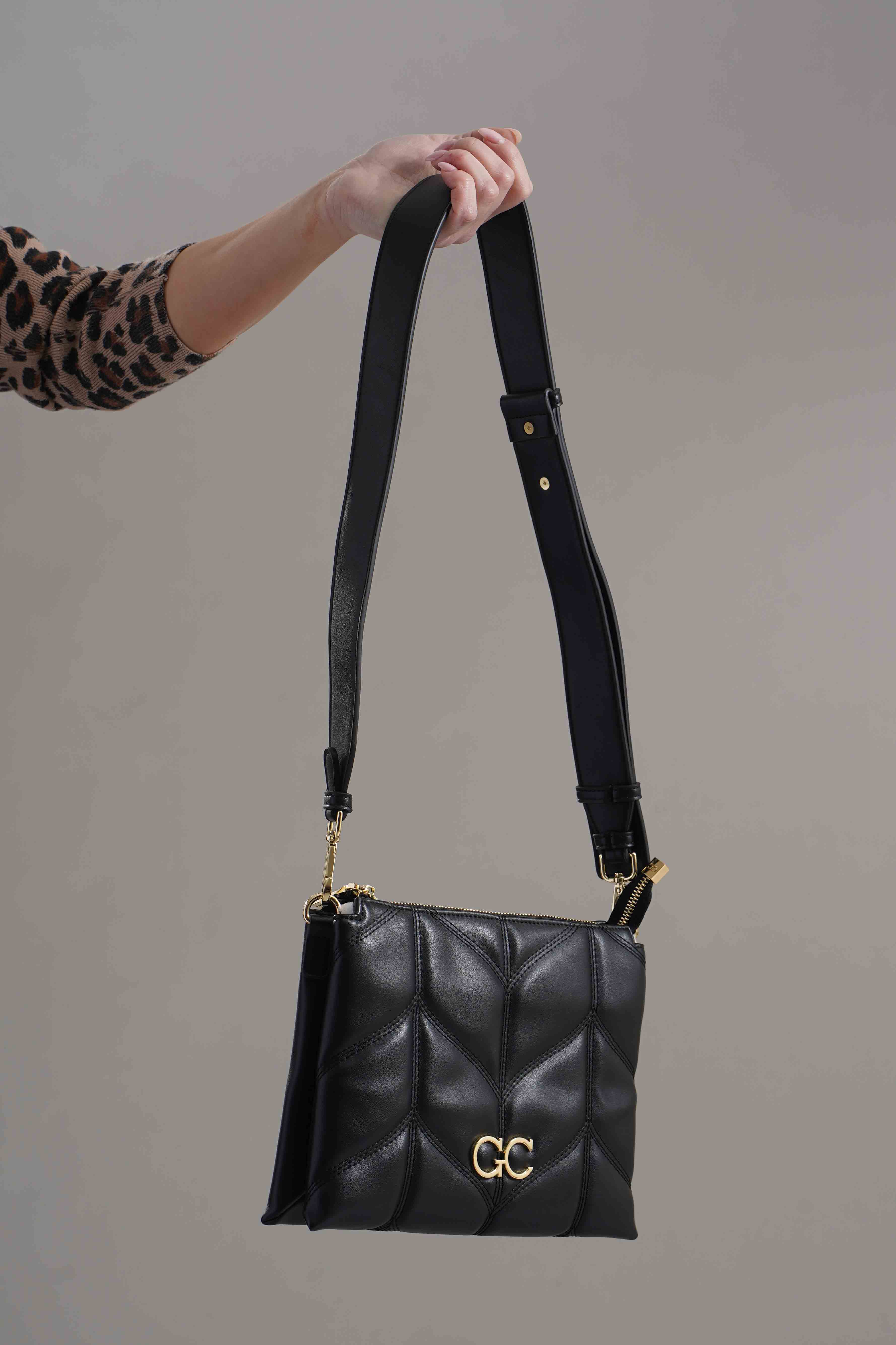 Chiusura con zip piu' scompartimenti interni. Tracolla removibile regolabile. Misure: A cm 20, P cm 13, L cm 26. Brand: Gio Cellini