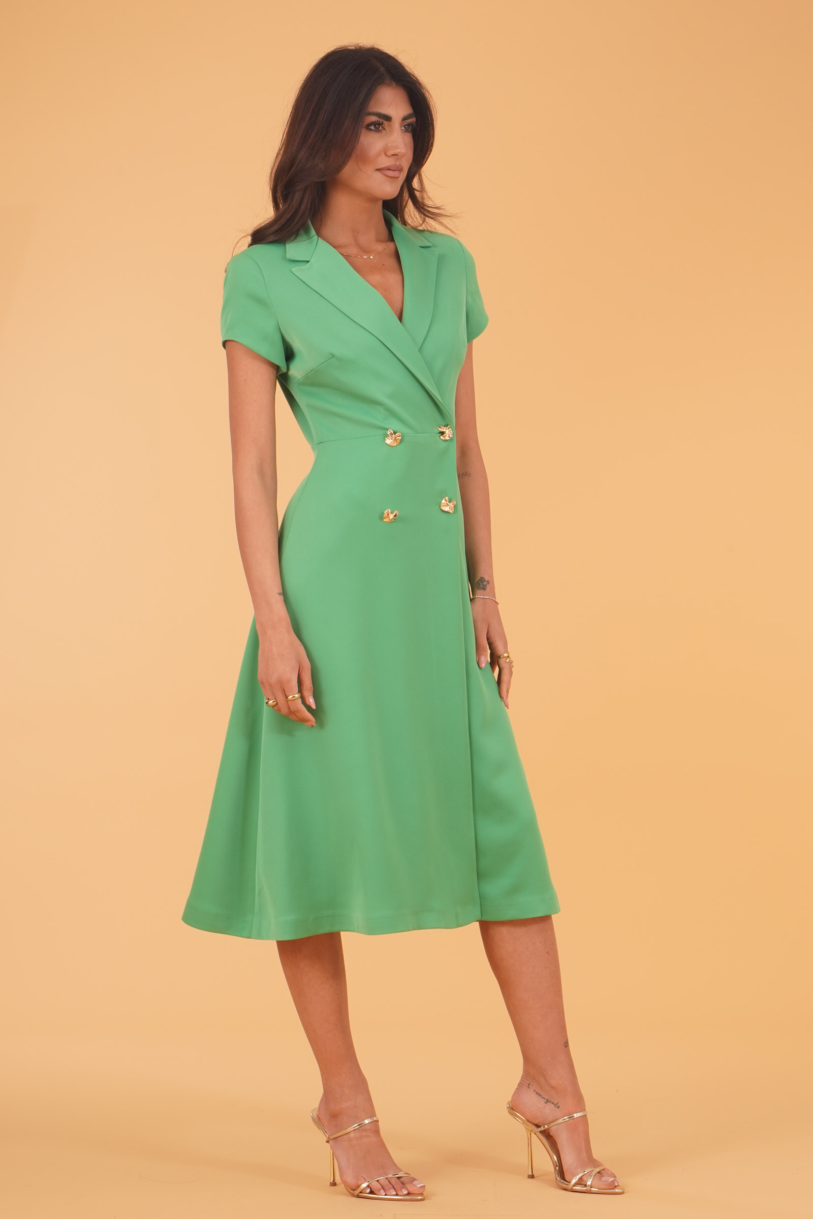 Vestibilita' regolare. Mezza manica. Chiusura doppio petto con bottoni in metallo color oro. Altezza modella 1,80. Indossa taglia 40. Compoizione: 60% Poliestere, 40% Viscosa. Brand: Gm by Gai Mattiolo