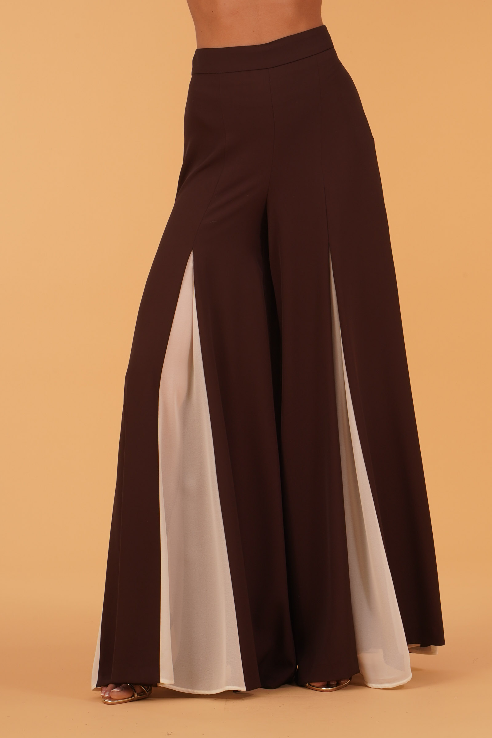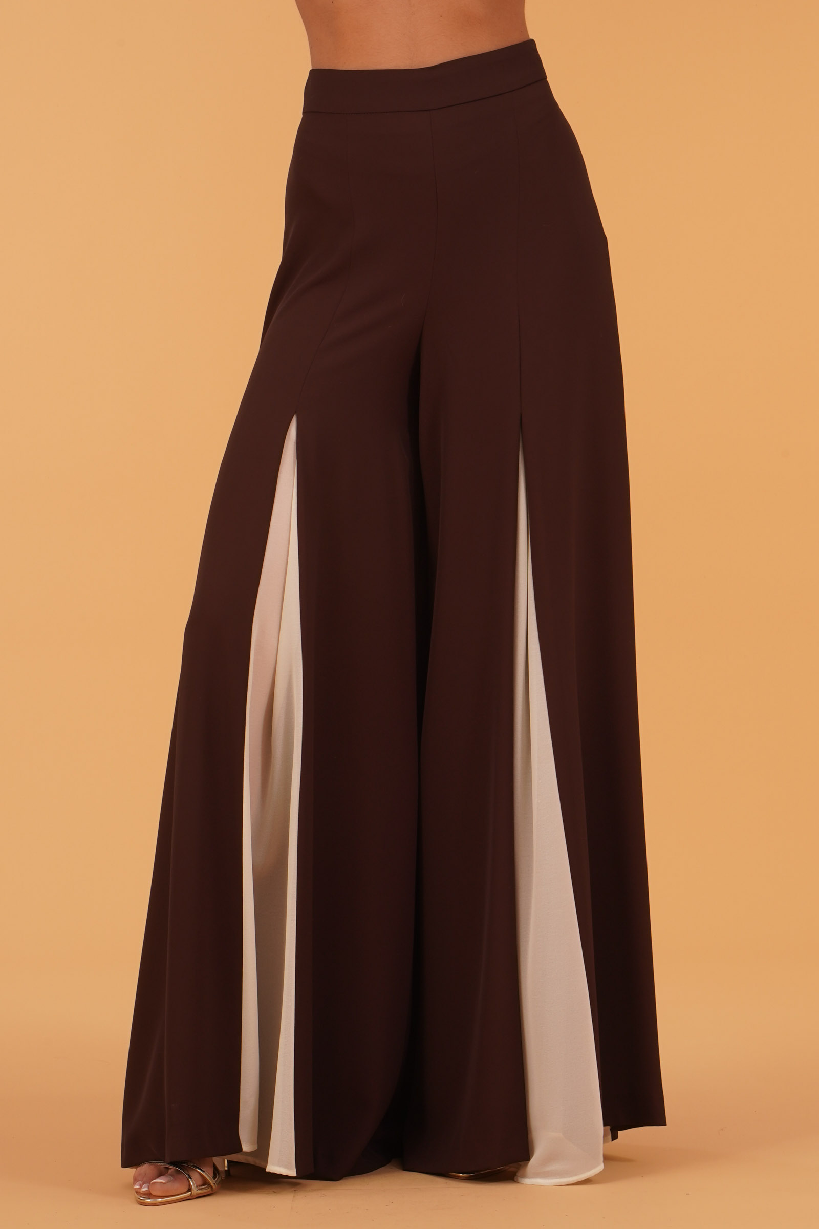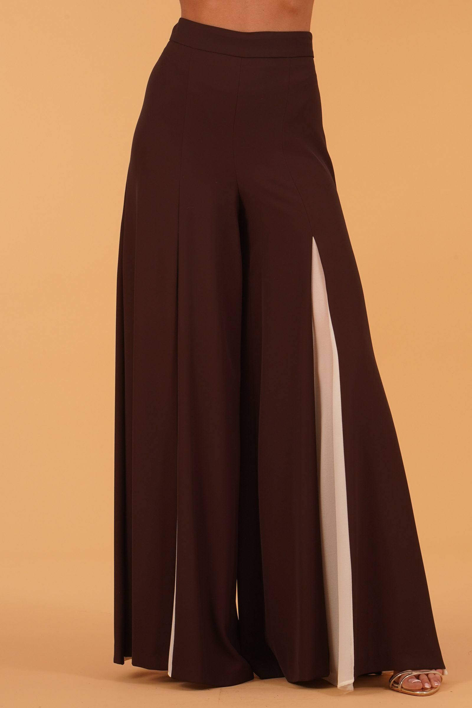 Vestibilita' regolare. Vita alta. Chiusura con zip invisibile. Aperture con dettagli in georgette. Altezza modella 1,80. Indossa taglia 40. Composizione: 55% Poliestere, 40% Viscosa, 5% Elastane. Brand: Gm by Gai Mattiolo