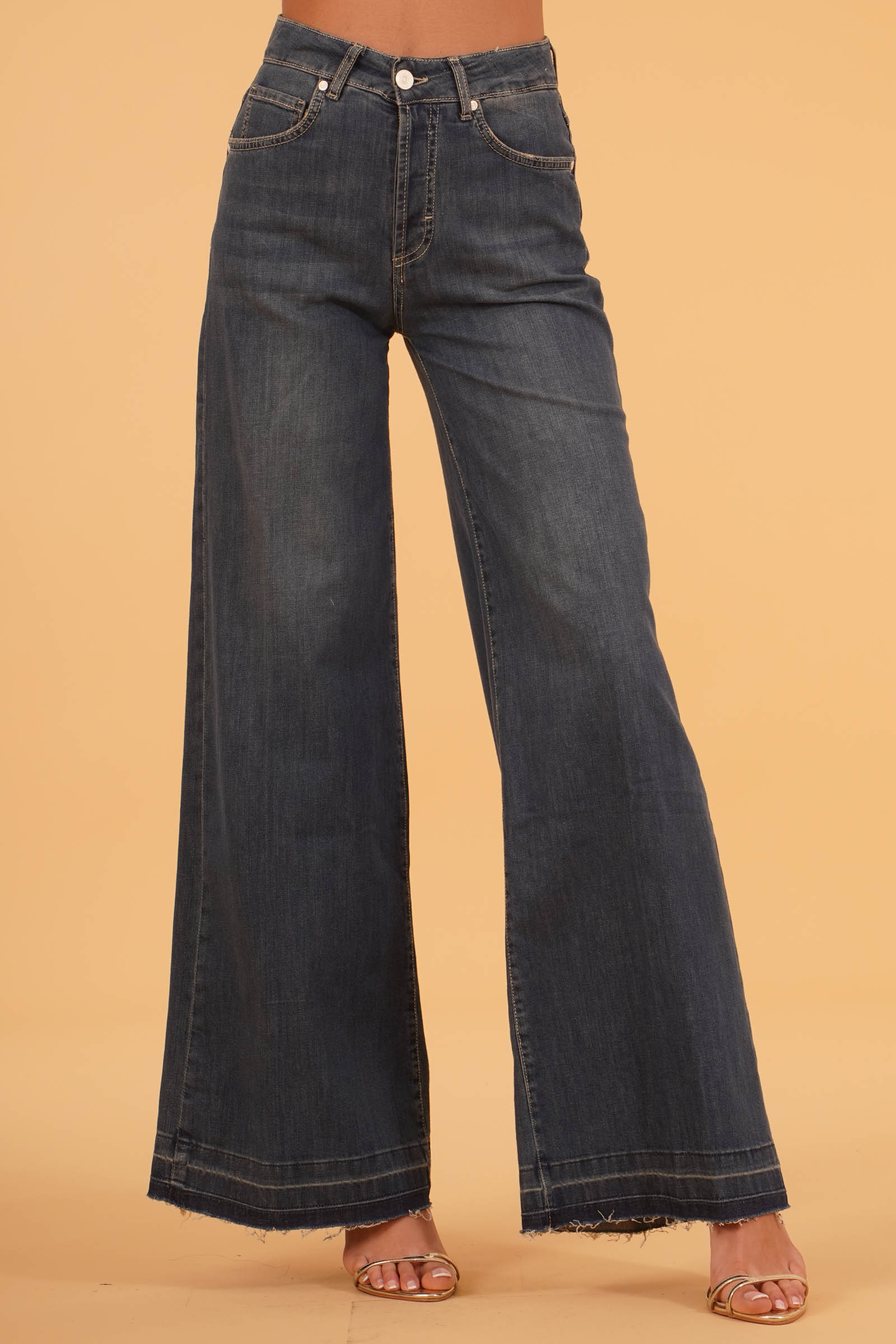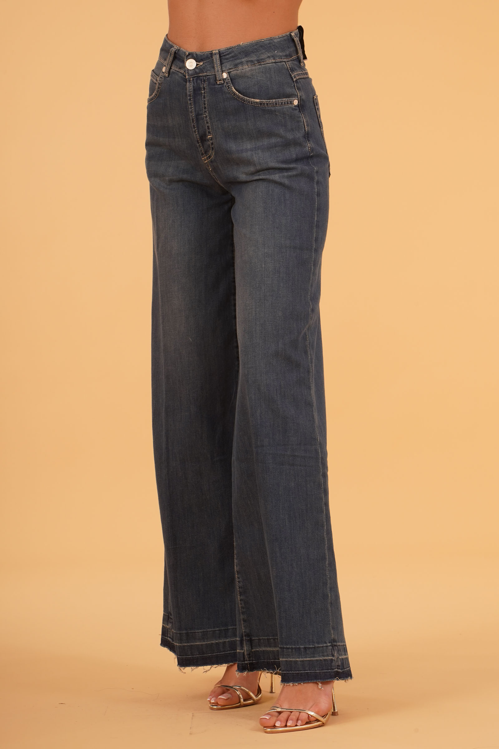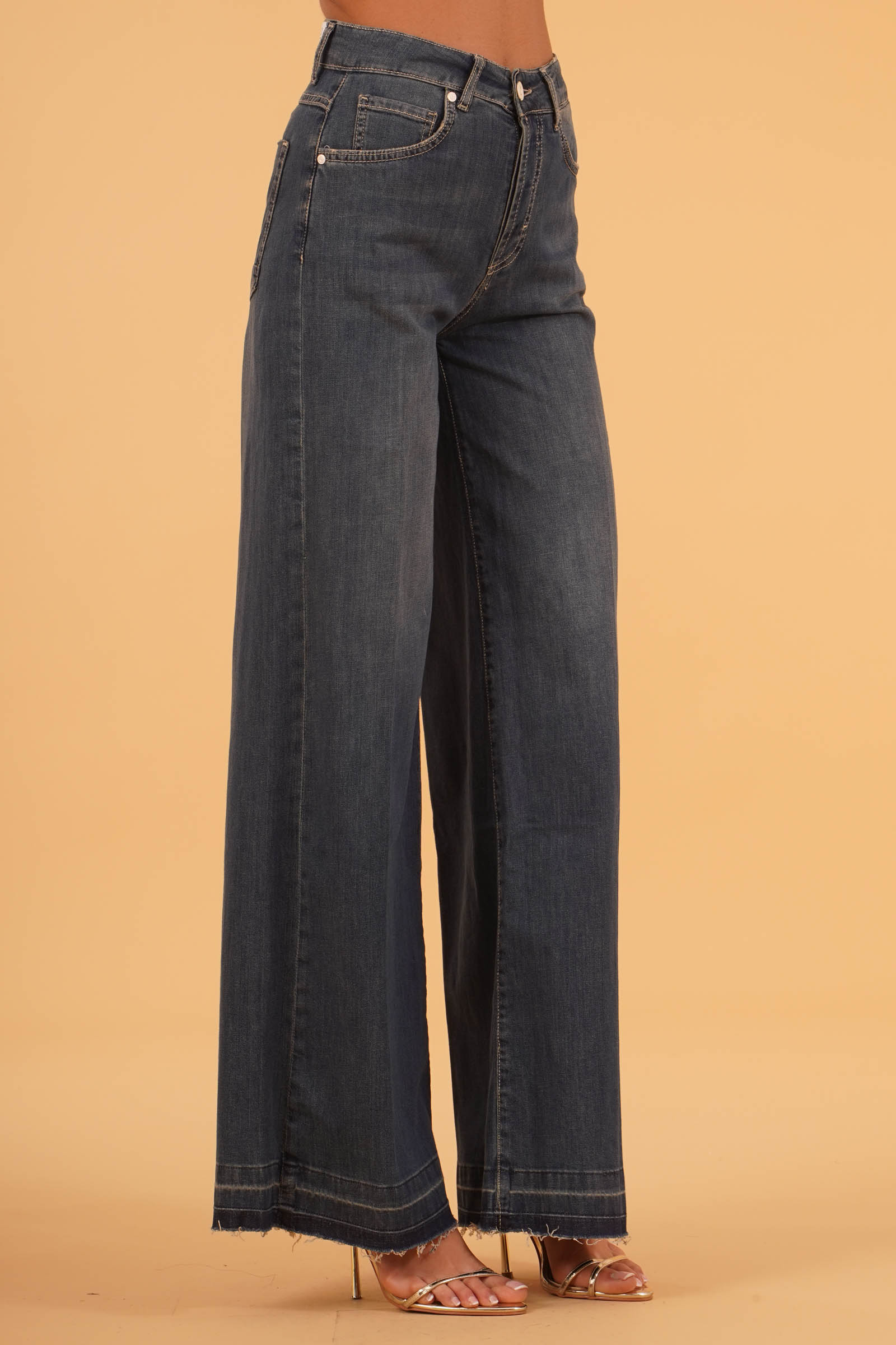 Vestibilita' regolare. Vita alata. 5 Tasche. Denim lavato. Altezza modella 1,80. Indossa taglia 26. Composizione: 98 Cotone, 2% Elastane. Brand: Gold Digger Denim