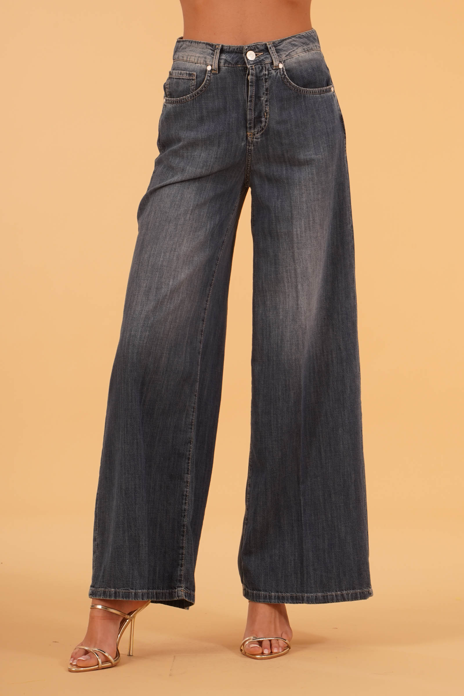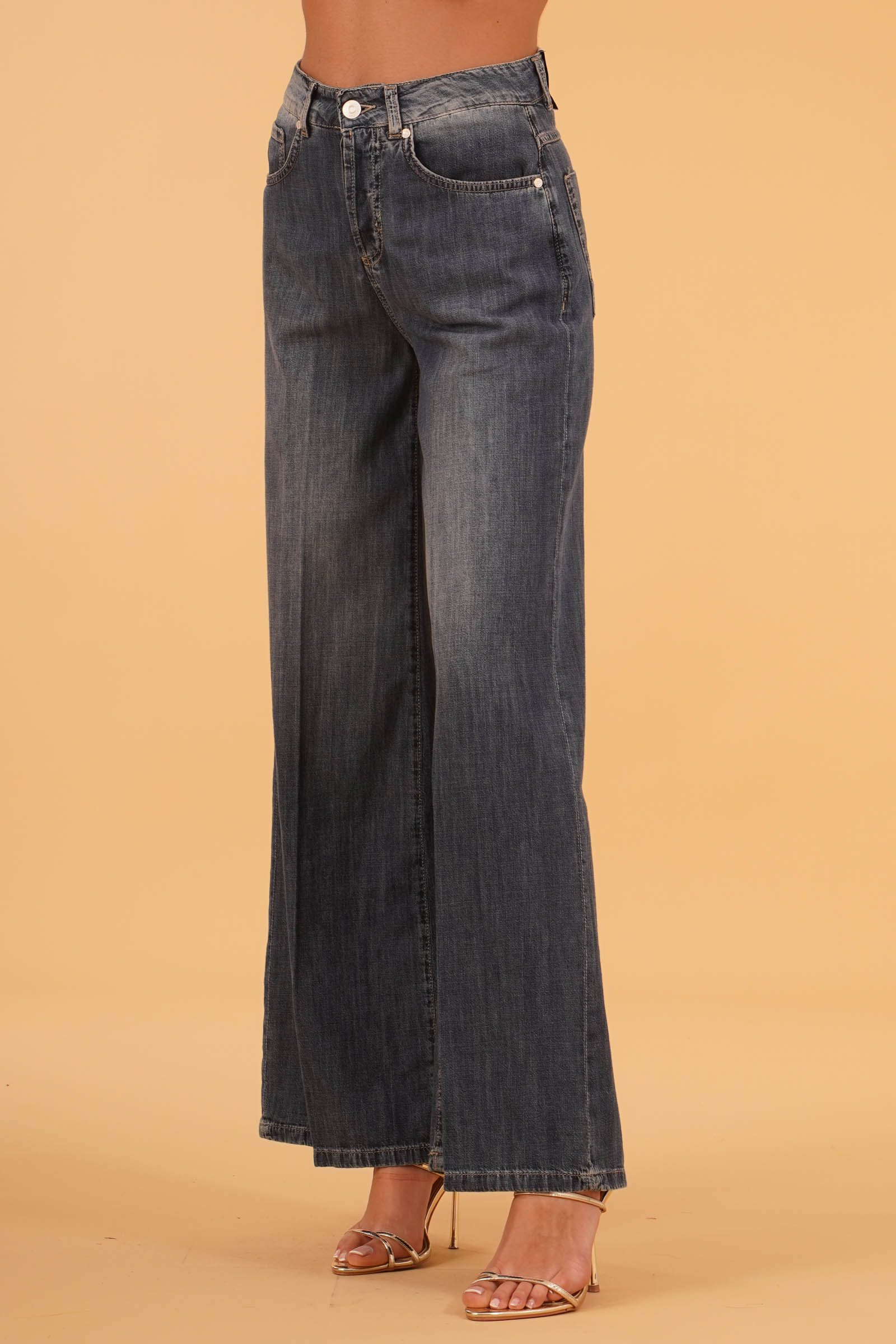 Vestibilita' regolare. Vita alta. 5 tasche. Denim lavato. Altezza modella 1,80. Indossa taglia 40. Composizione: 100% Cotone. Brand: Gold Digger Denim