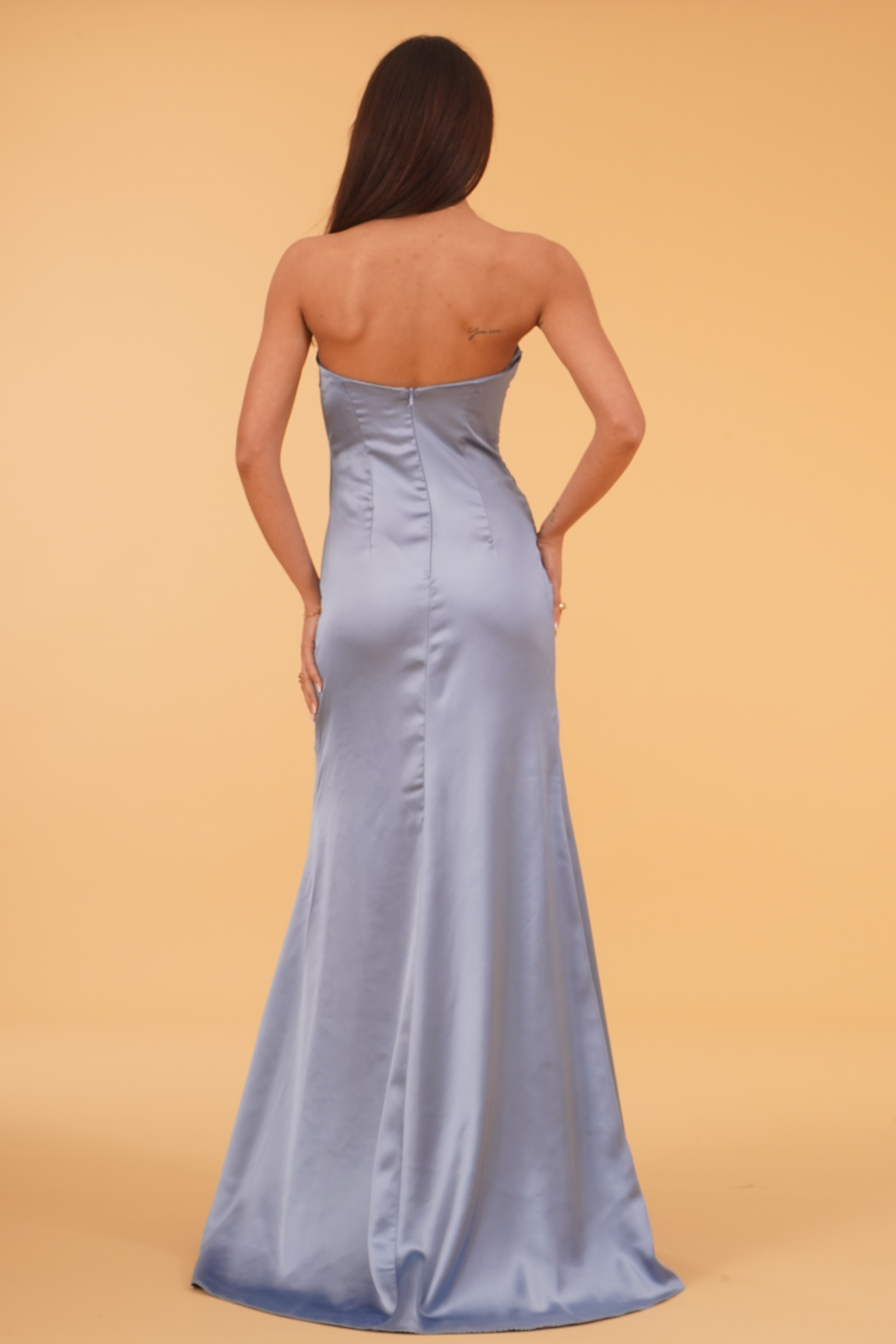 Vestibilita' regolare. Gonna vita alta con ampio spacco piu' drappeggio in vita. Corpetto steccato con taglio asimmetrico piu' coppette inserite. Chiusura con zip invisibile posteriore. Stola inclusa. Altezza modella 1,80. Indossa la taglia 40. Composizione: 100% Poliestere. Brand: Kuea