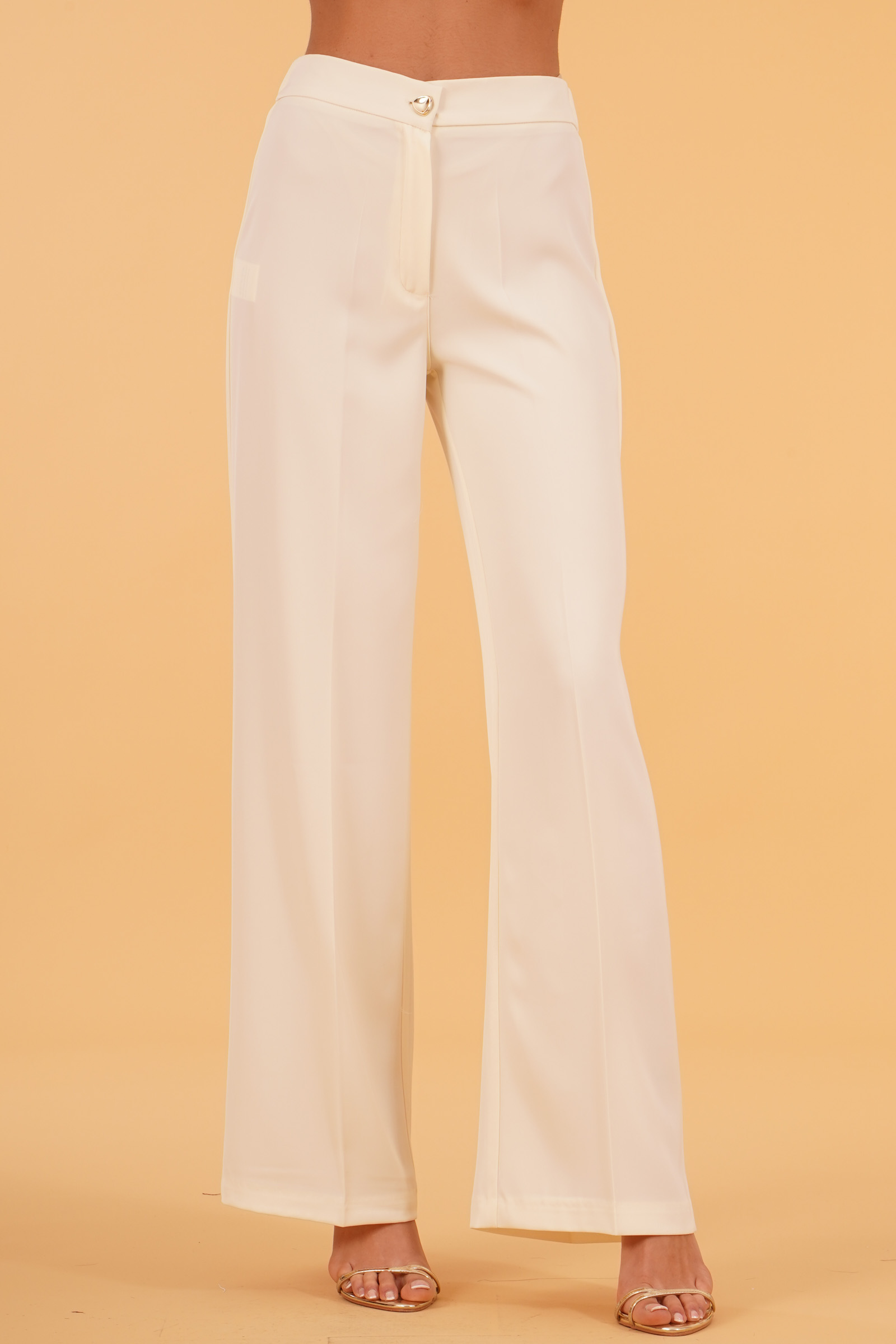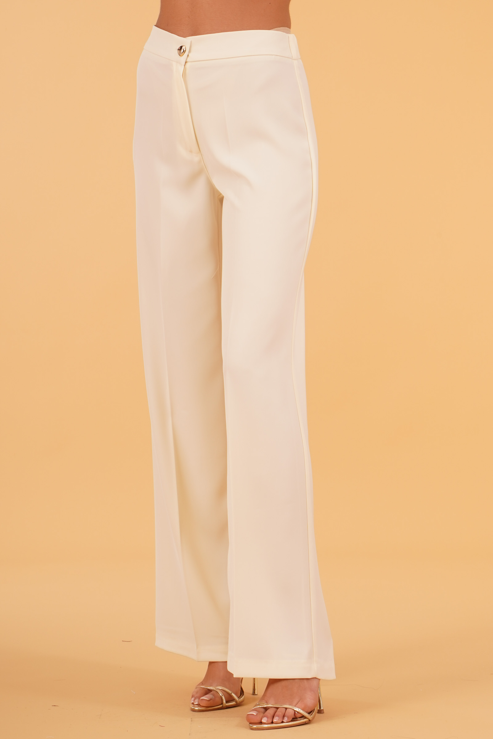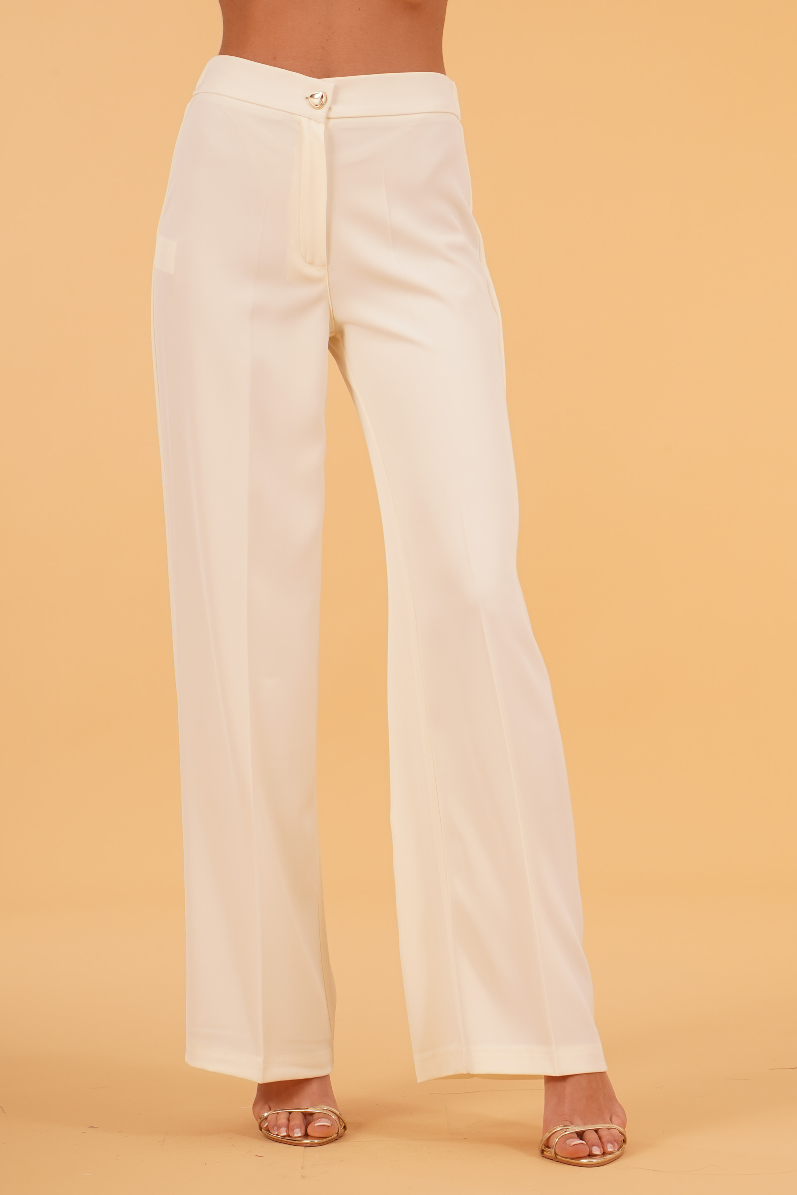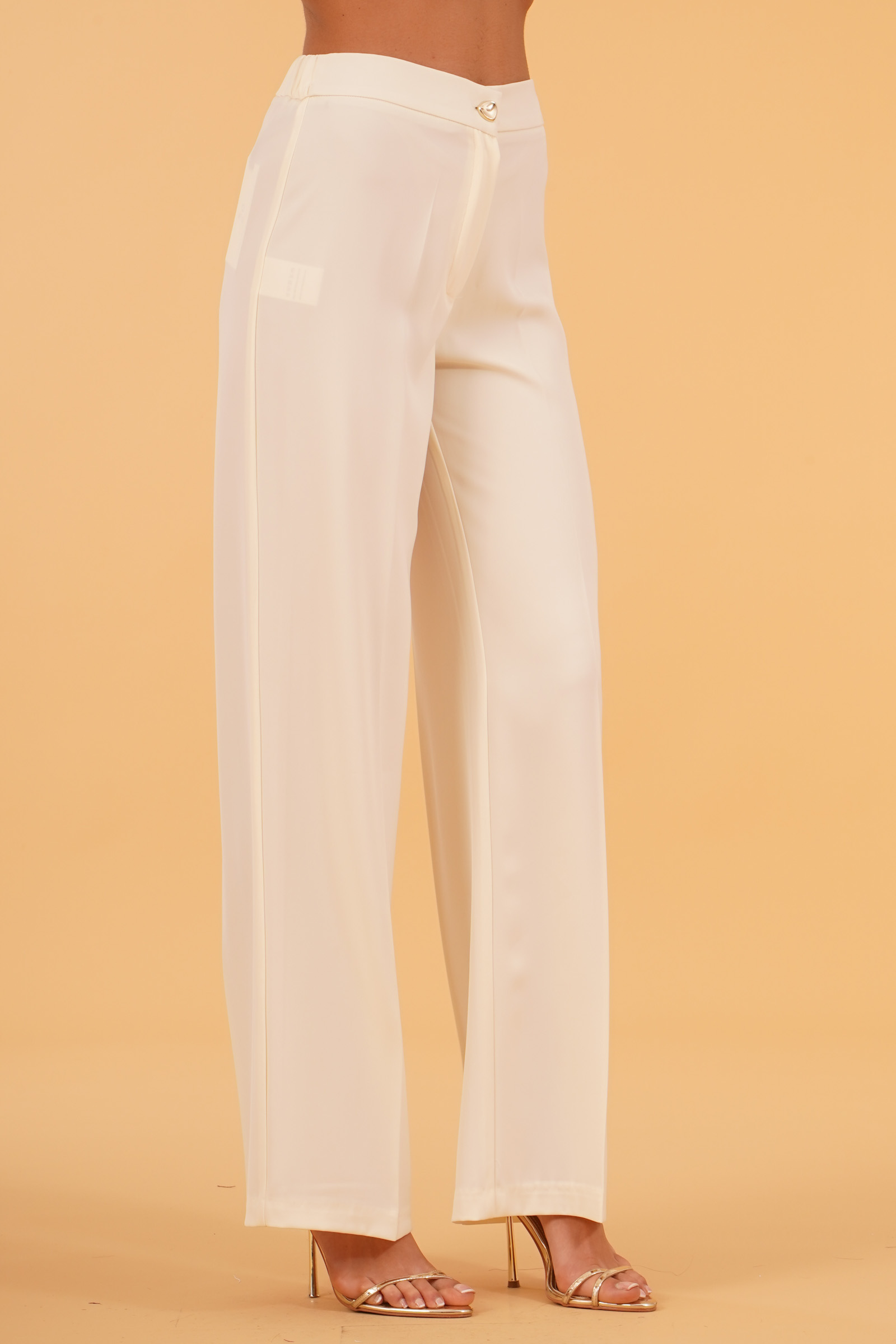Vestibilita' regolare. Vita alta. Bustino con elastico posteriore. Chiusura con bottone in metallo color oro piu' zip. Altezza modella 1,80. Indossa la taglia 40. Composizione: 96% Poliestere, 4% Elastane. Brand: Lafty.Lie