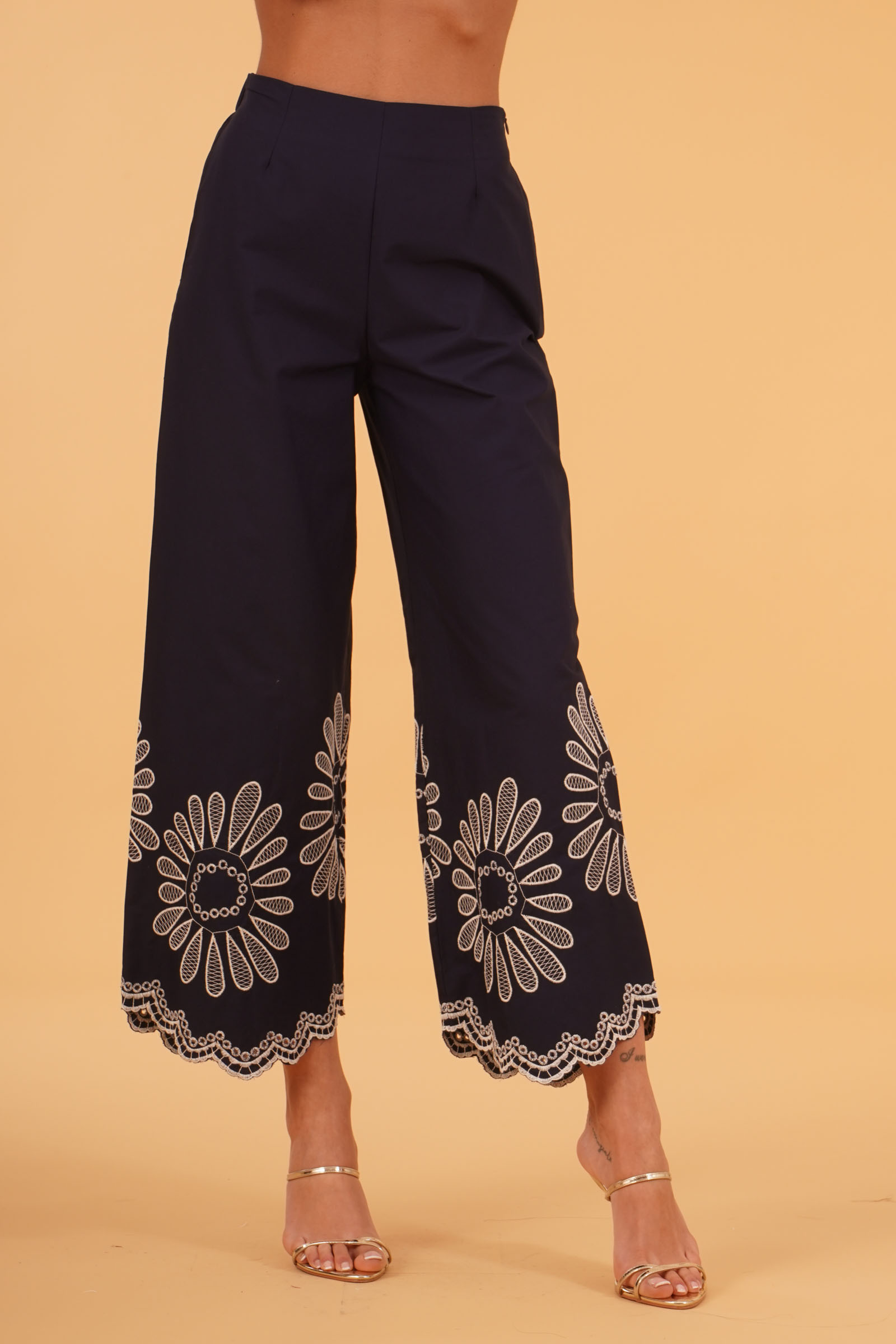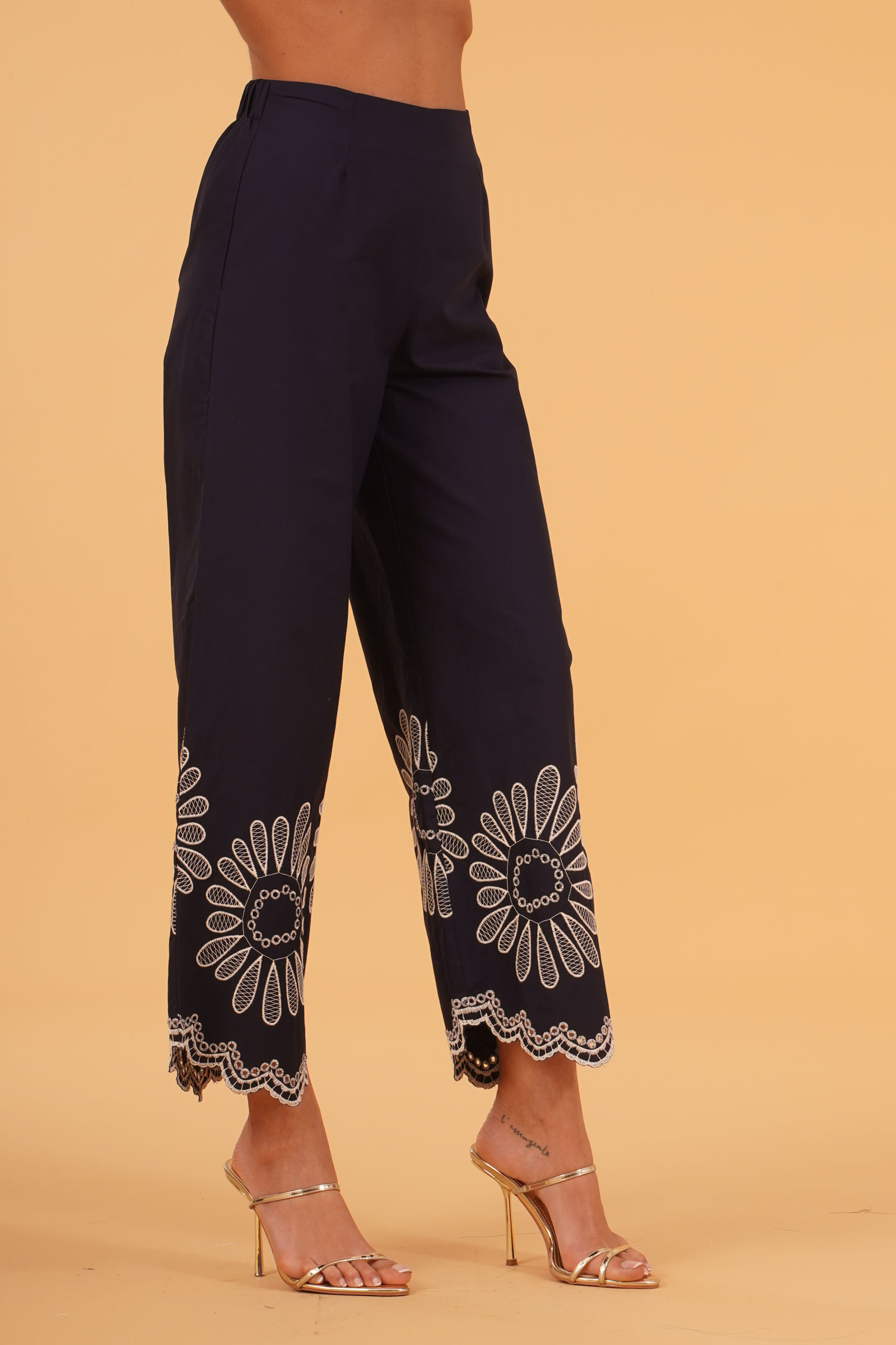 Pantalone in cotone con ricami
