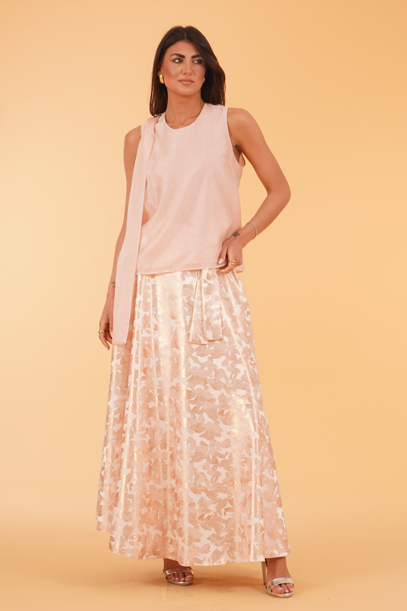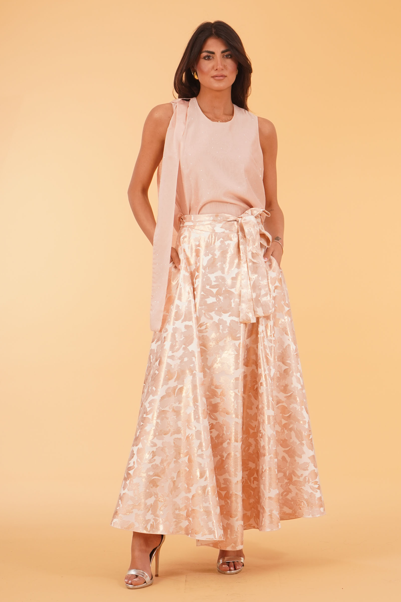 Vestibilita' regolare. Chiusura con bottone posteriore. Fusciacca al collo removibile. Dettaglio di microstras. Altezza modella 1,80. Indossa la taglia 40. Composizione: 84% Lyocel, 16% Poliestere. Brand: Lanacaprina