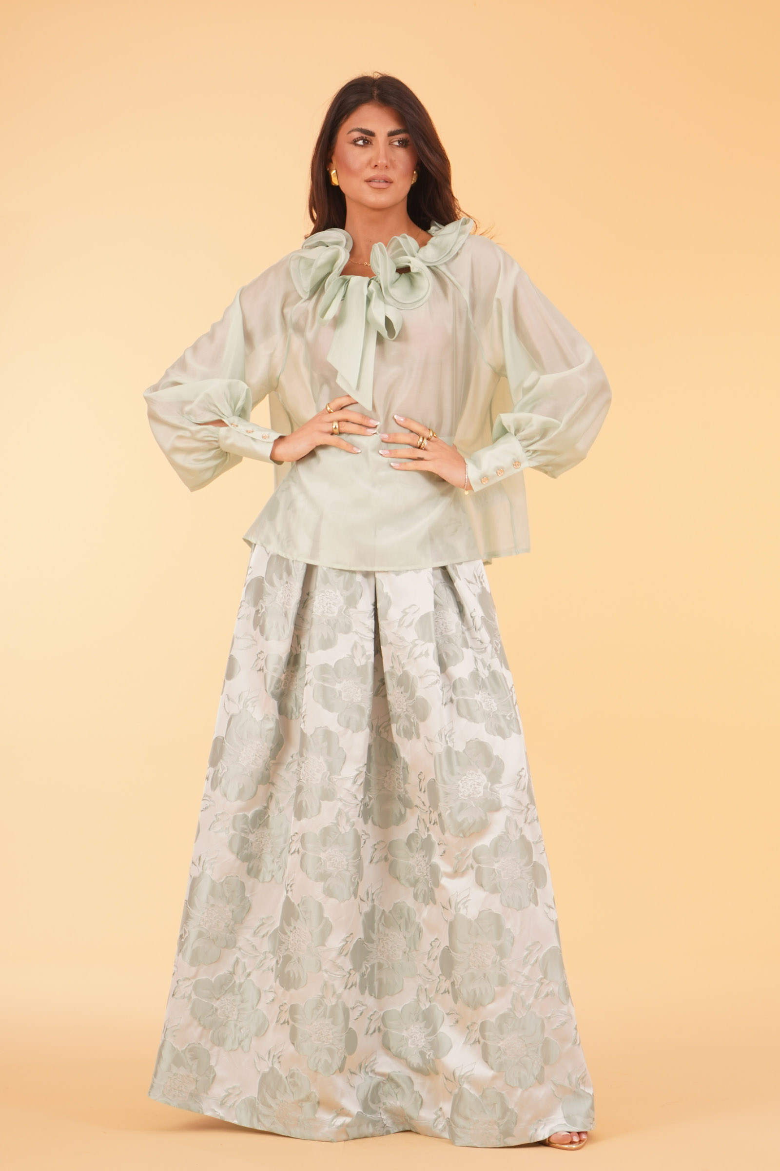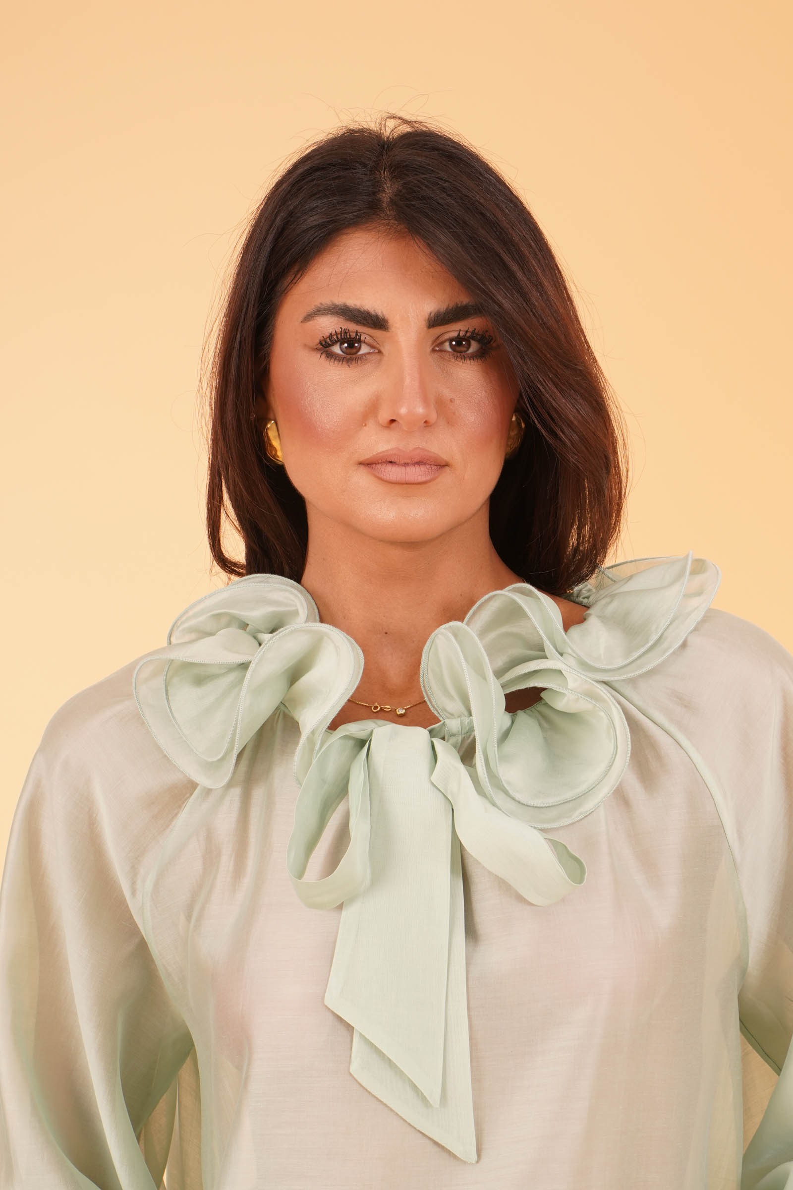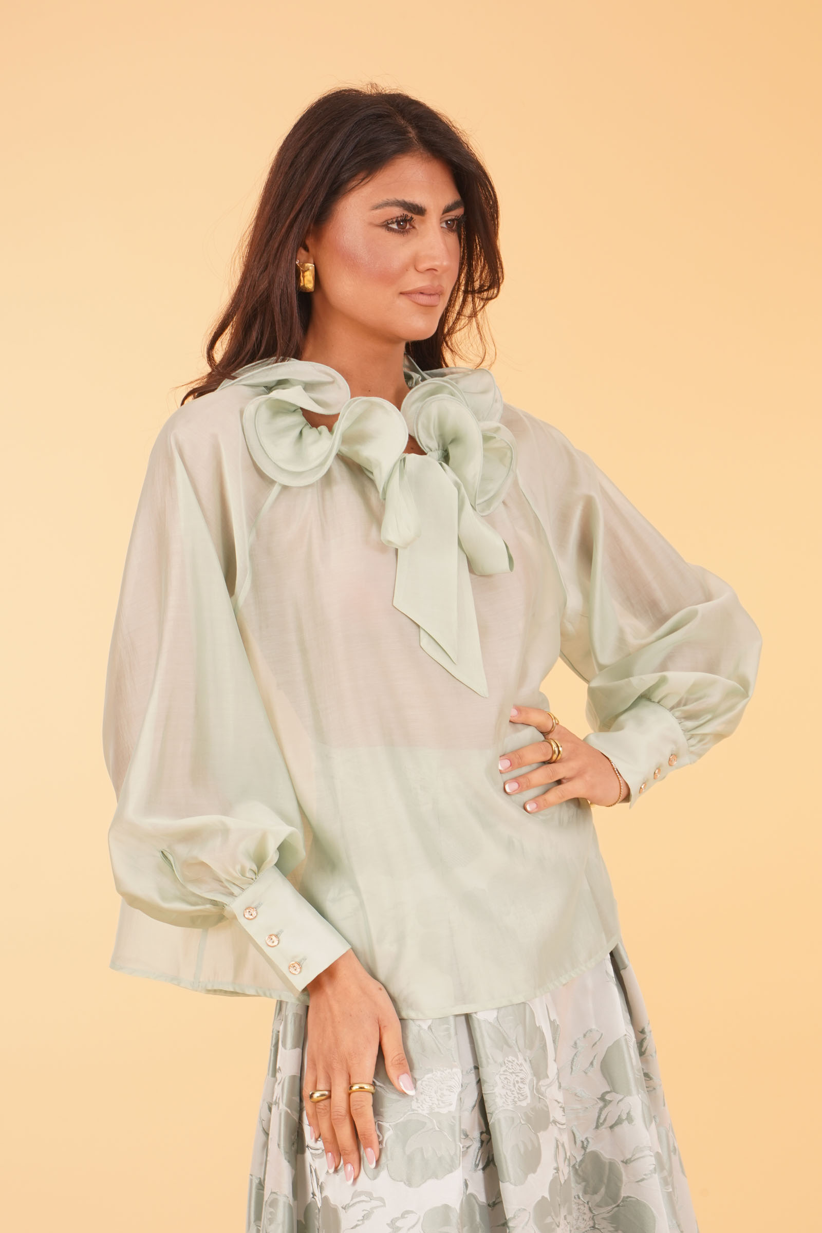 Vestibilita' regolare. Maniche a sbuffo. Dettaglio di rouches piu' fiocco sul collo. Altezza modella 1,80. Indossa la taglia 40. Composizione: 100% Cotone. Brand: Lanacaprina