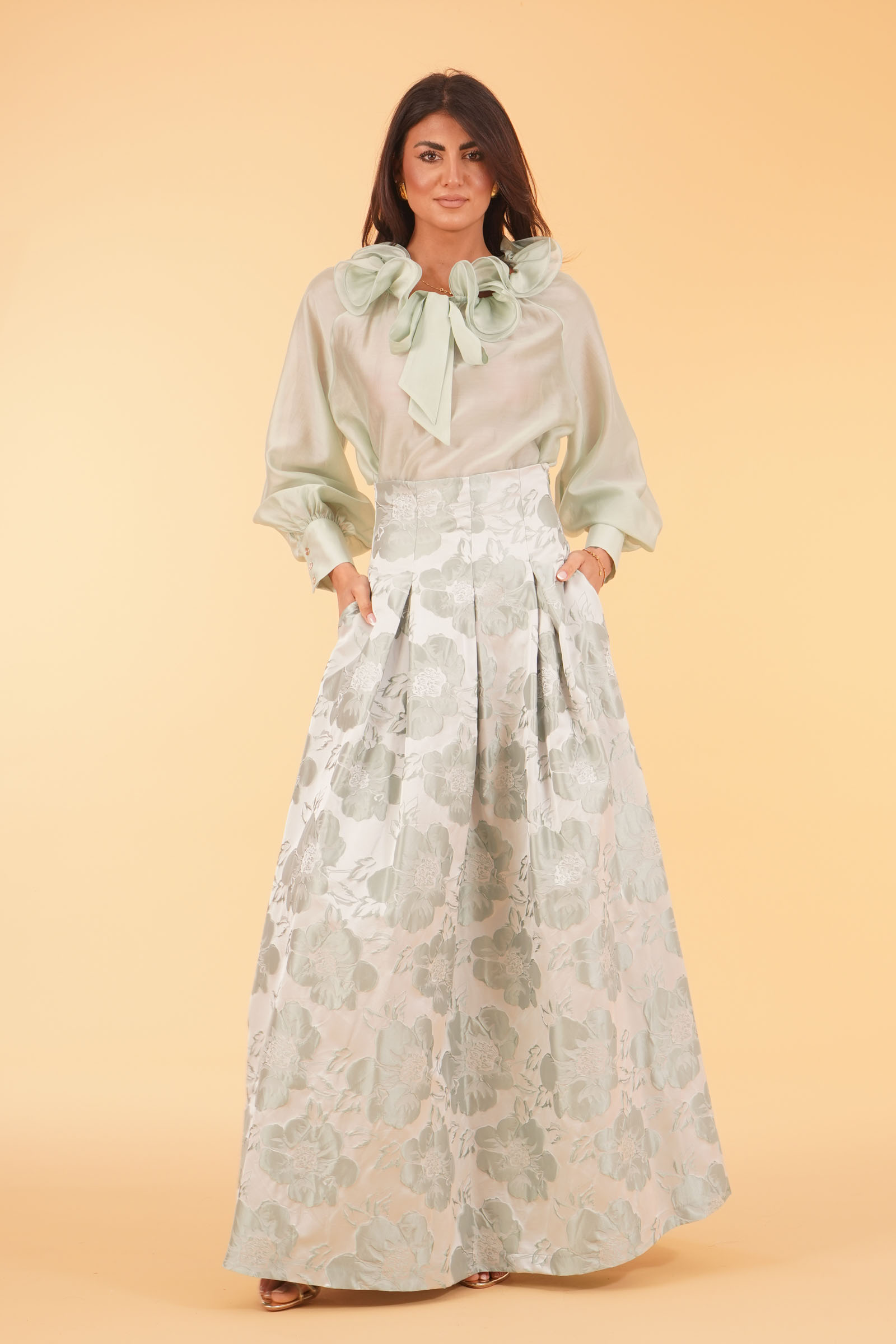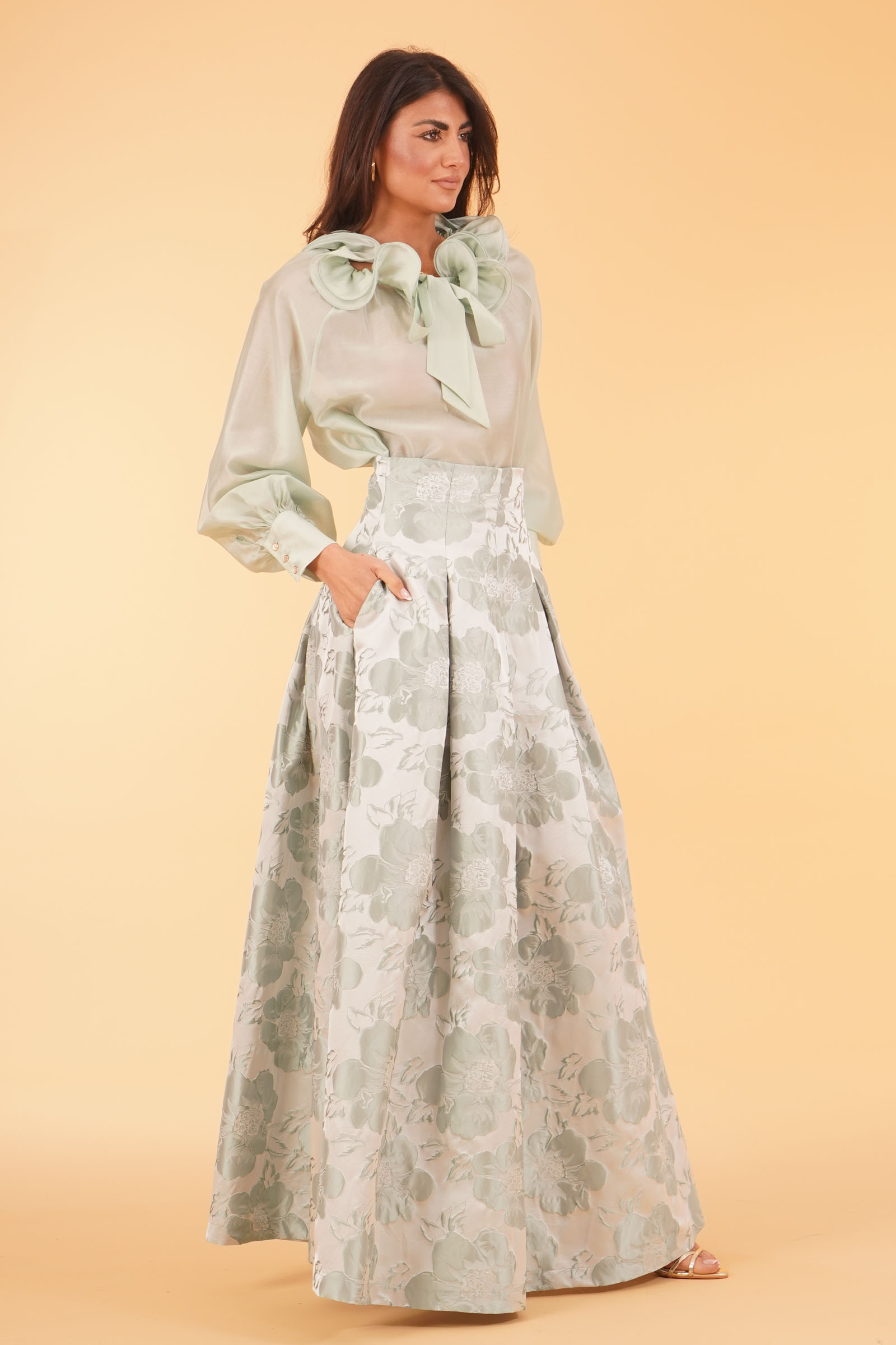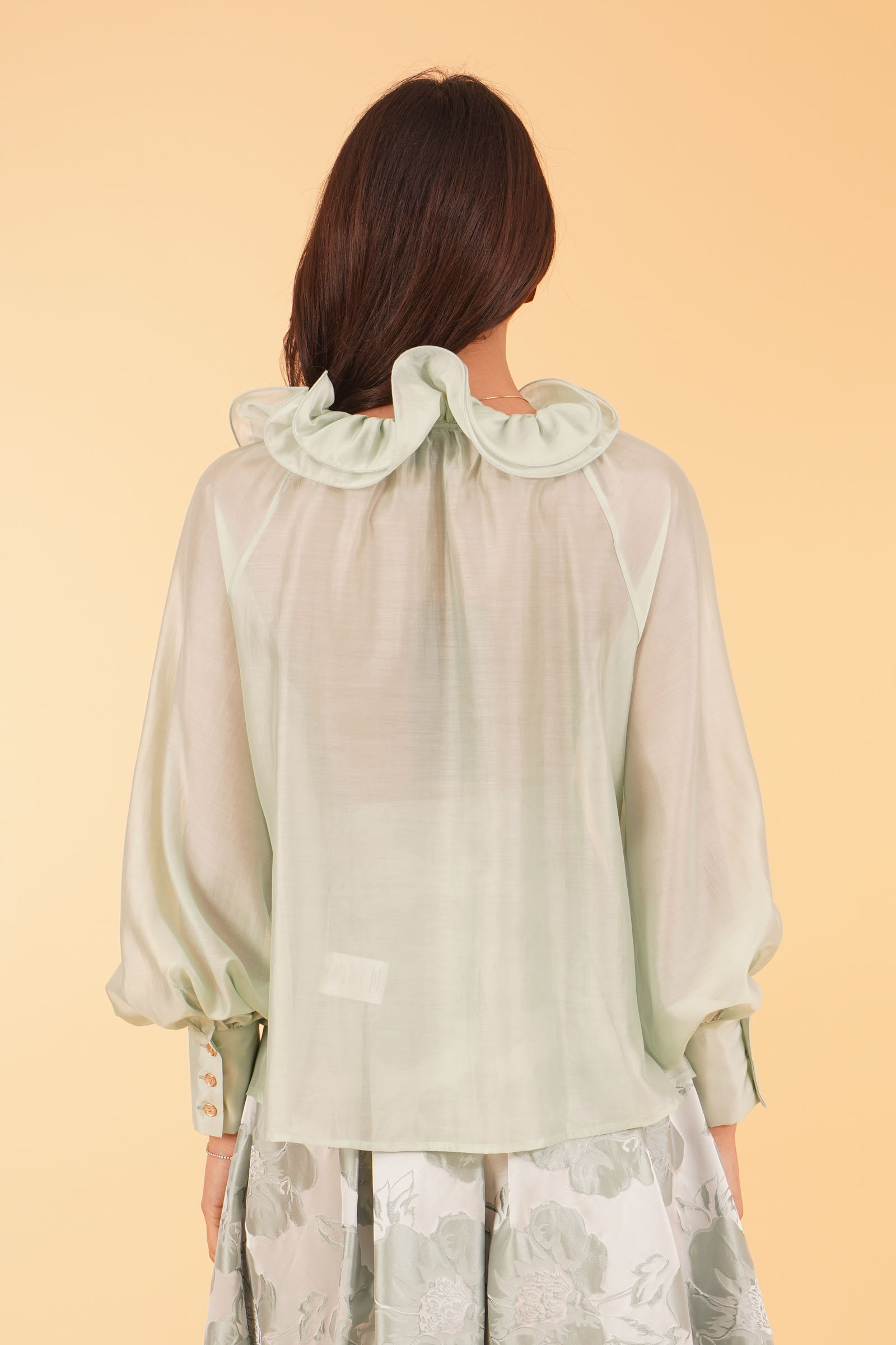 Vestibilita' regolare. Maniche a sbuffo. Dettaglio di rouches piu' fiocco sul collo. Altezza modella 1,80. Indossa la taglia 40. Composizione: 100% Cotone. Brand: Lanacaprina