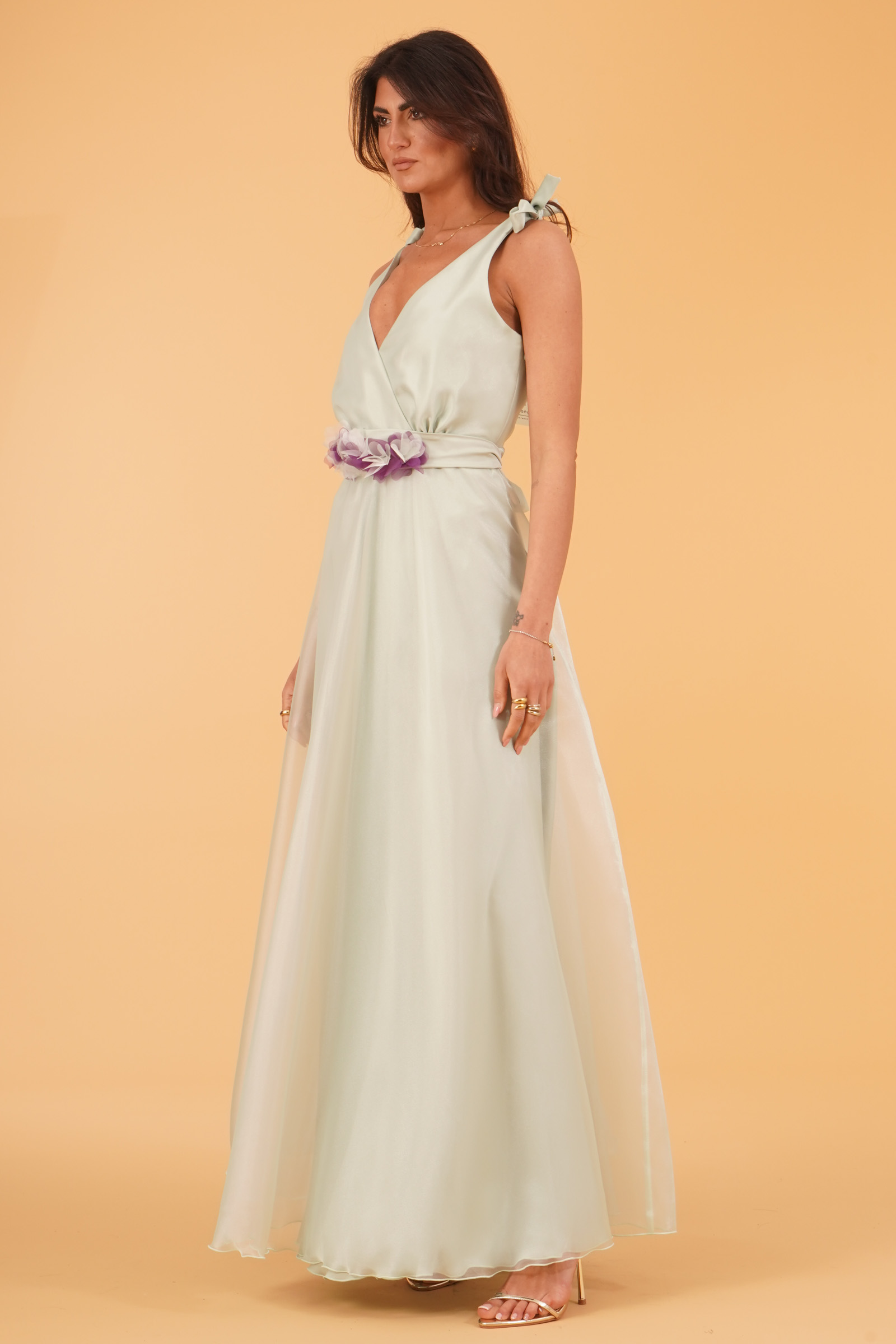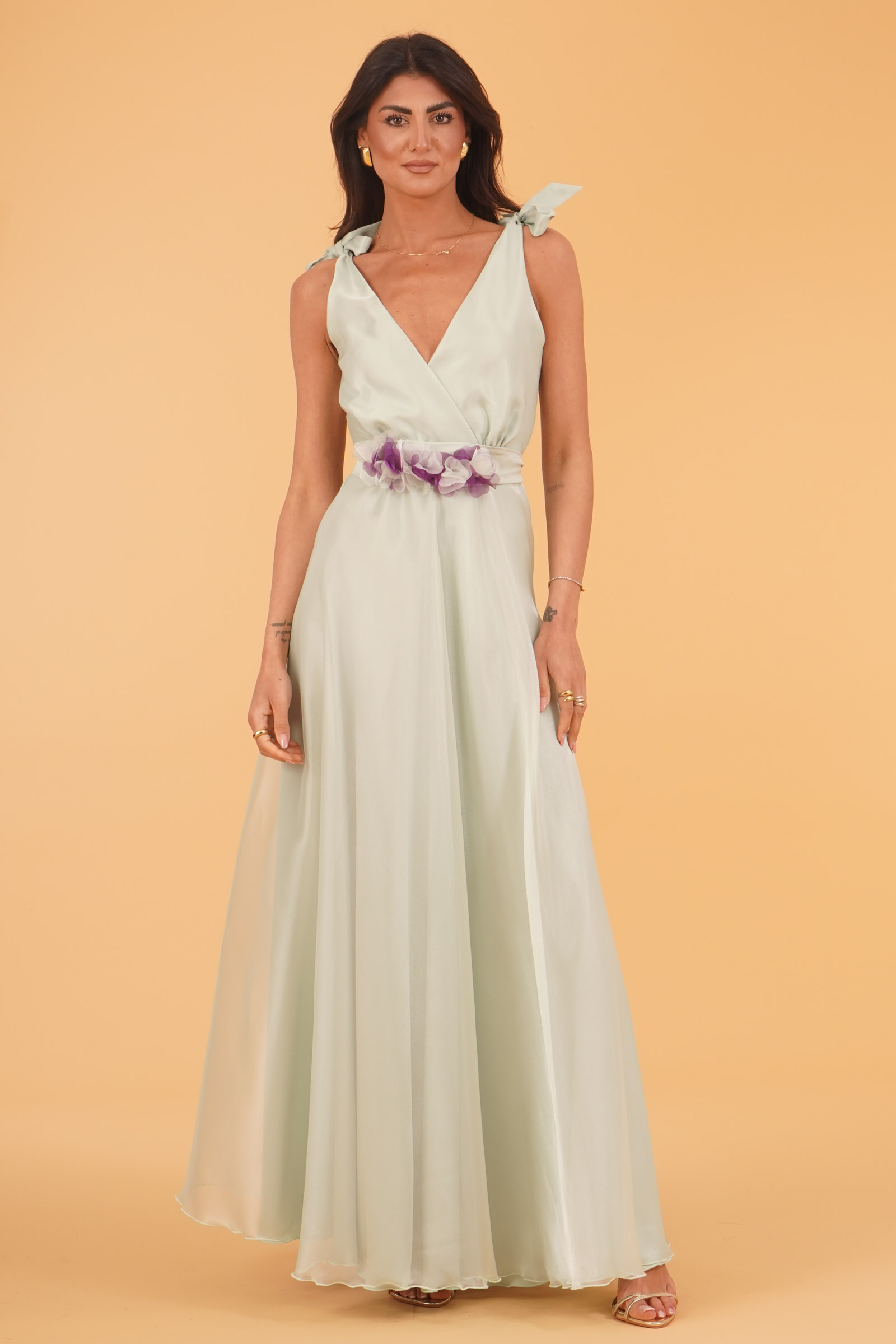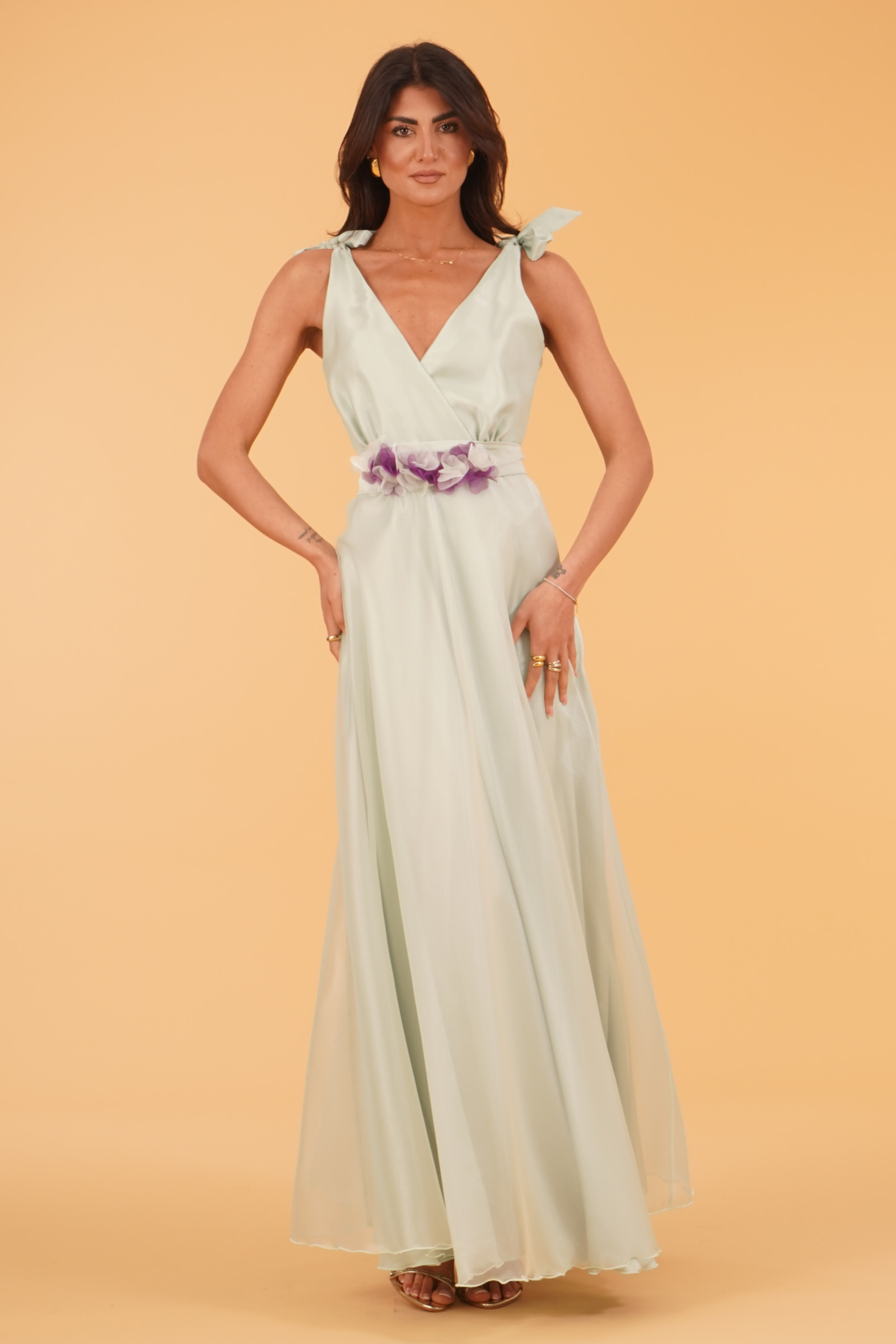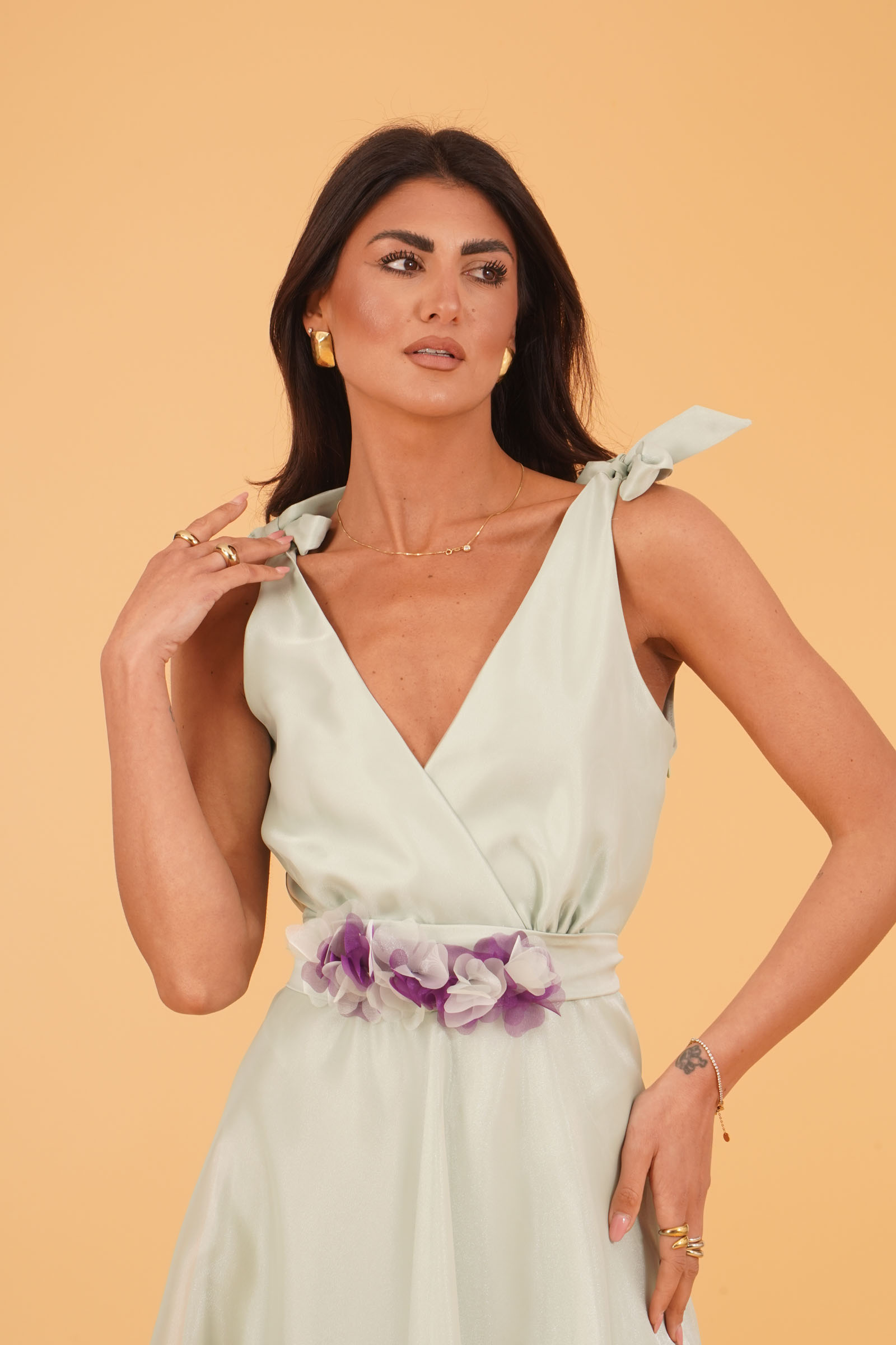 Vestibilita'regolare. Scollo ad incrocio. Cintura cremovibile con dettaglio di fiori. Chiusura con zip invisibile laterale. Altezza modella 1,80. Indossa taglia 40. Composizione: 97% Poliestere, 3% Elastane. Brand: Le Rjtange