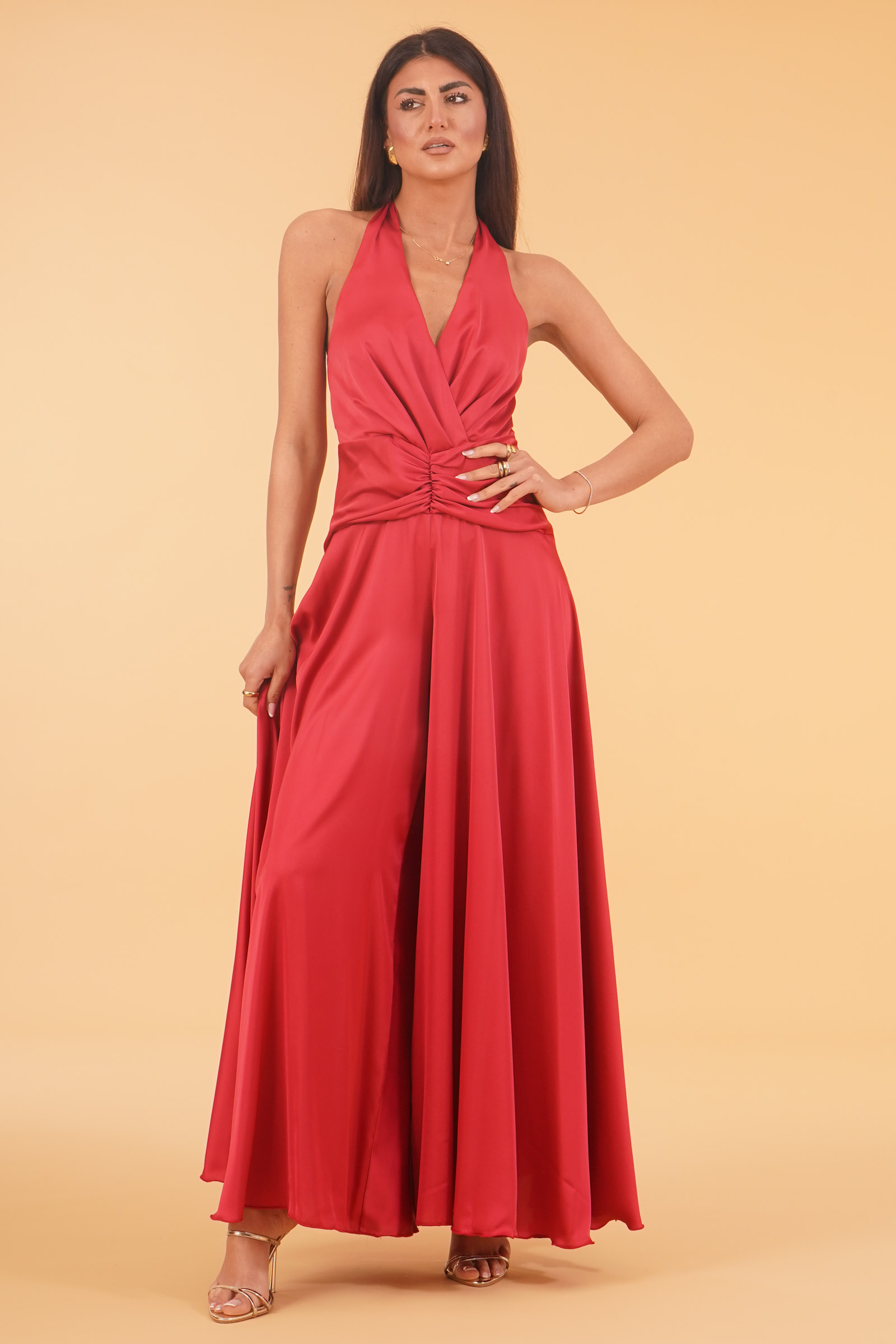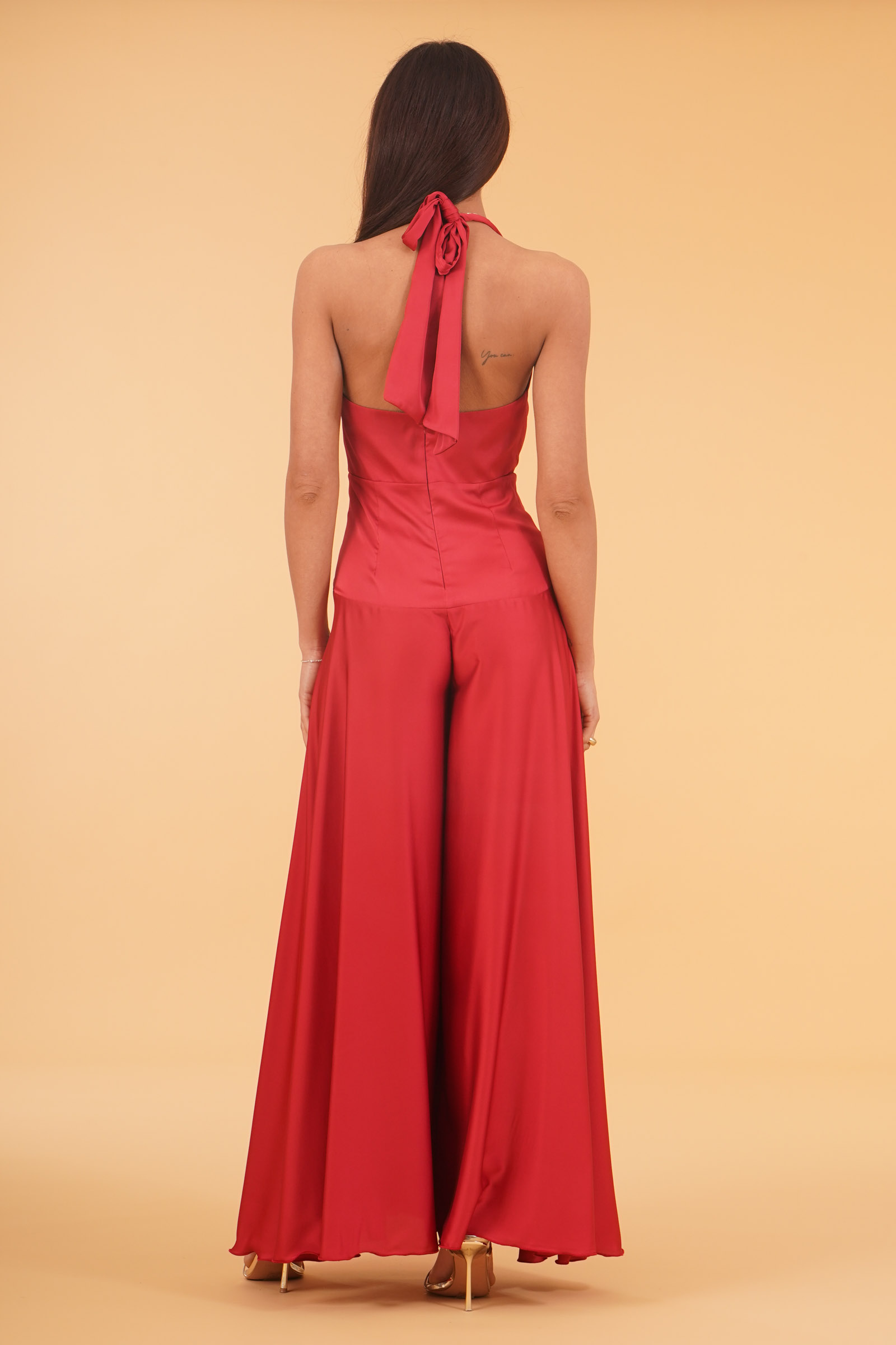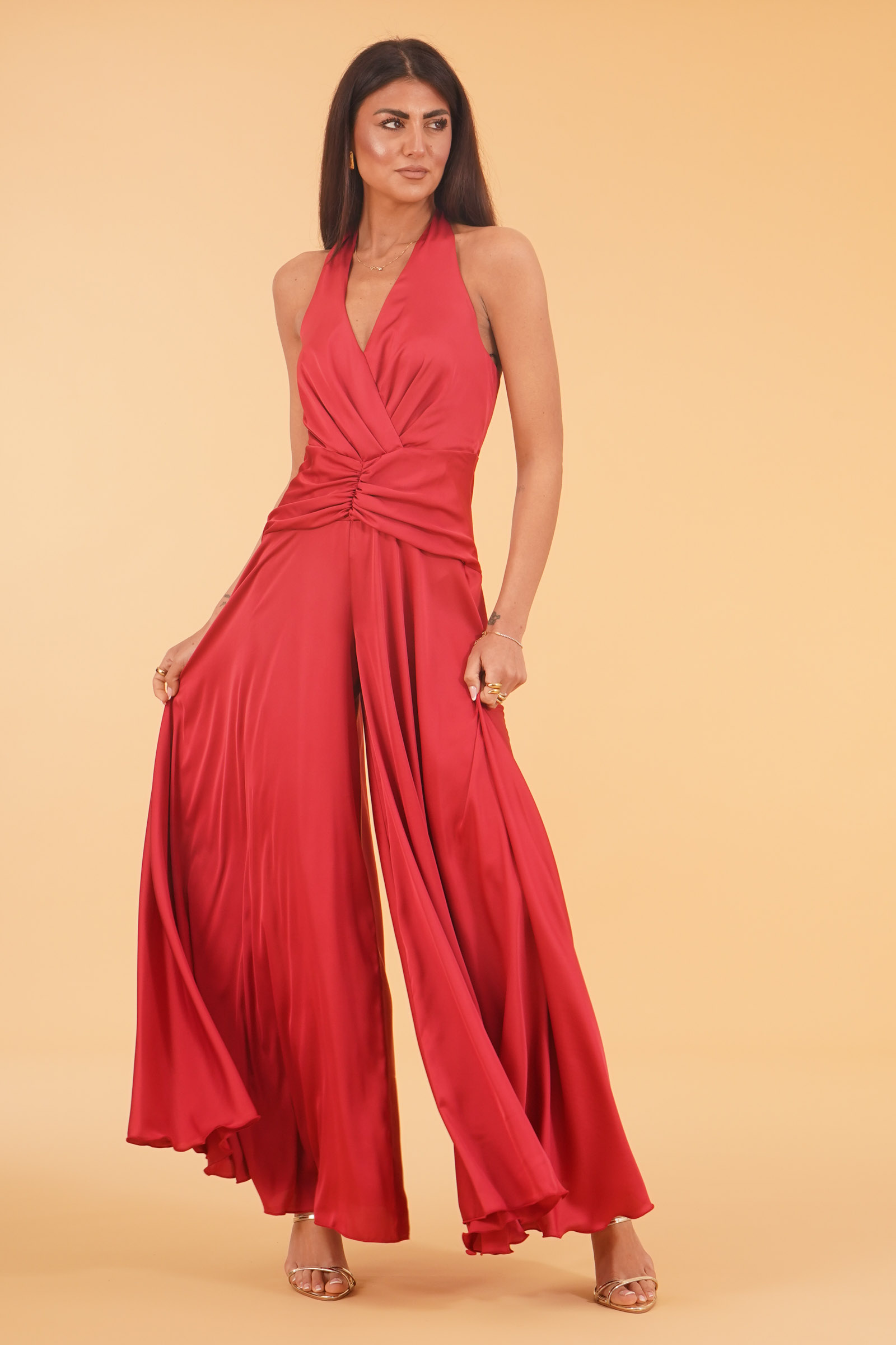 Vestibilita' regolare. Ampio pantalone vita alta. Drappeggio in vita. Scollo ad incrocio. Chiusura con zip invisibile. Altezza modella 1,80. Nella foto indossa la taglia 40. Composizione: 97% Poliestere, 3% Elastane Brand: Le Rjtange
