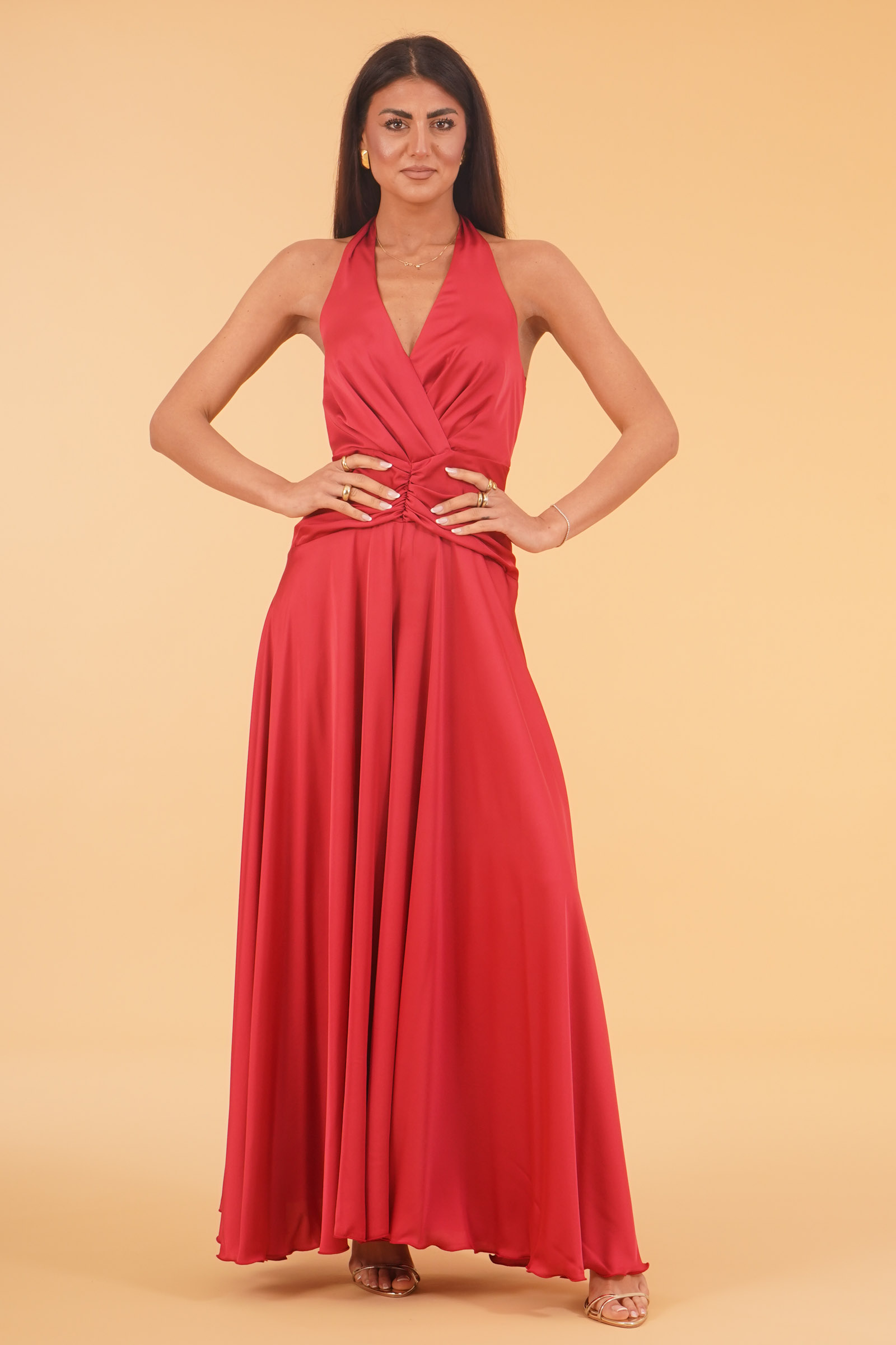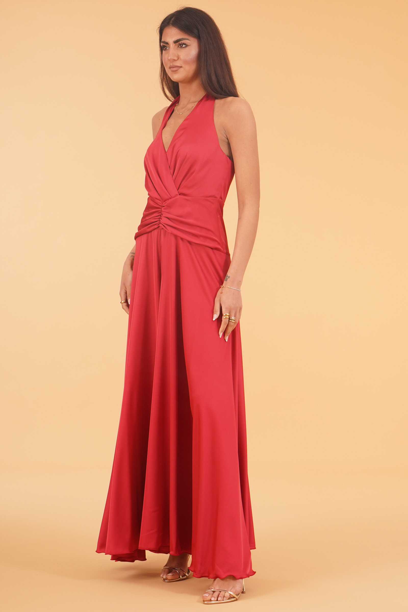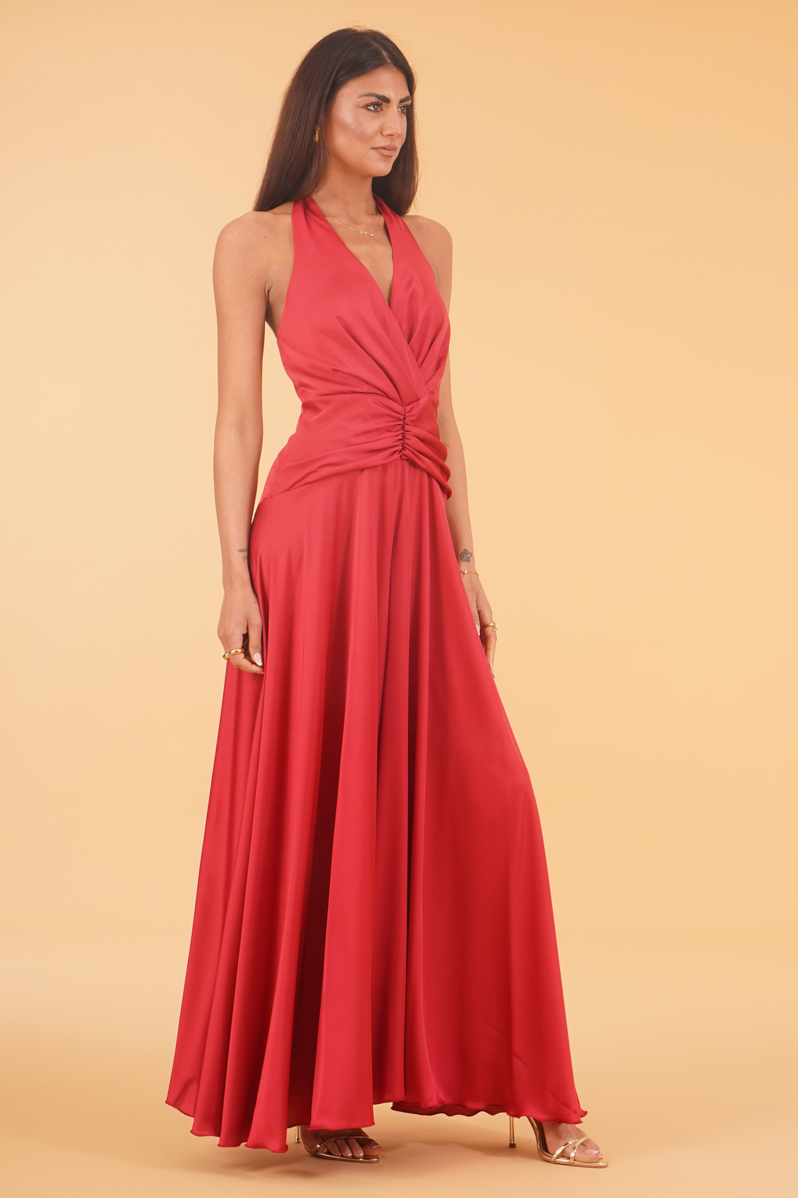 Vestibilita' regolare. Ampio pantalone vita alta. Drappeggio in vita. Scollo ad incrocio. Chiusura con zip invisibile. Altezza modella 1,80. Nella foto indossa la taglia 40. Composizione: 97% Poliestere, 3% Elastane Brand: Le Rjtange