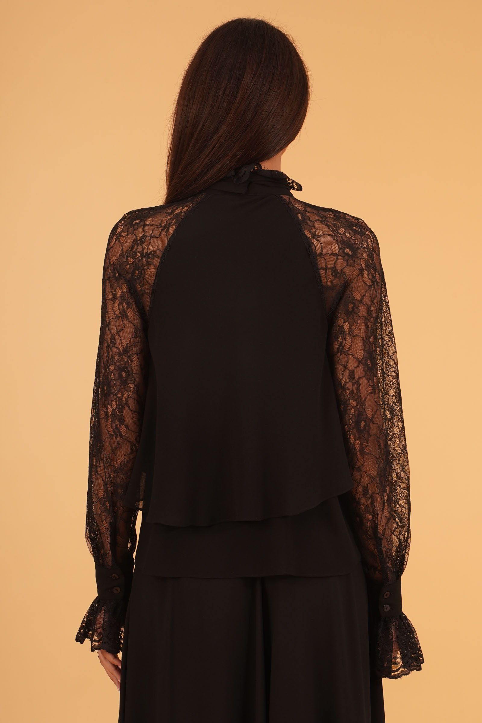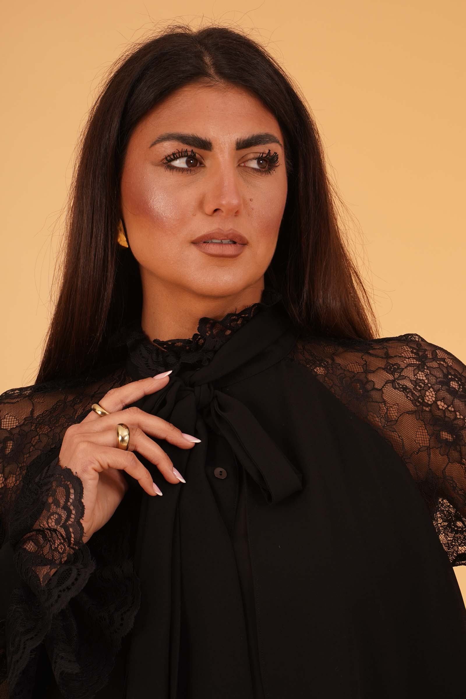 Vestibilita' comoda. Maniche in pizzo. Dettaglio di balze anteriori. Fusciacca non removibile. Altezza modella 1,80. Indossa la taglia 40. Composizione: 60% Poliestere. 40% Viscosa. Brand: Love To Love by Gai Mattiolo