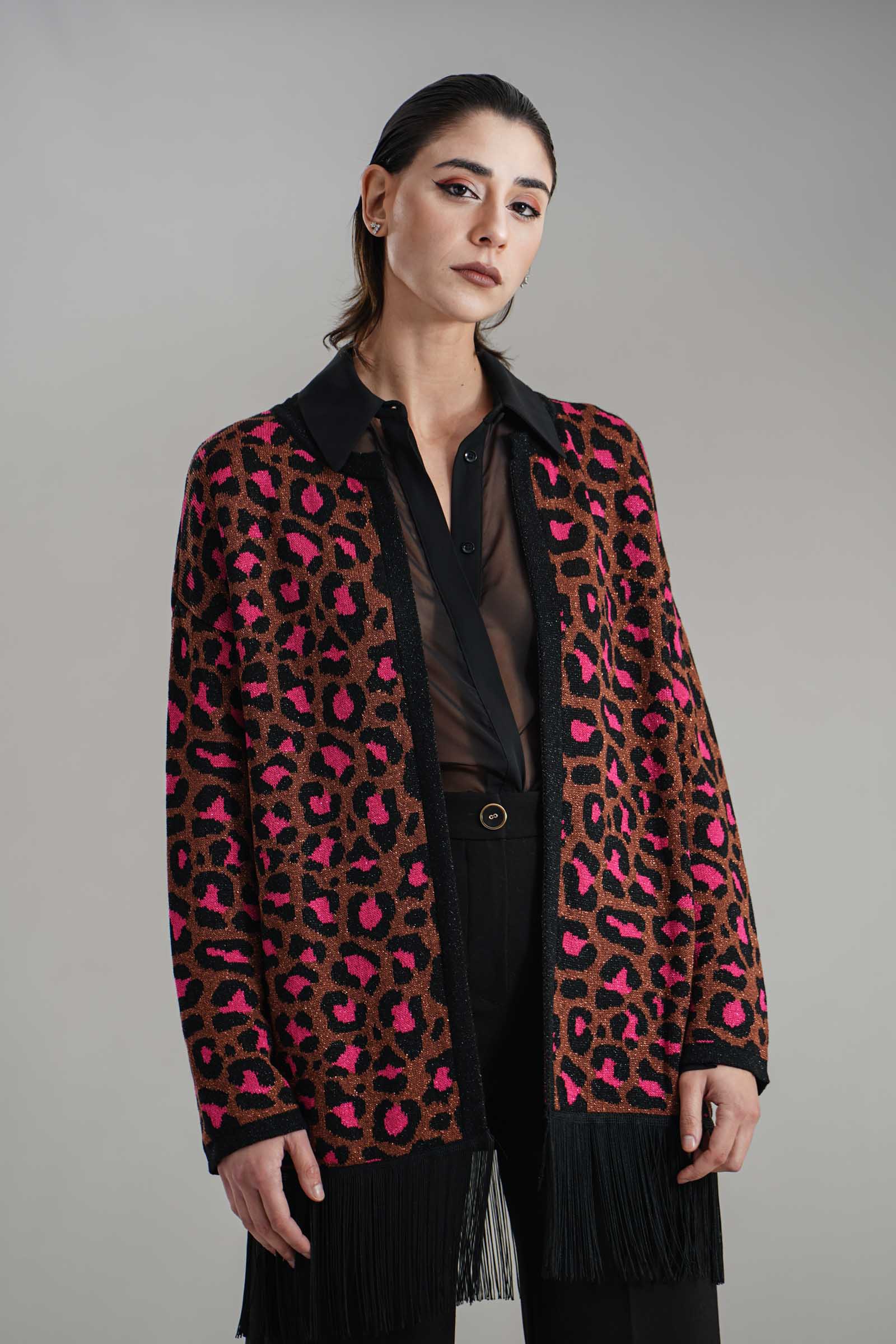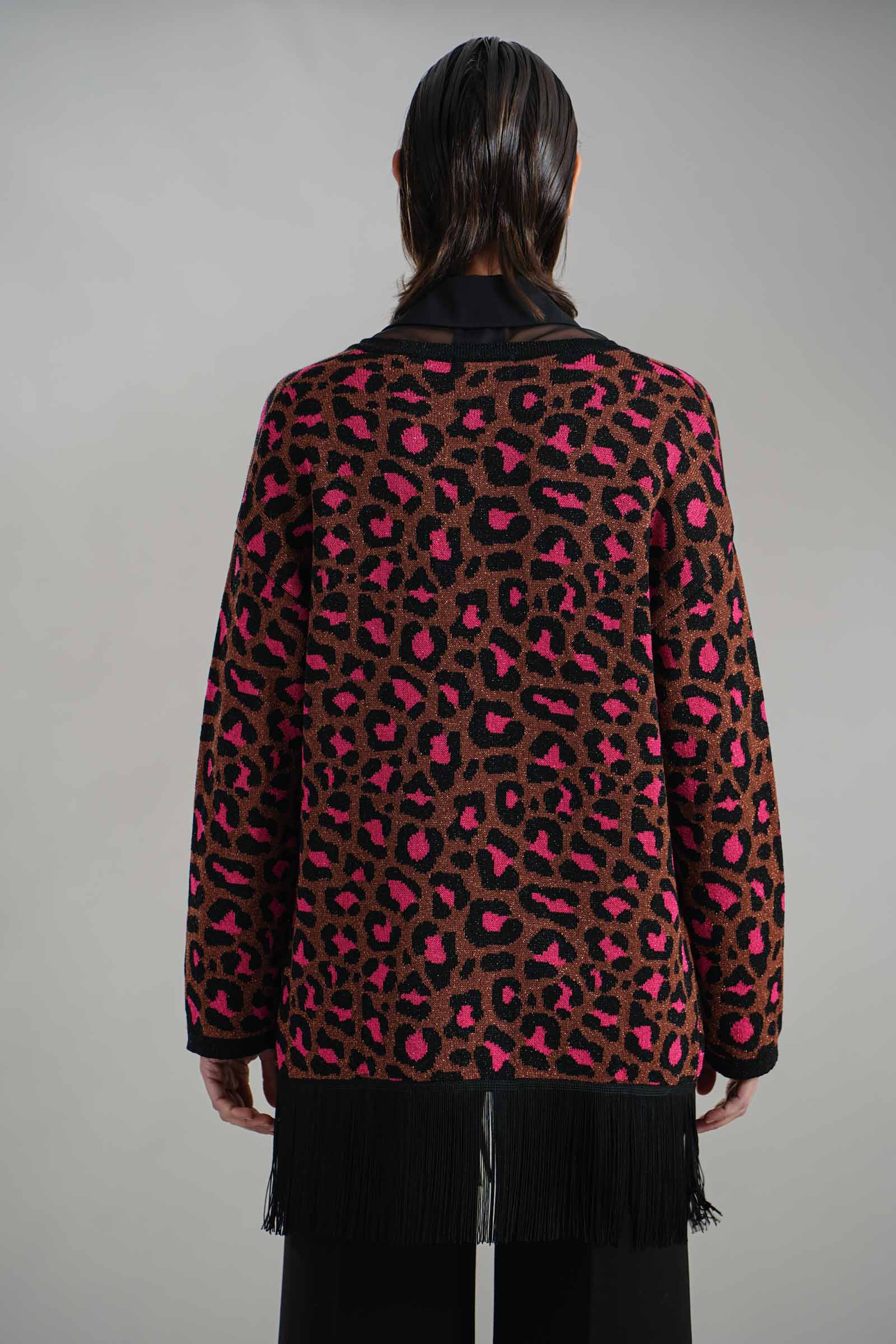 Vestibilita' comoda. Tessuto lurex. Dettaglio di frange sul fondo. Altezza modella 1,82. Nella foto indossa la taglia S. Composizione: 80% Viscosa, 10% Poliestere, 10% Poliammide. Brand: Love To Love By Gai Mattiolo
