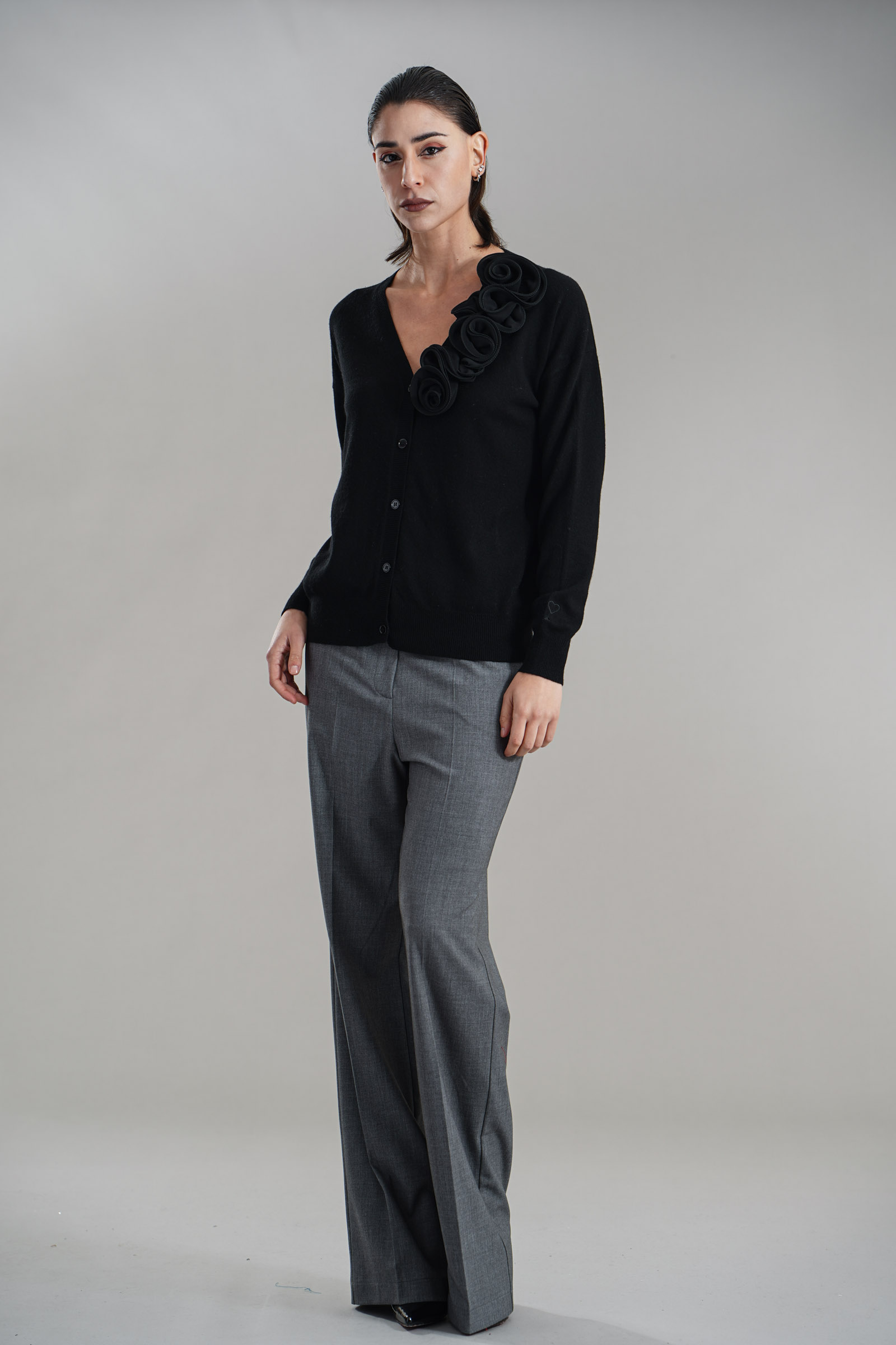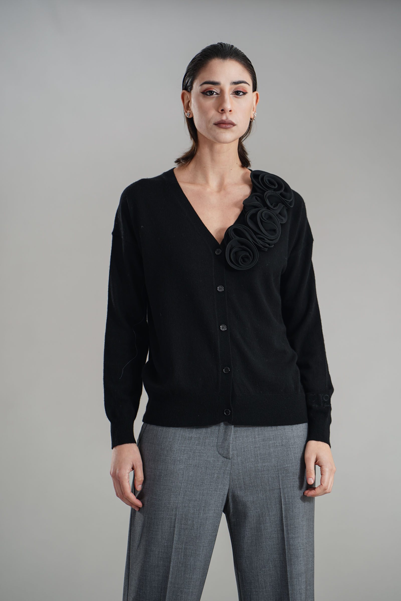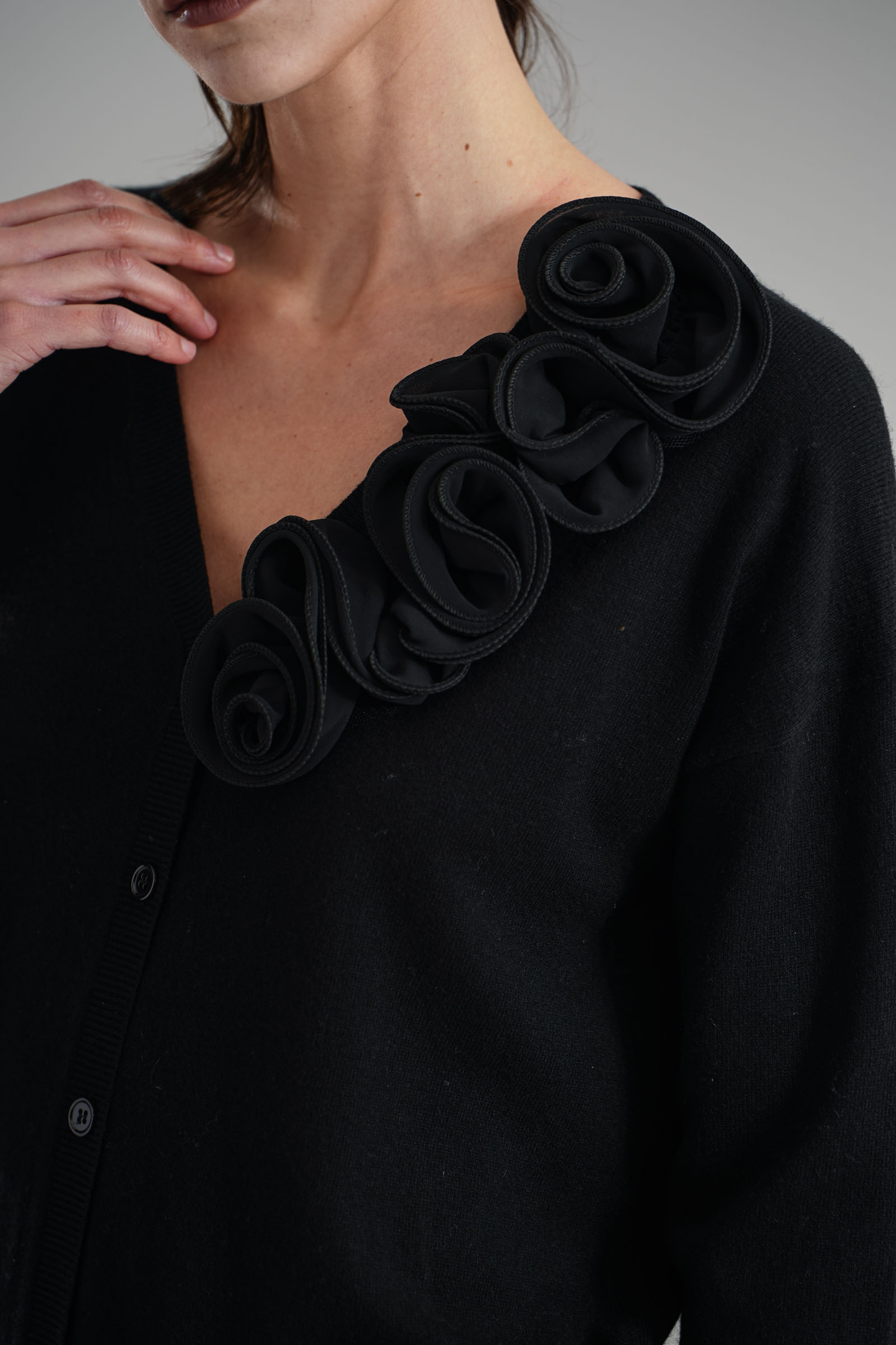 Vestibilita' comoda. Chiusura con bottoni. Elastico sul fondo e sui polsini. Dettaglio di rouches applicati. Altezza modella 1,82. Nella foto indossa la taglia S. Composizione: 50% Nylon, 30% Viscosa, 20% Cashmere. Brand: Love to Love By Gai Mattiolo