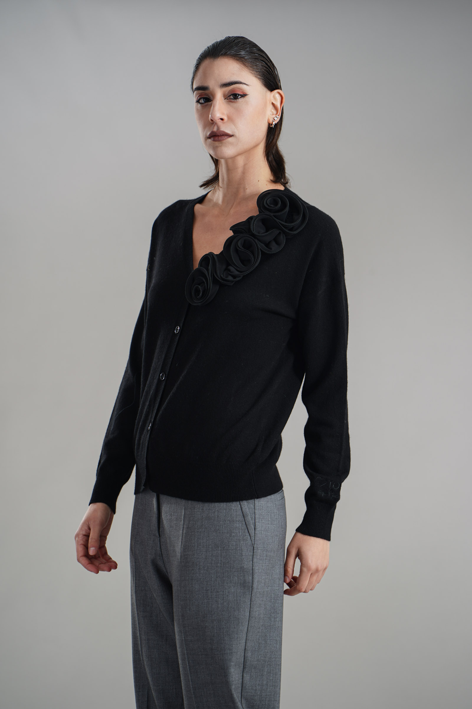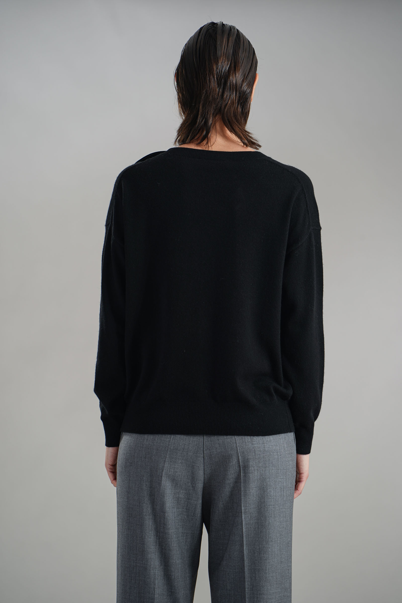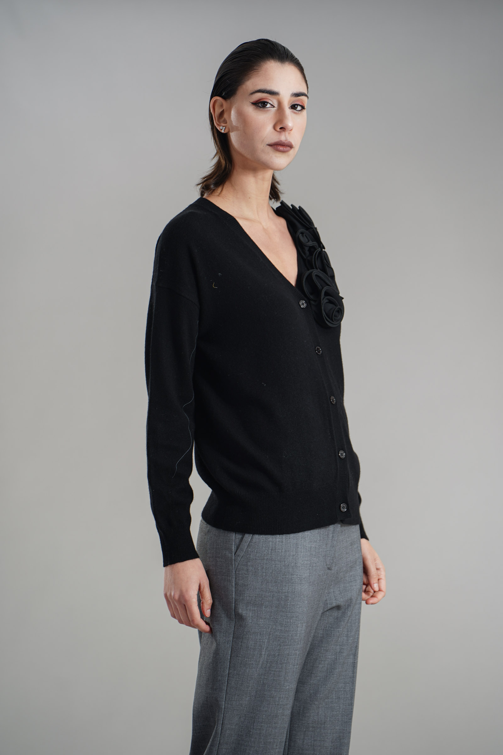 Vestibilita' comoda. Chiusura con bottoni. Elastico sul fondo e sui polsini. Dettaglio di rouches applicati. Altezza modella 1,82. Nella foto indossa la taglia S. Composizione: 50% Nylon, 30% Viscosa, 20% Cashmere. Brand: Love to Love By Gai Mattiolo