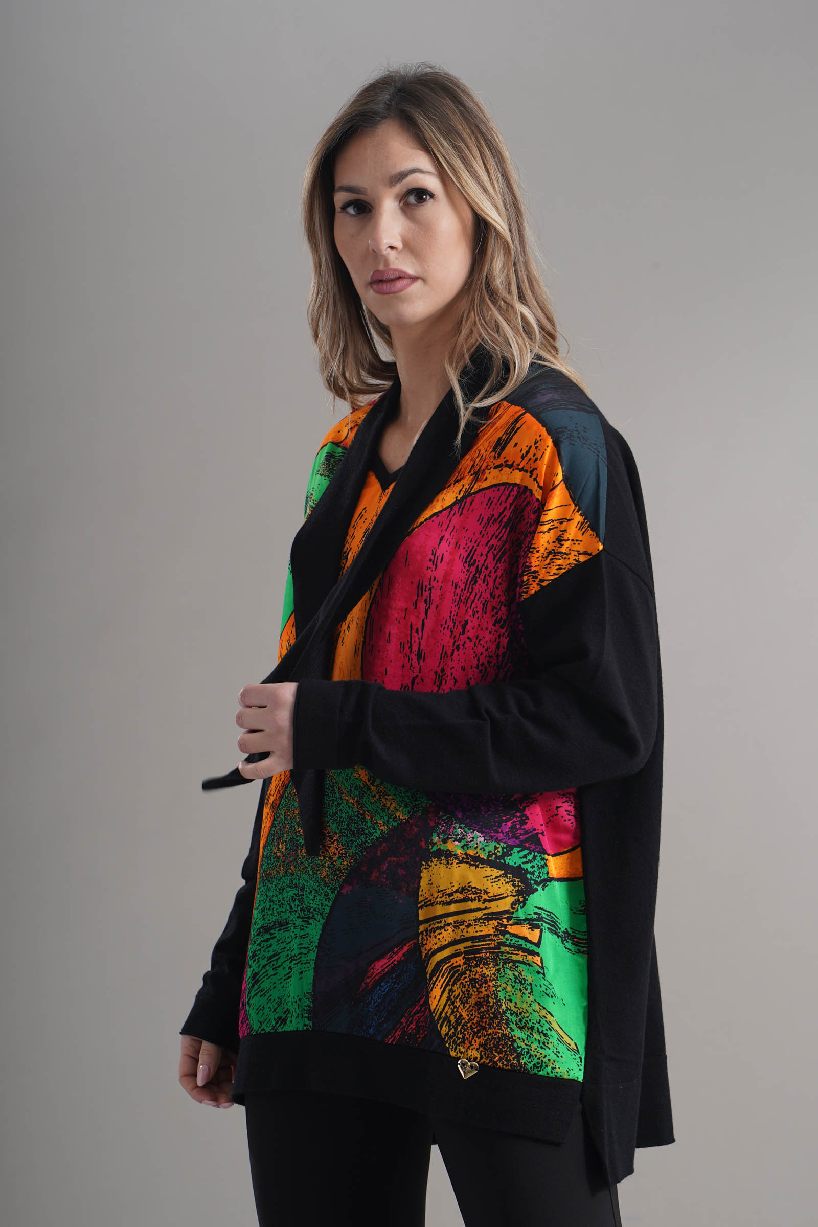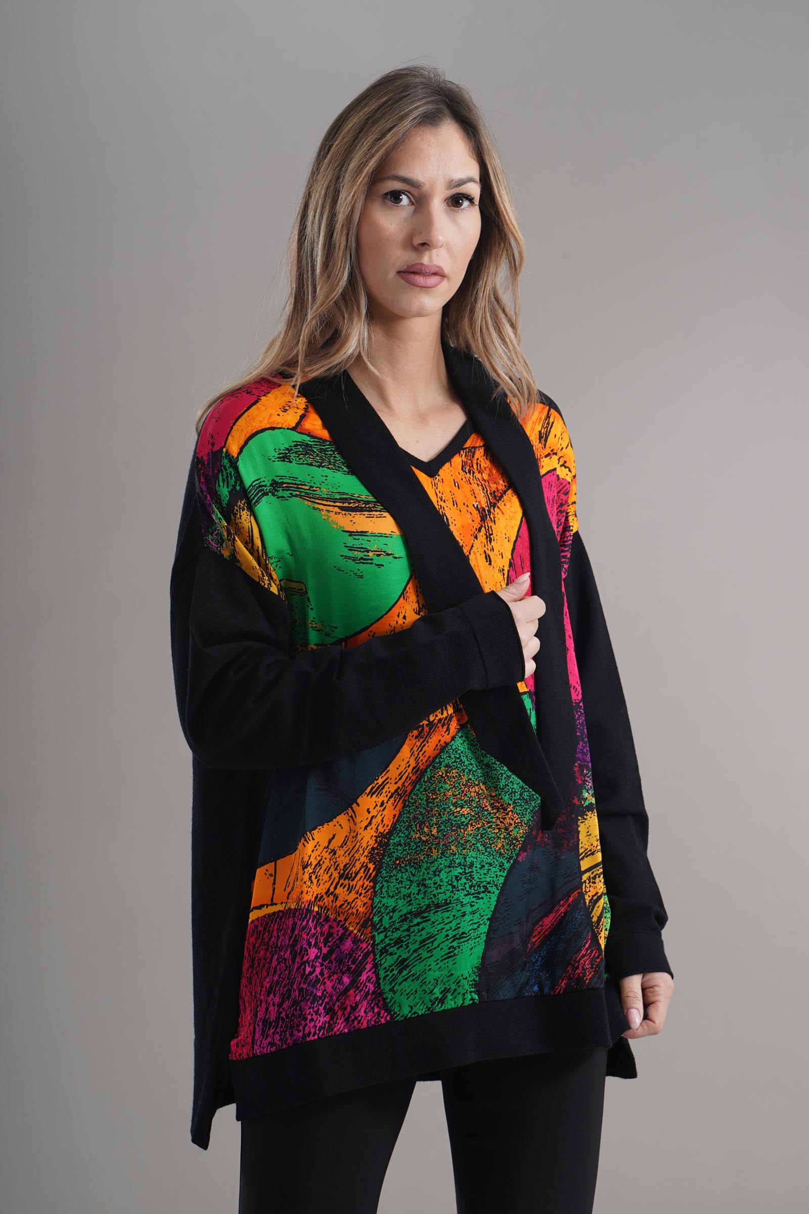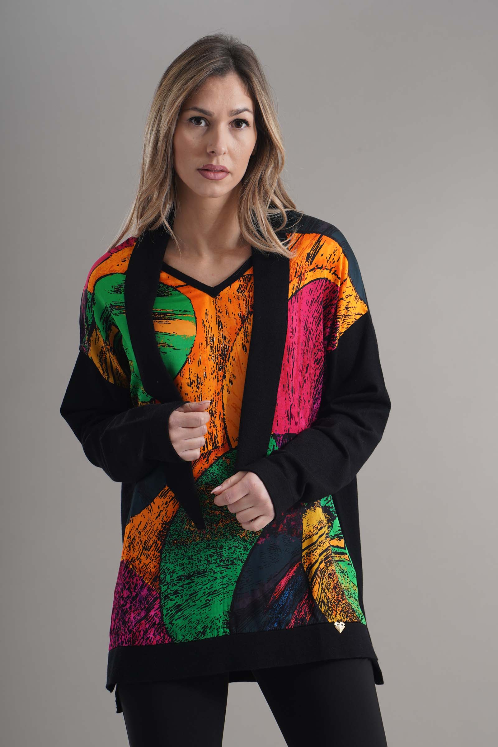 Vestibilita' comoda. Scolo a V con fusciacca non rimovibile. Maniche ampie. Spacchetti laterali. Altezza modella 1,79. Nella foto indossa la taglia S. Composizione: 50% Viscosa, 31% PBT, 19% Poliammide. Brand: Love To Love By Gai Mattiolo