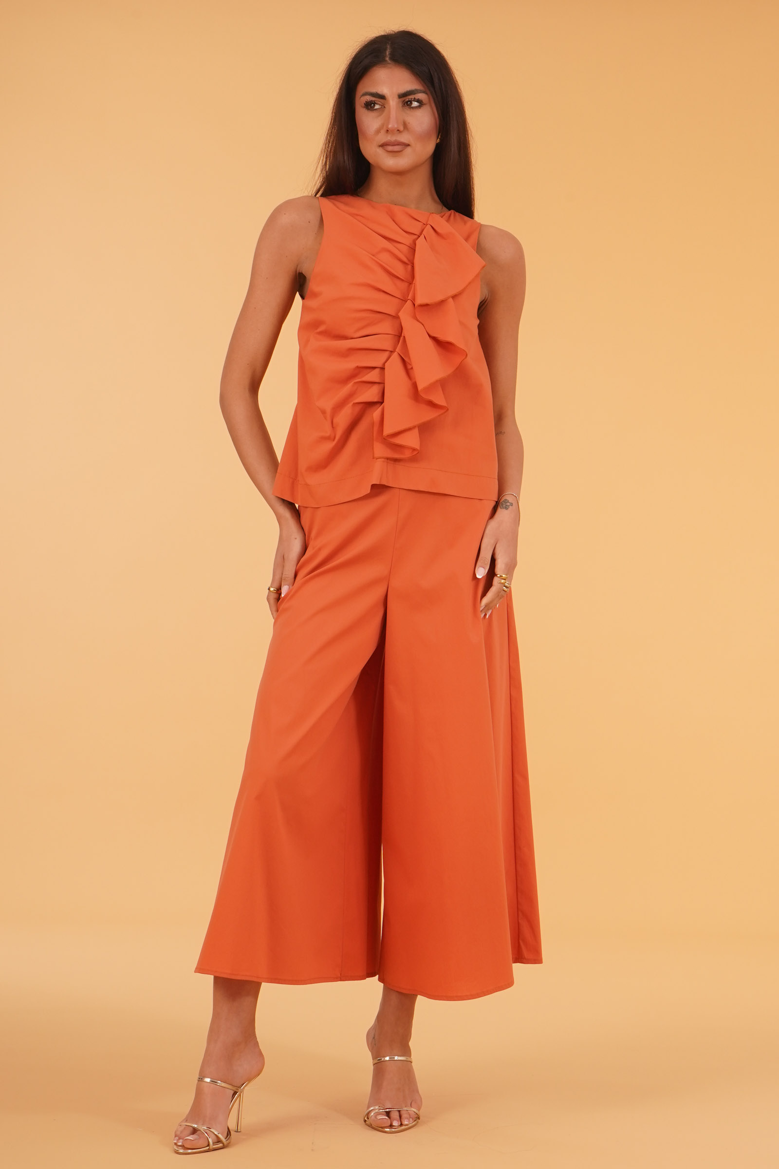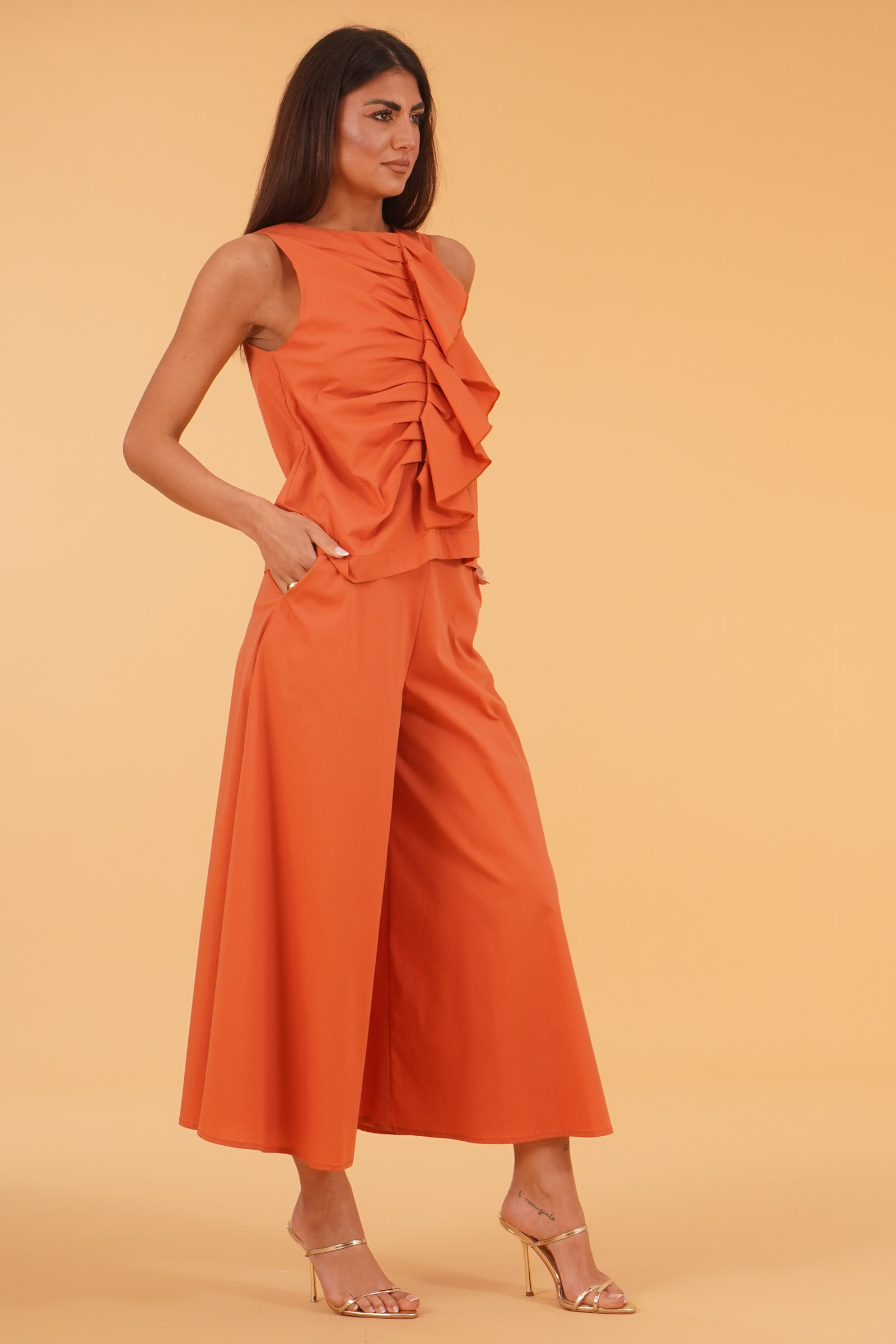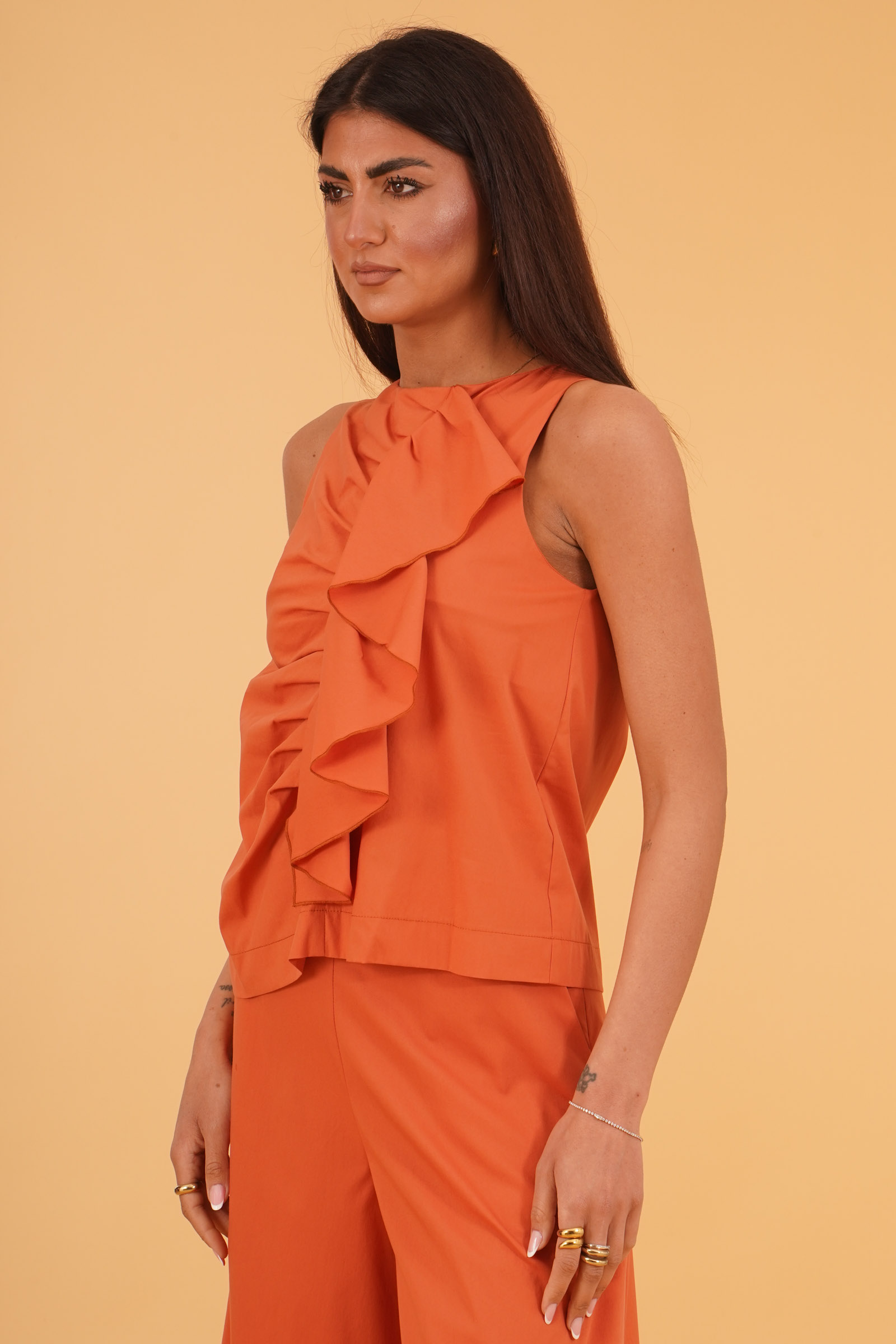 Vestibilita' regolare. Chiusura con bottone posteriore. Cotone elastico. Dettaglio di rouches piu' drappeggi. Altezza modella 1,80. Indossa la taglia 40. Composizione: 97% Cotone, 3% Elastane. Brand: Luckylu Milano
