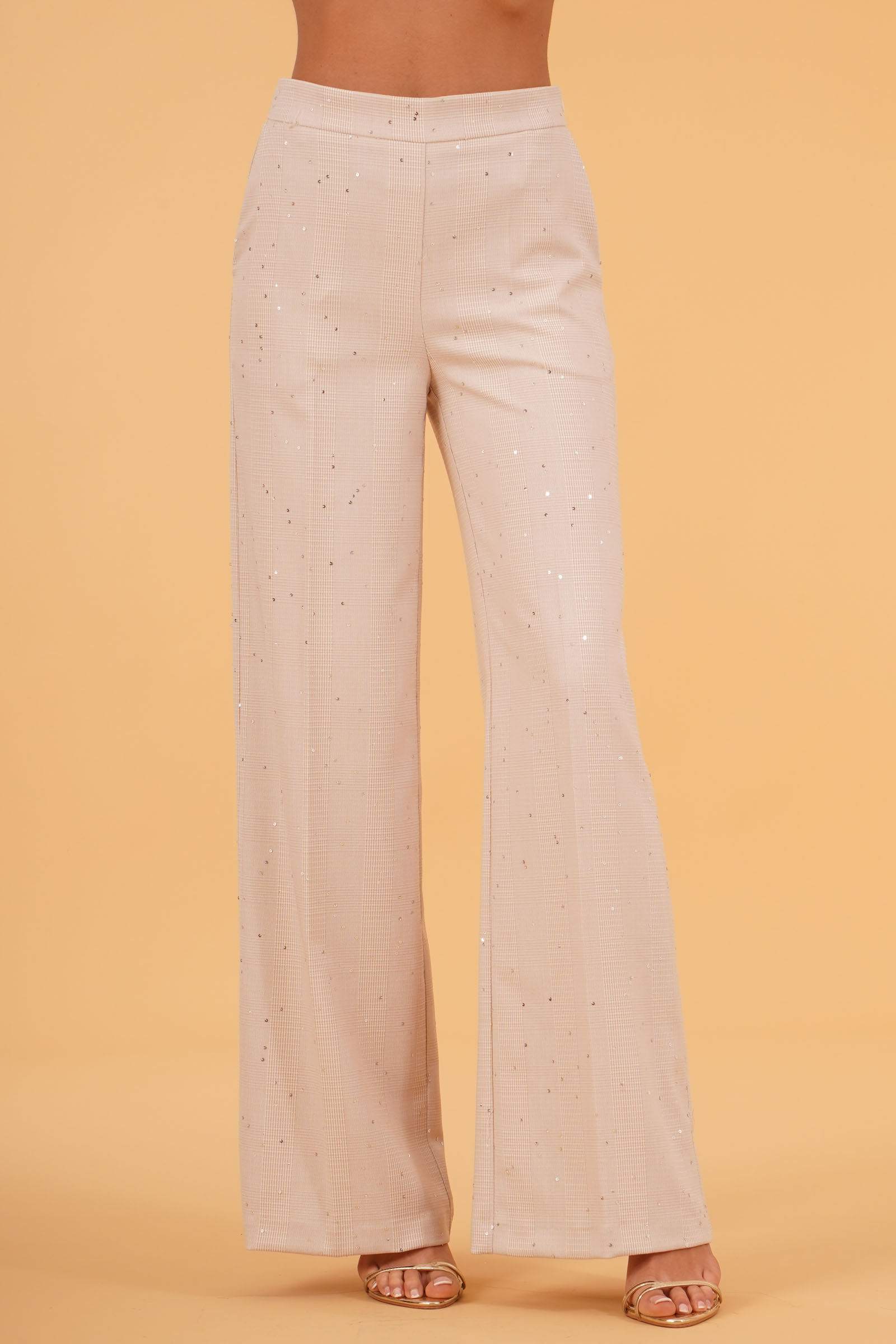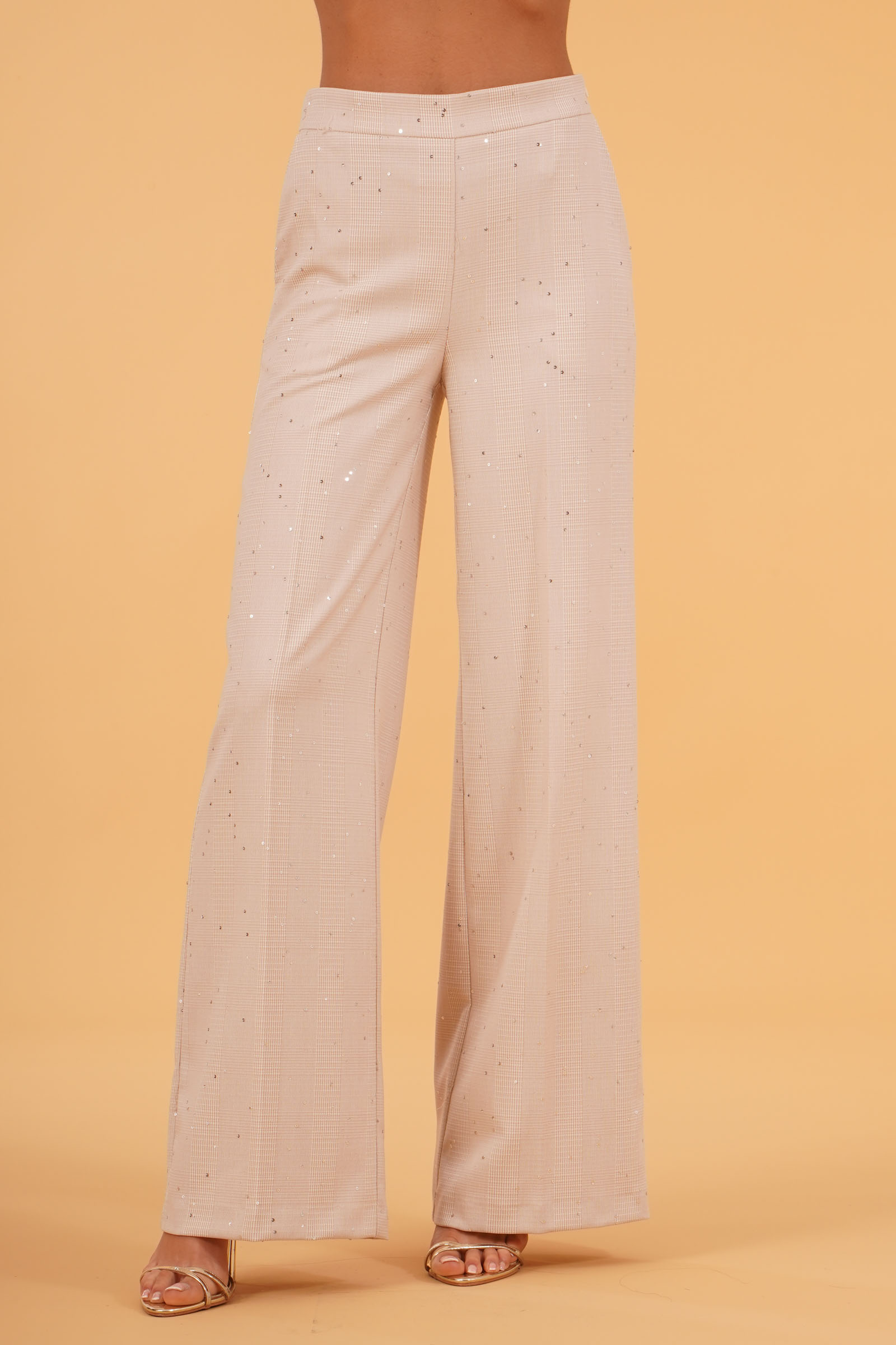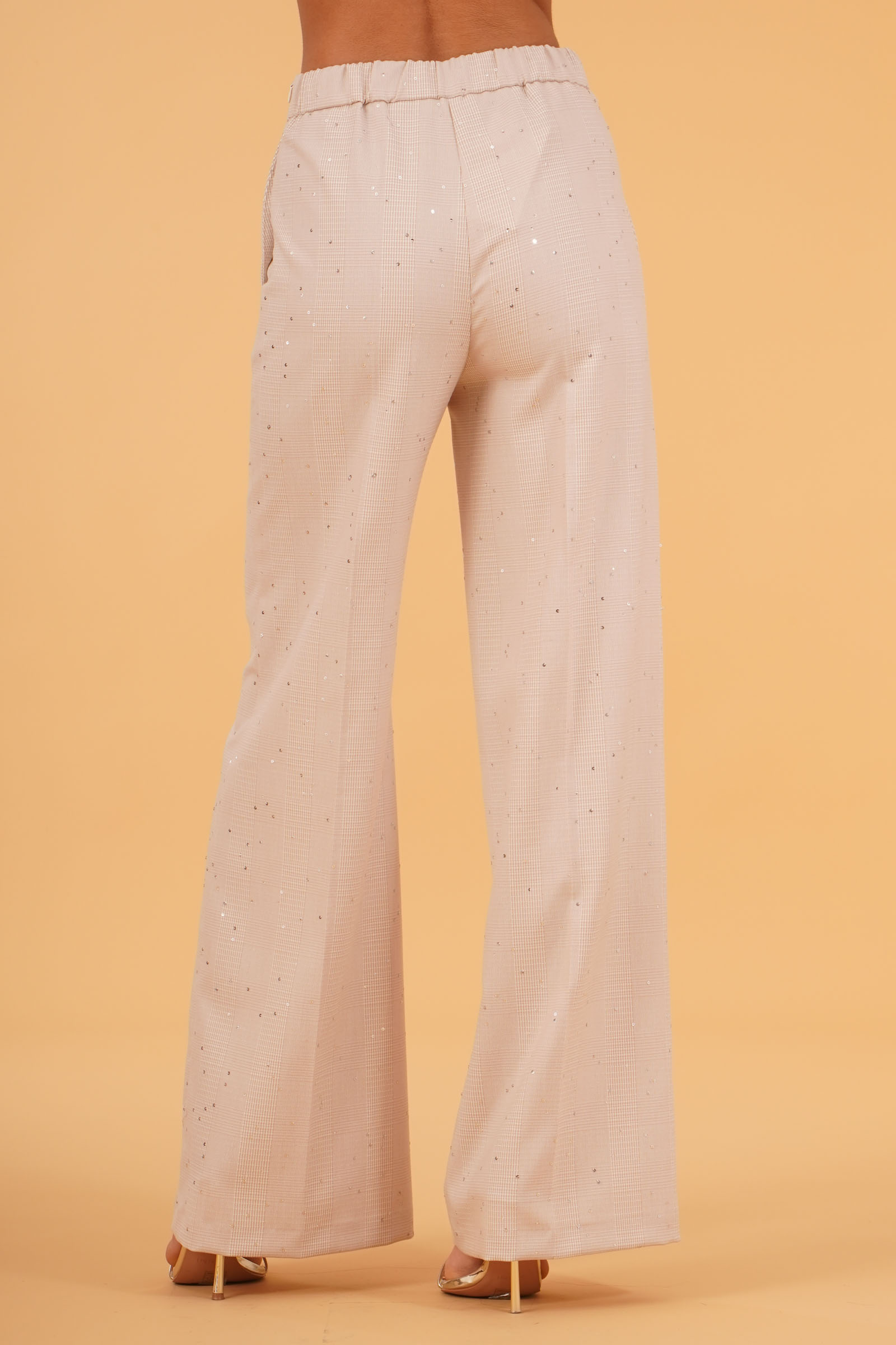 Vestibilita' regolare. Tasche america. Bustino con elastico posteriore. Chiusura con zip invisibile laterale. Alezza modella 1,80. Indossa la taglia 40. Composizione: 75% Poliestere, 20% Viscosa, 3% Elastane, 2% Fibra metallica. Brand: Luckylu Milano