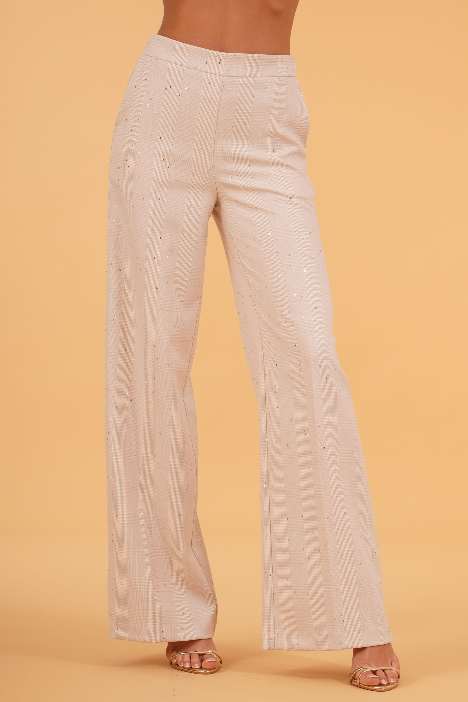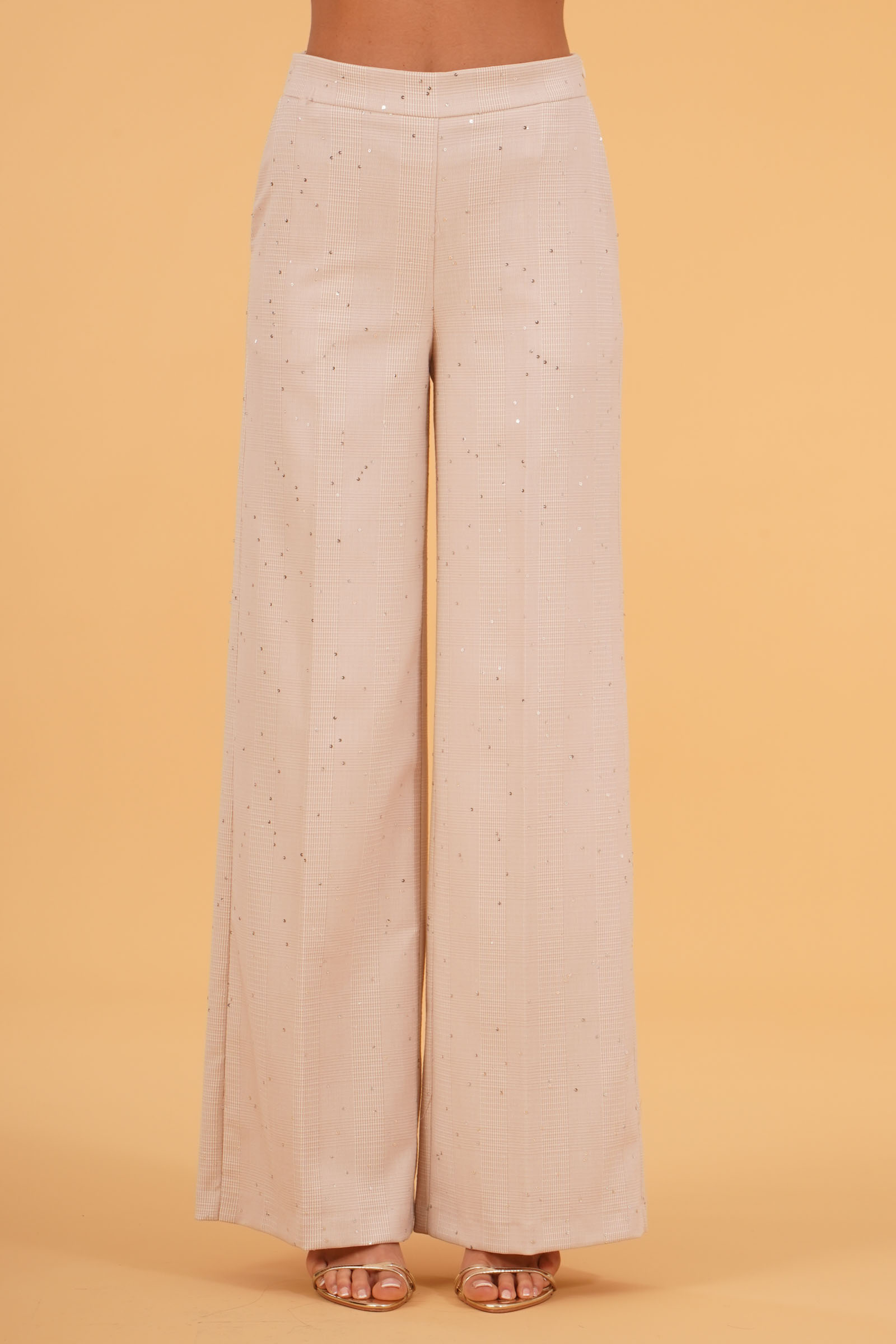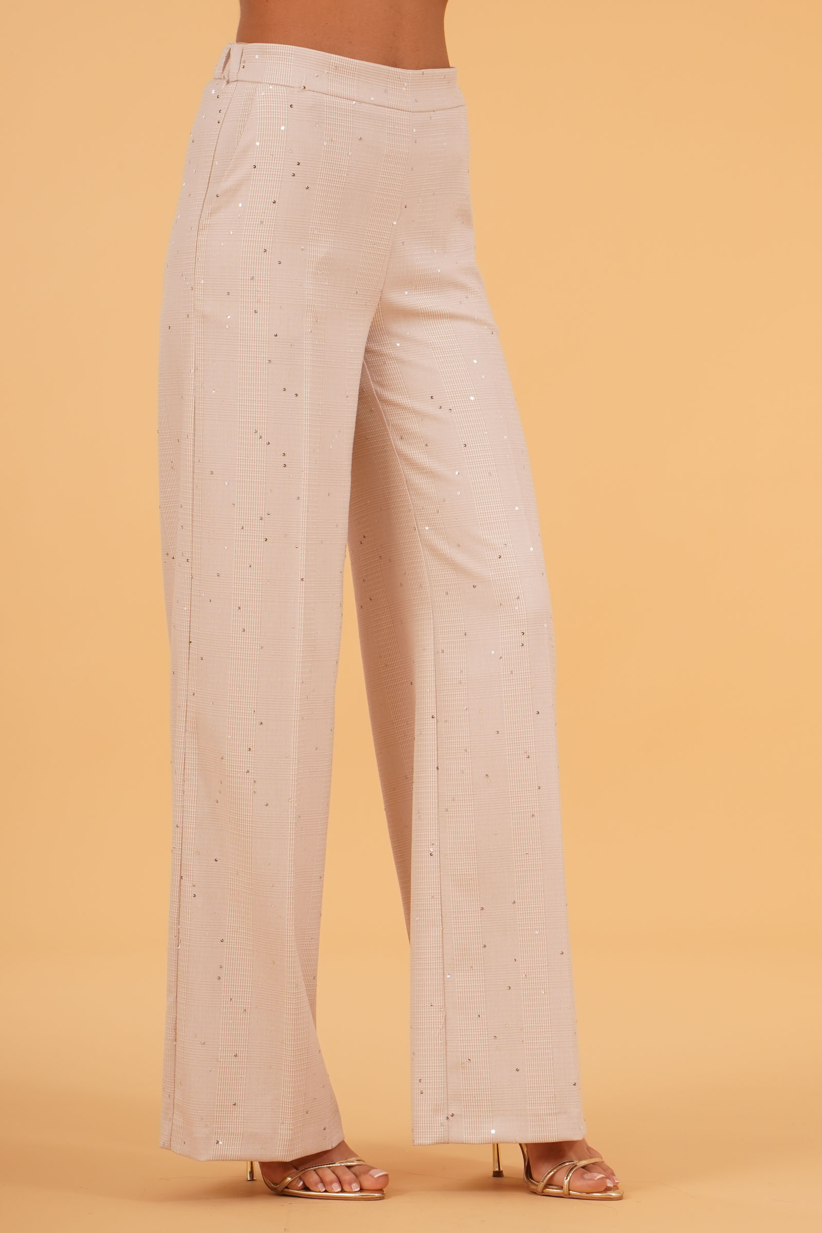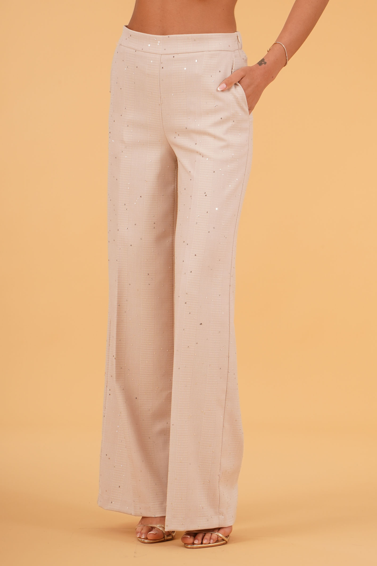 Vestibilita' regolare. Tasche america. Bustino con elastico posteriore. Chiusura con zip invisibile laterale. Alezza modella 1,80. Indossa la taglia 40. Composizione: 75% Poliestere, 20% Viscosa, 3% Elastane, 2% Fibra metallica. Brand: Luckylu Milano