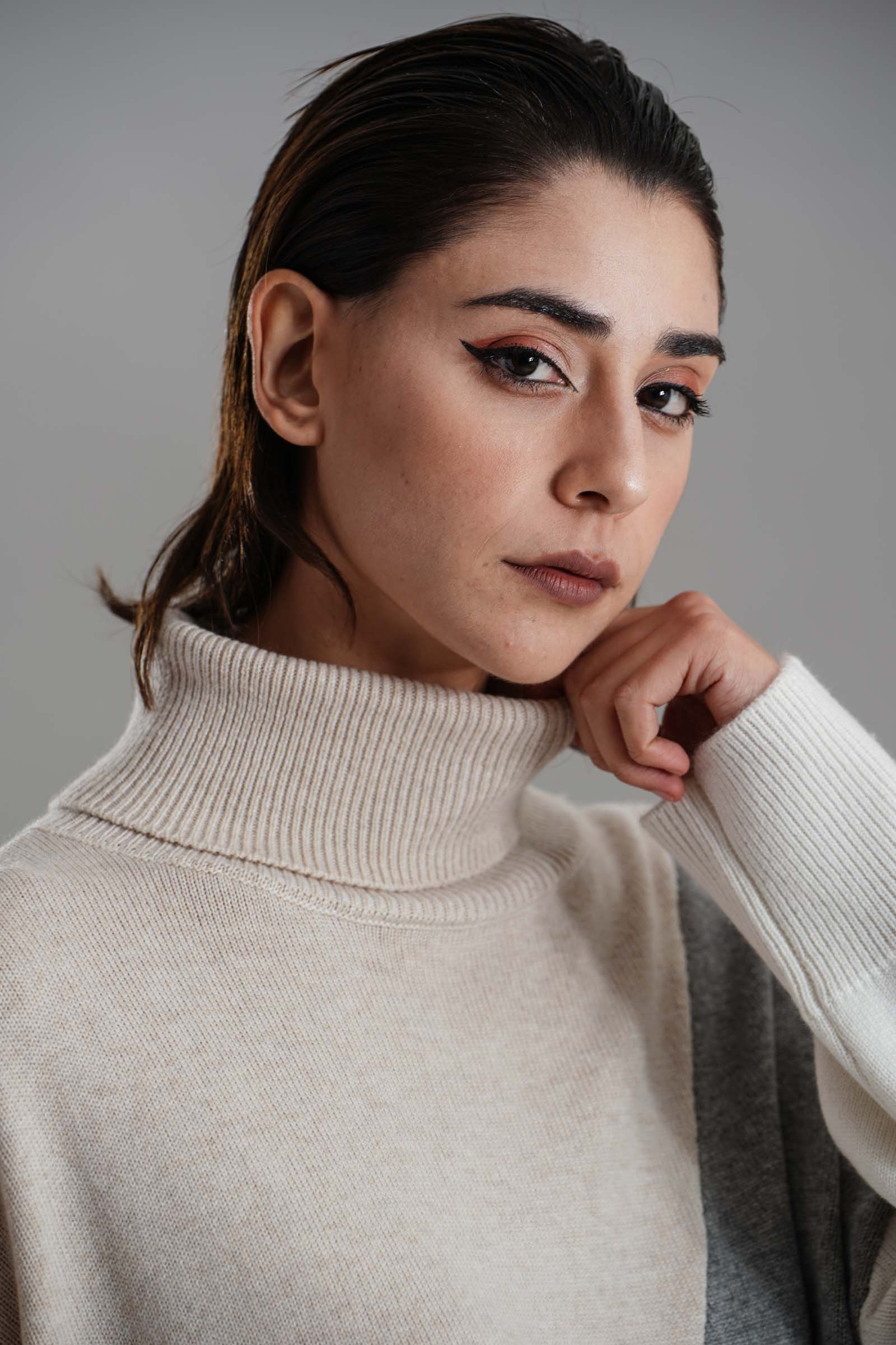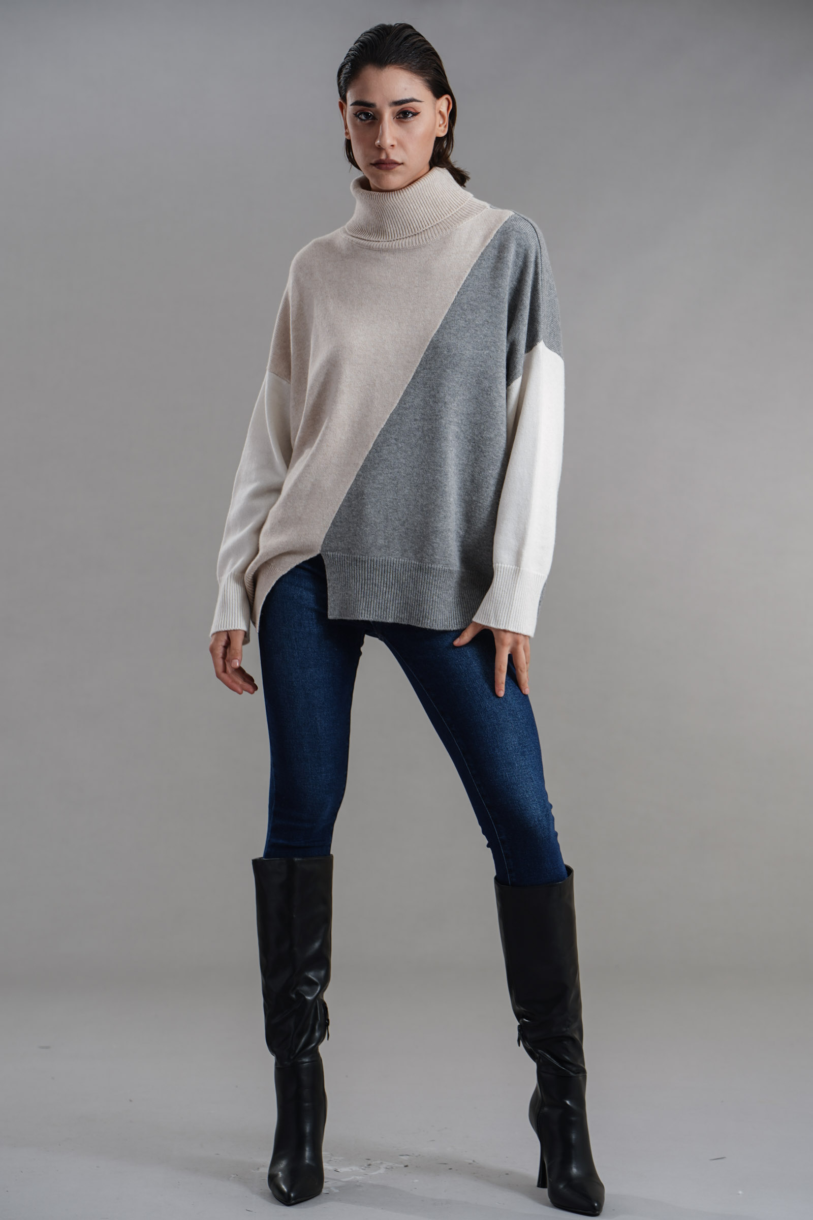 Vestibilita' regolare. Collo alto. Spacchetto alteriore. Altezza modella 1,82. Nella foto indossa la taglia S. Composizione: 27% Lana, 25% Poliammide, 20% Viscosa, 18% Acrilico, 10% Cashmere. Brand: Maida Mila Milano