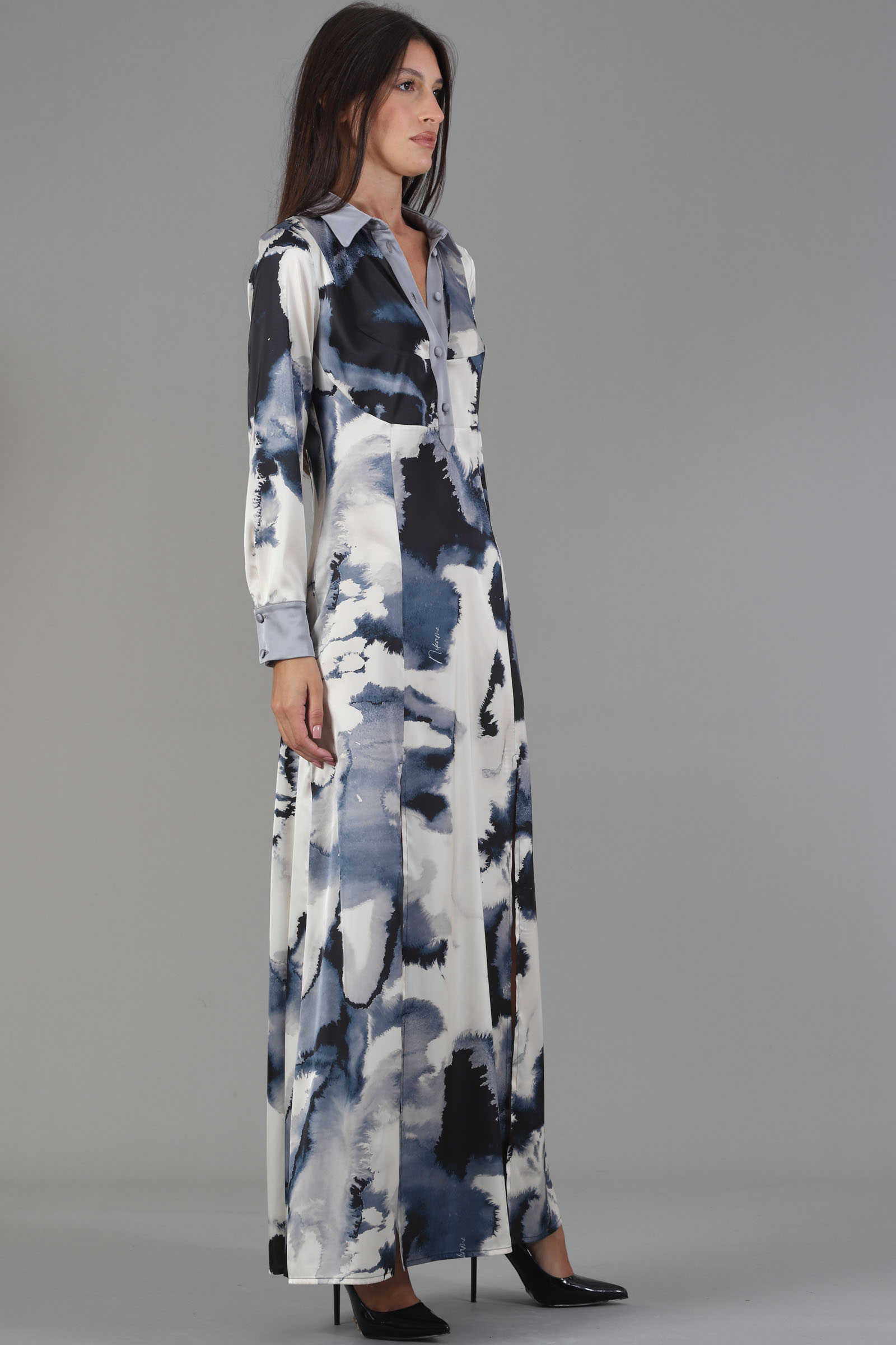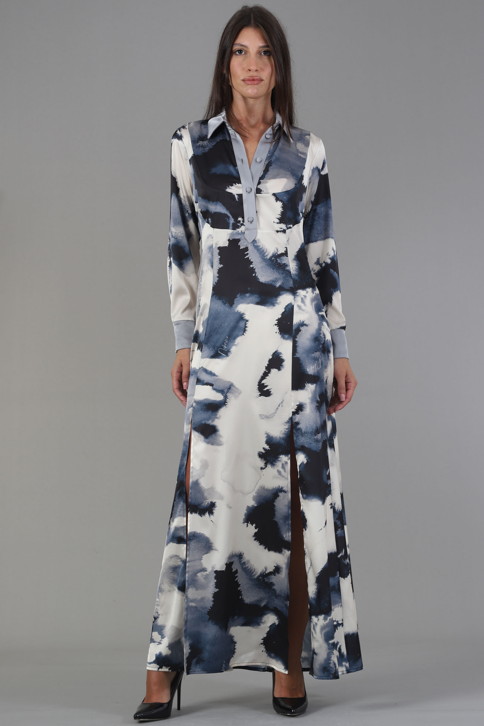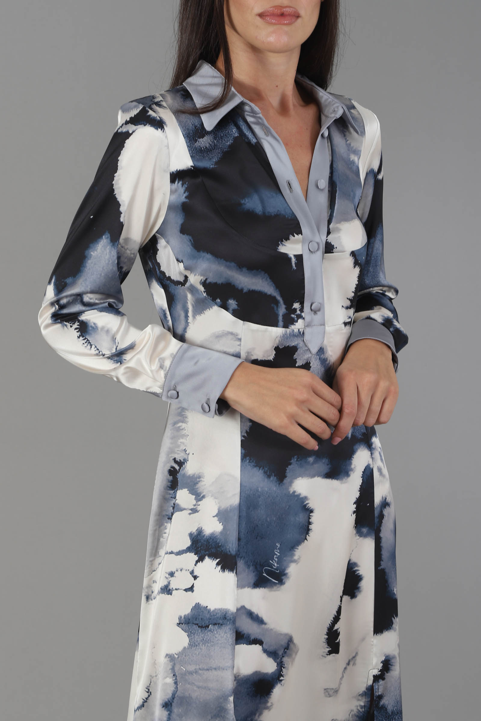 Vestibilita' regolare. Scollo con bottoni foderati. Doppio spacco anteriore. Chiusura con zip invisibile. Altezza modella 1,79. Nella Foto indossa la taglia 40. Composizione: 100% PL. Brend: Nikamo