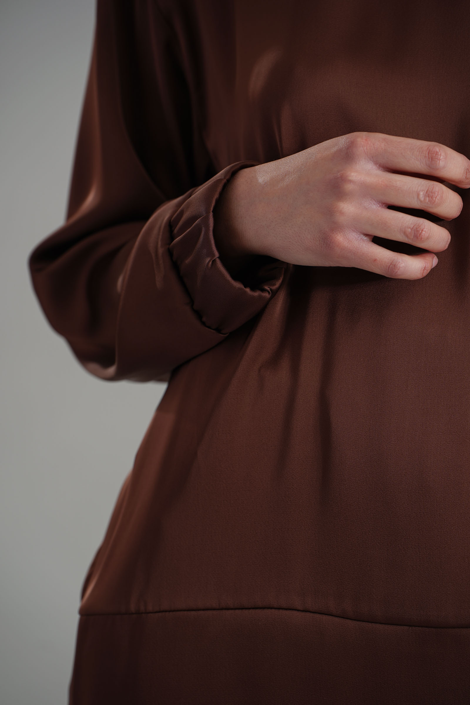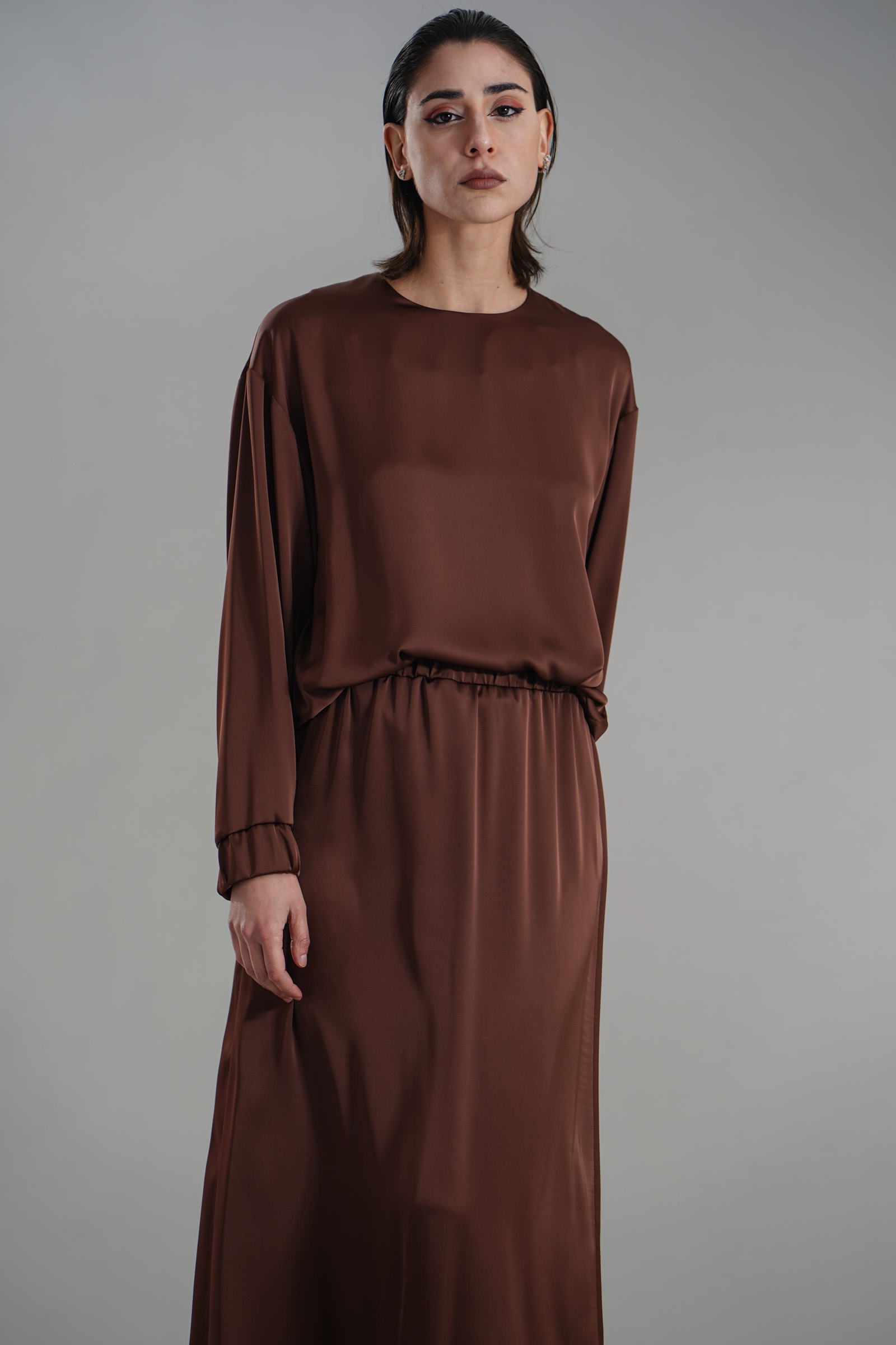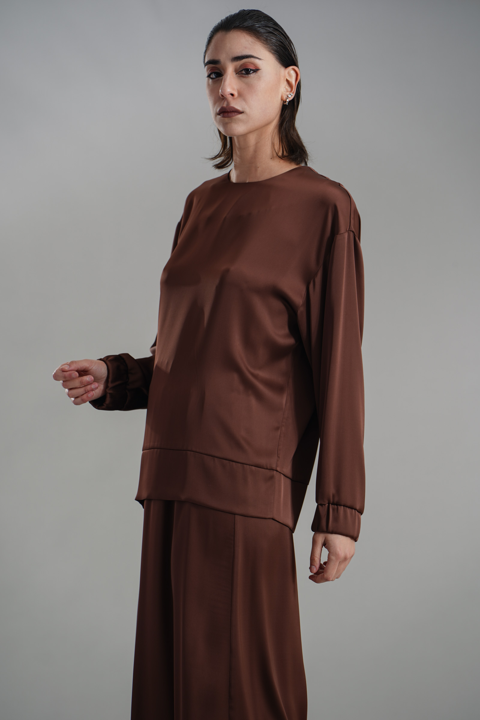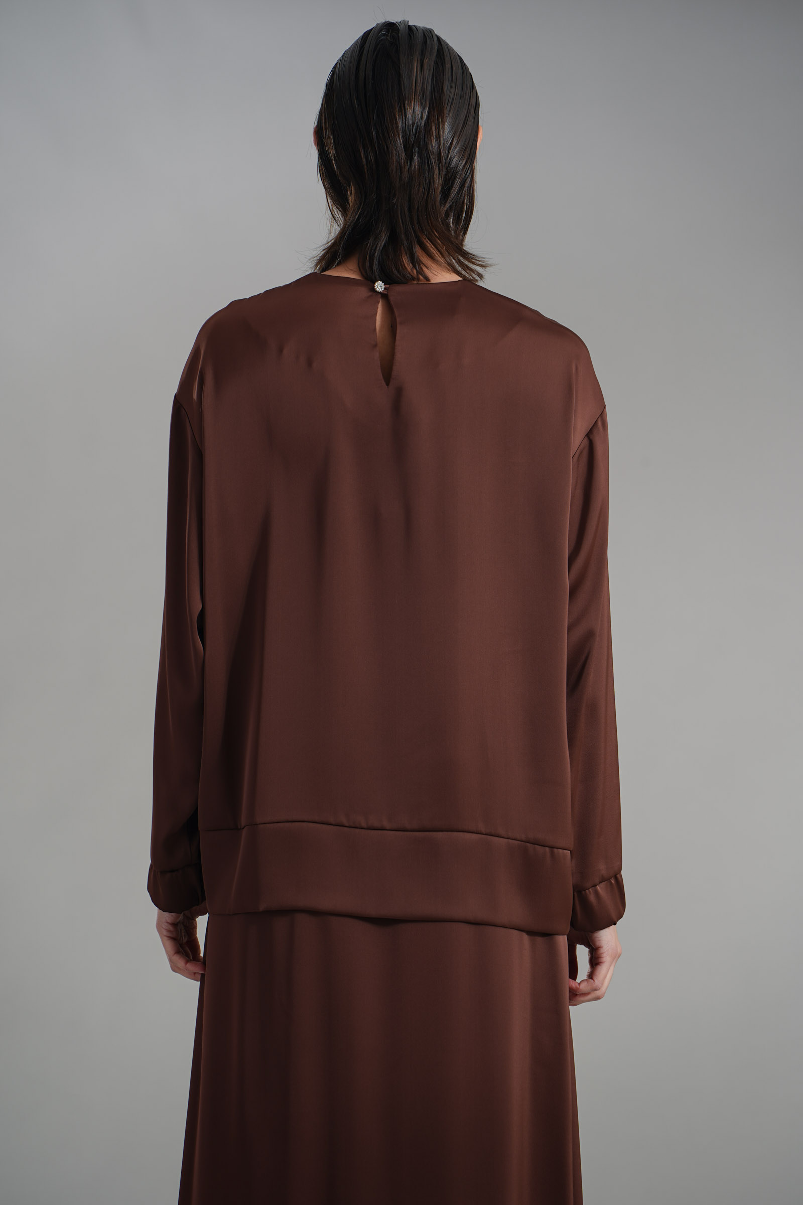 Vestibilita' comoda. Girocollo. Chiusura con un bottoncino gioiello posteriore. Elastico sul polsino. Altezza modella 1,82. Nella foto indossa la taglia 42. Composizione: 75% PL, 25% Viscosa. Brand: Nikamo