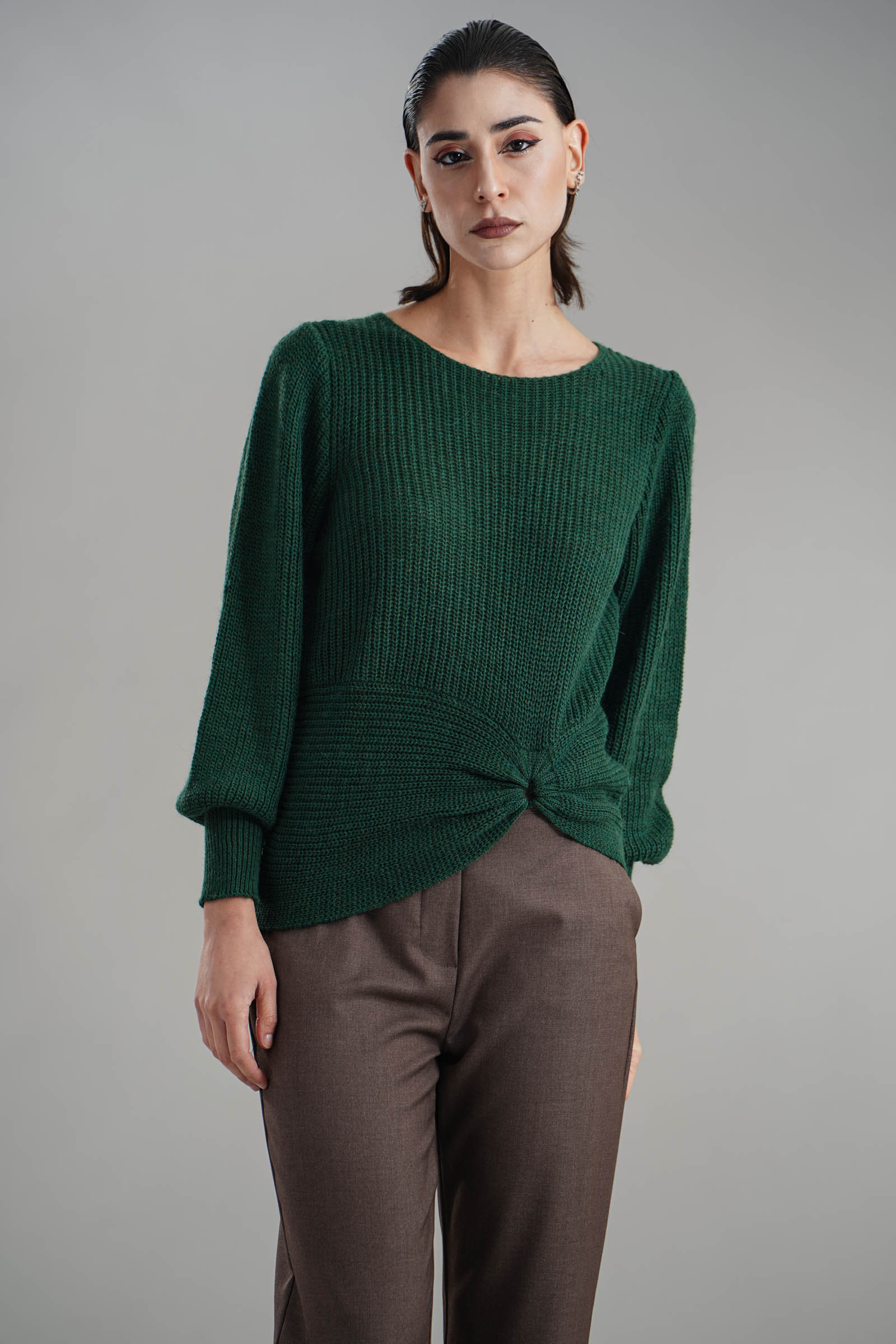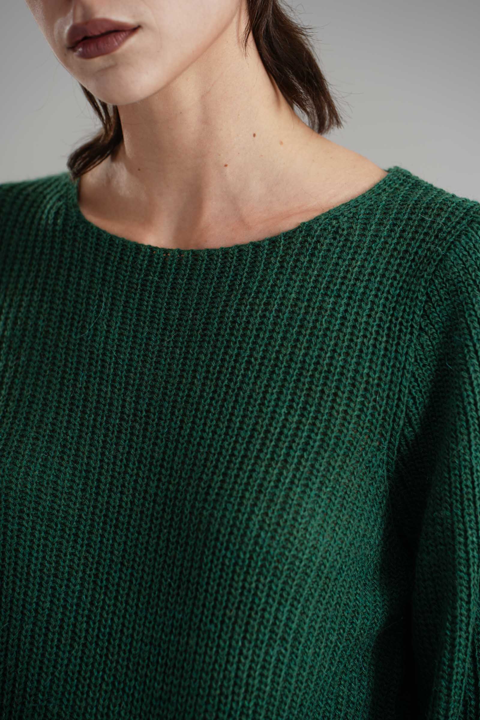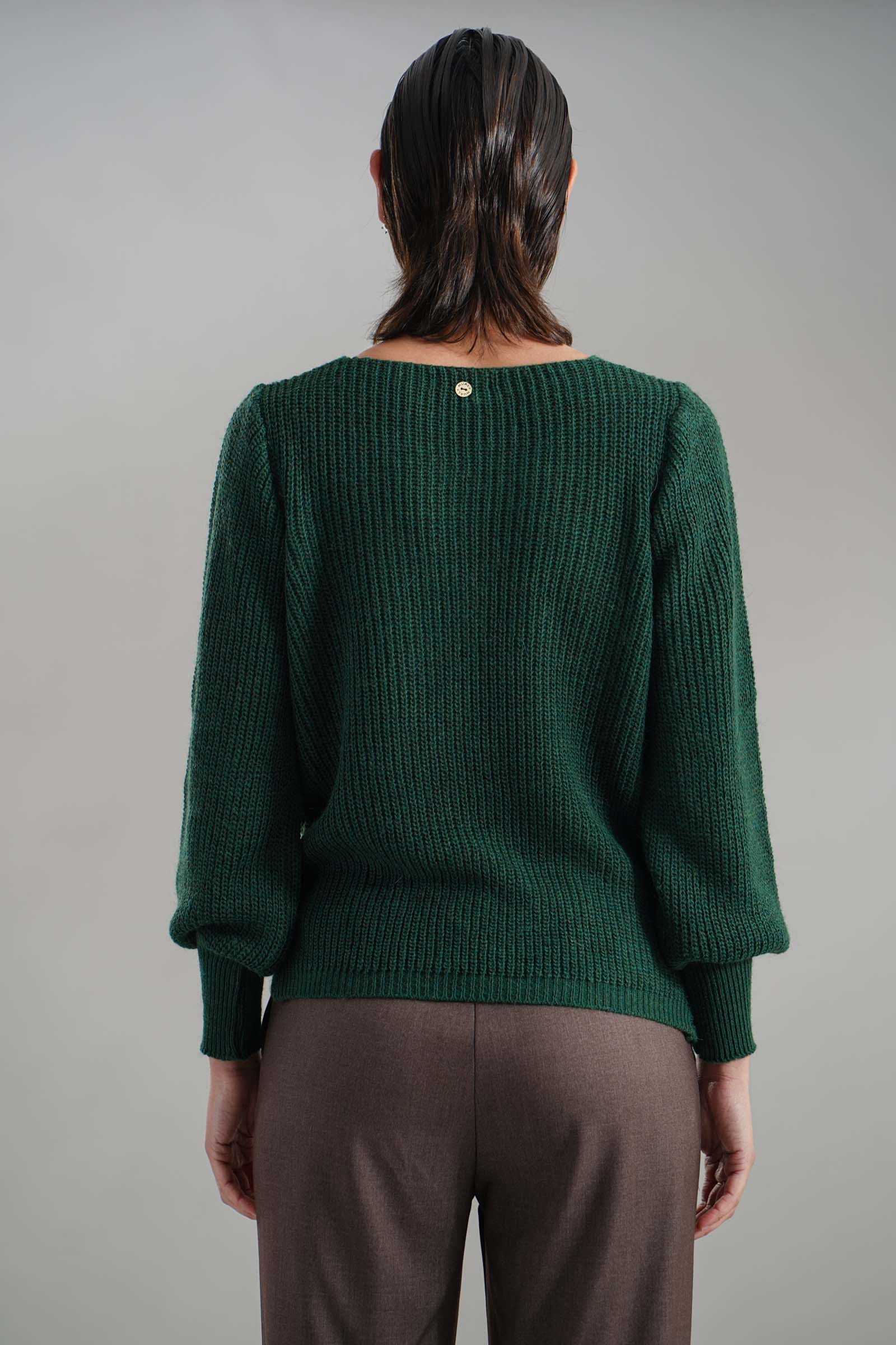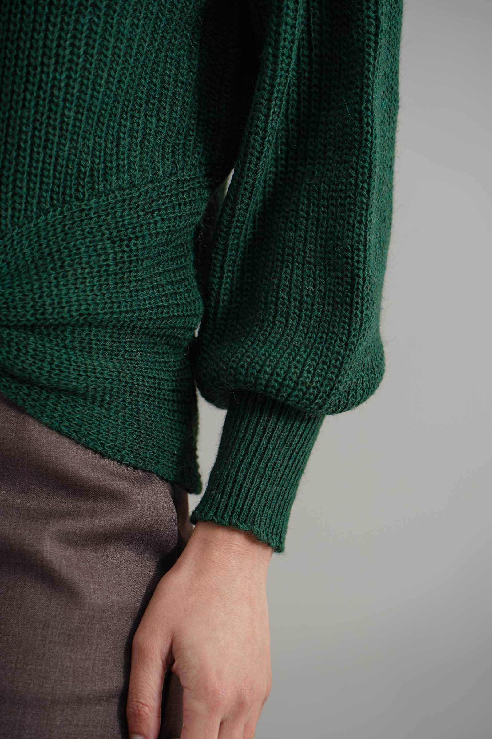 Vestibilita' regolare. Girocollo. Manica a sbuffo. Dettaglio di drappeggio anteriore. Altezza modella 1,82. Nella foto indossa la taglia XS/S. Composizione: 75% Acrilico, 10% Viscosa, 10% Lana, 5% Alpaca. Brand: Nualy