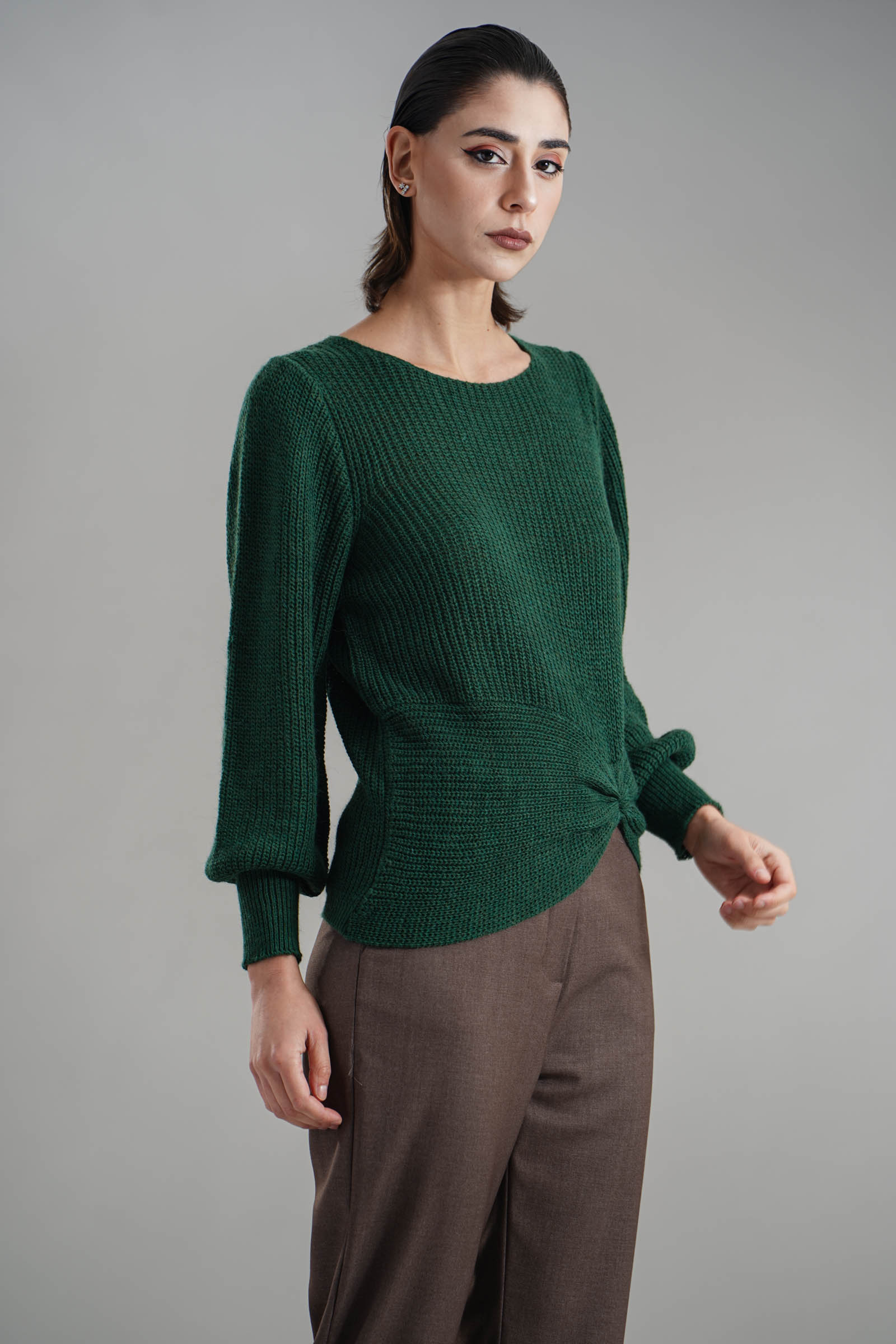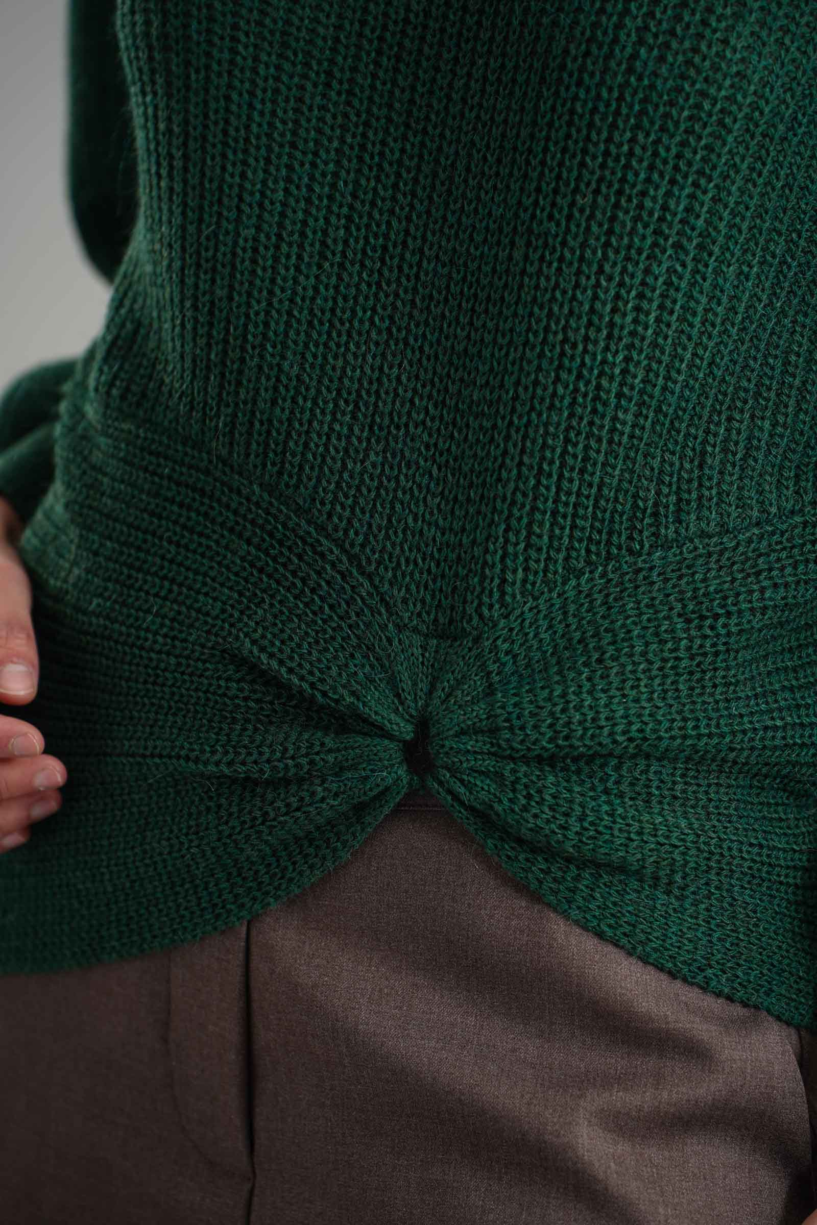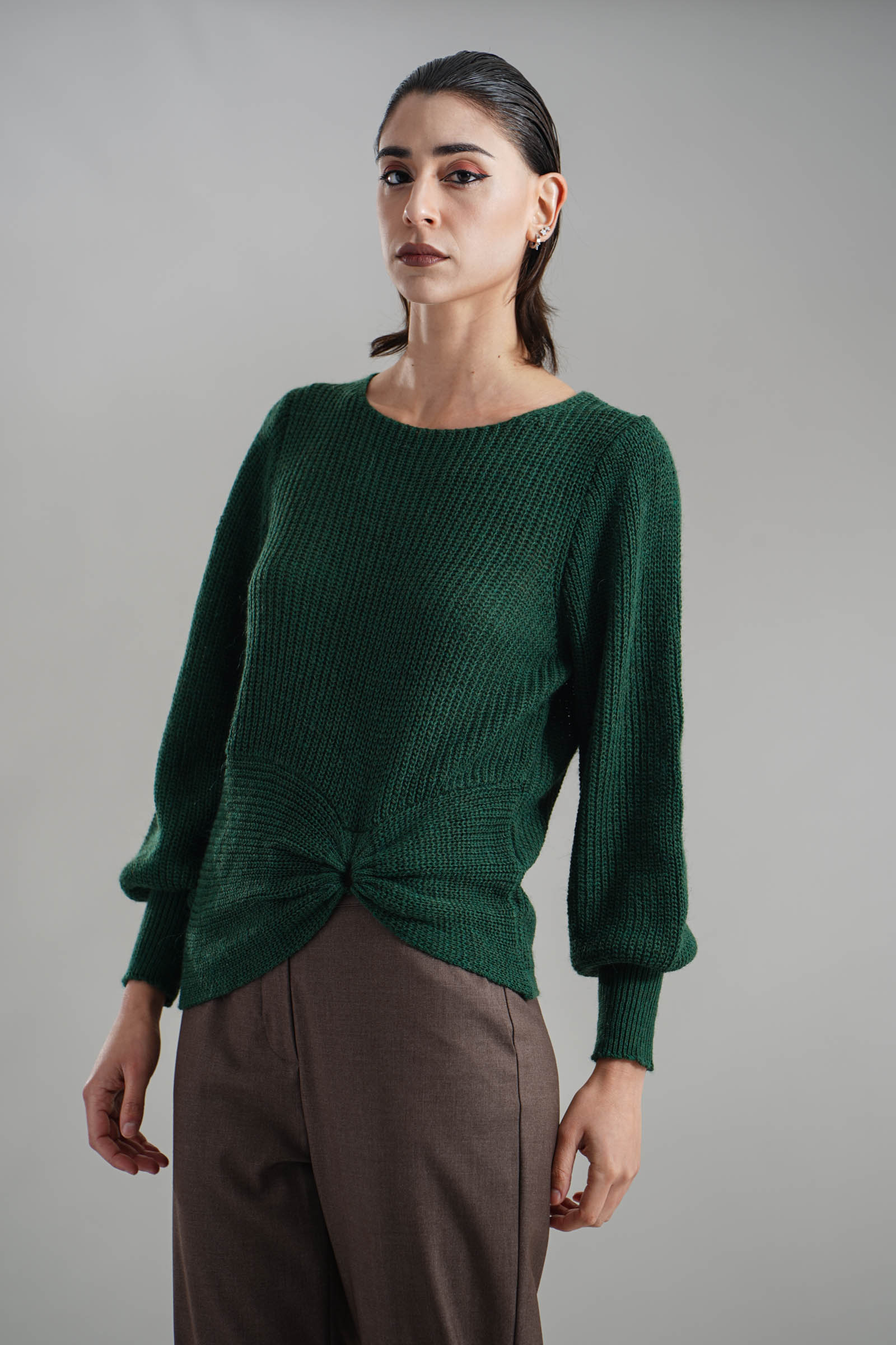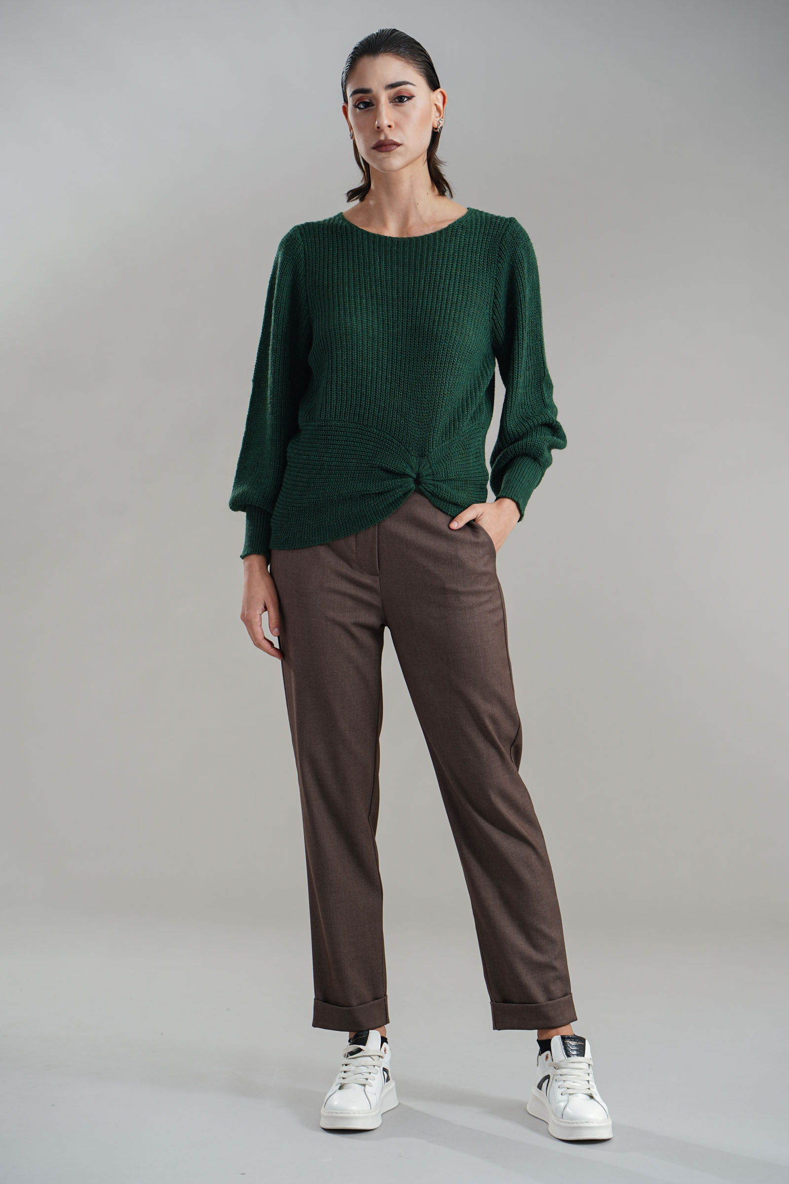 Vestibilita' regolare. Girocollo. Manica a sbuffo. Dettaglio di drappeggio anteriore. Altezza modella 1,82. Nella foto indossa la taglia XS/S. Composizione: 75% Acrilico, 10% Viscosa, 10% Lana, 5% Alpaca. Brand: Nualy