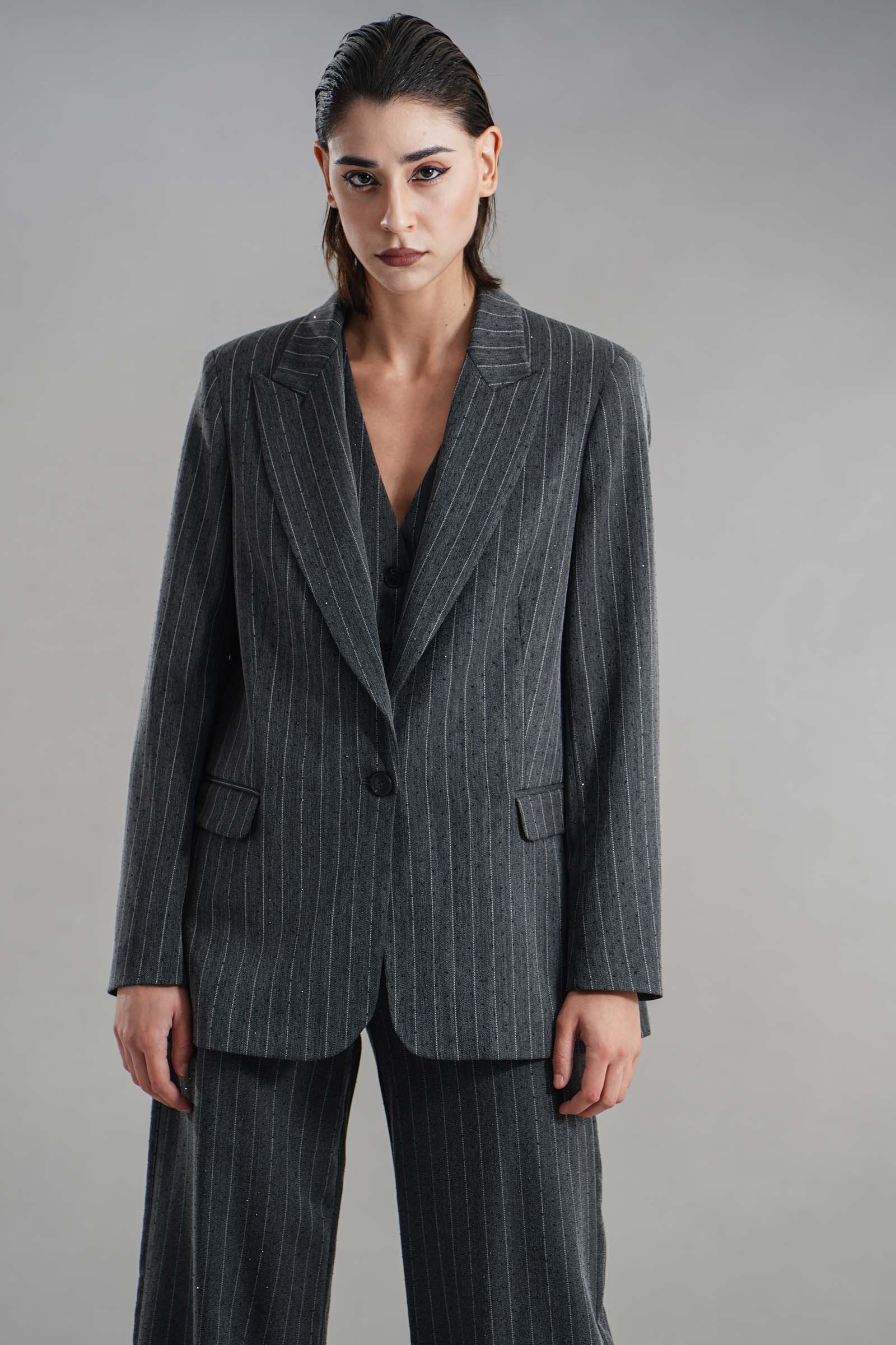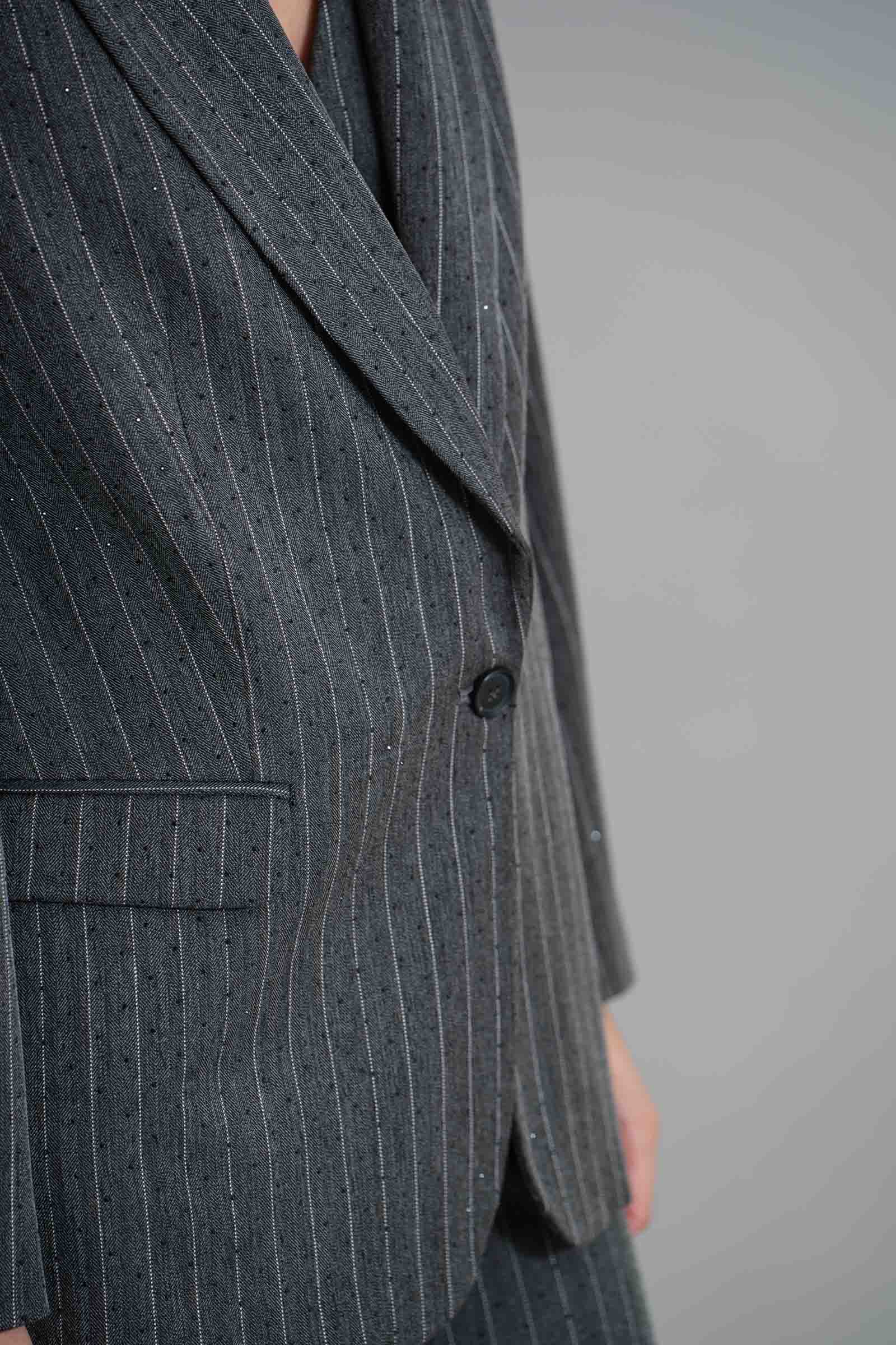 Vestibilita' regolare. Chiusura con bottone. Dettagli di microstrass applicati. Altezza modella 1,79. Nella foto indossa la taglia 40. Composizione: 87% Poliestere, 10% Viscosa, 3% Elastane. Brand: Relish