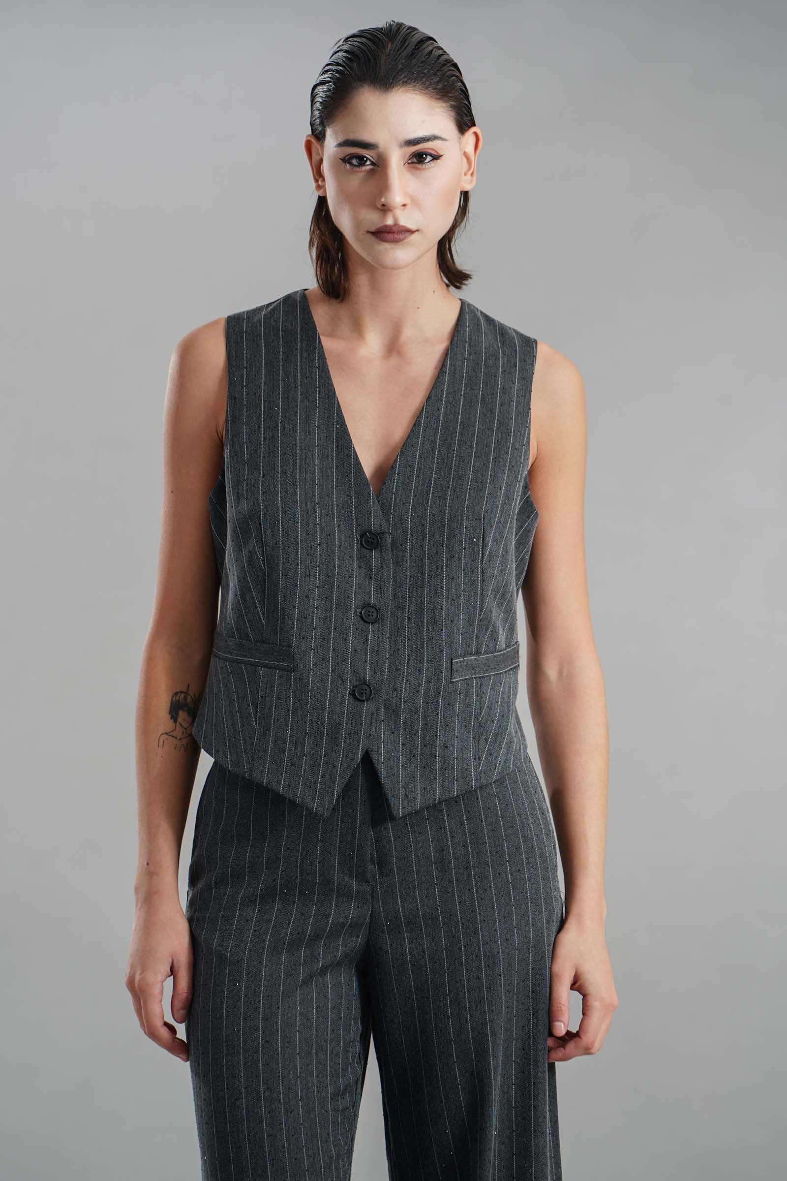 Vestibilita' regolare. Chiusura con bottoni. Dettaglio di microstrass applicati. Altezza modella 1,79. Nella foto indossa la taglia 40. Composizione: 87% Poliestere, 10% Viscosa, 3% Elastane. Brand: Relish