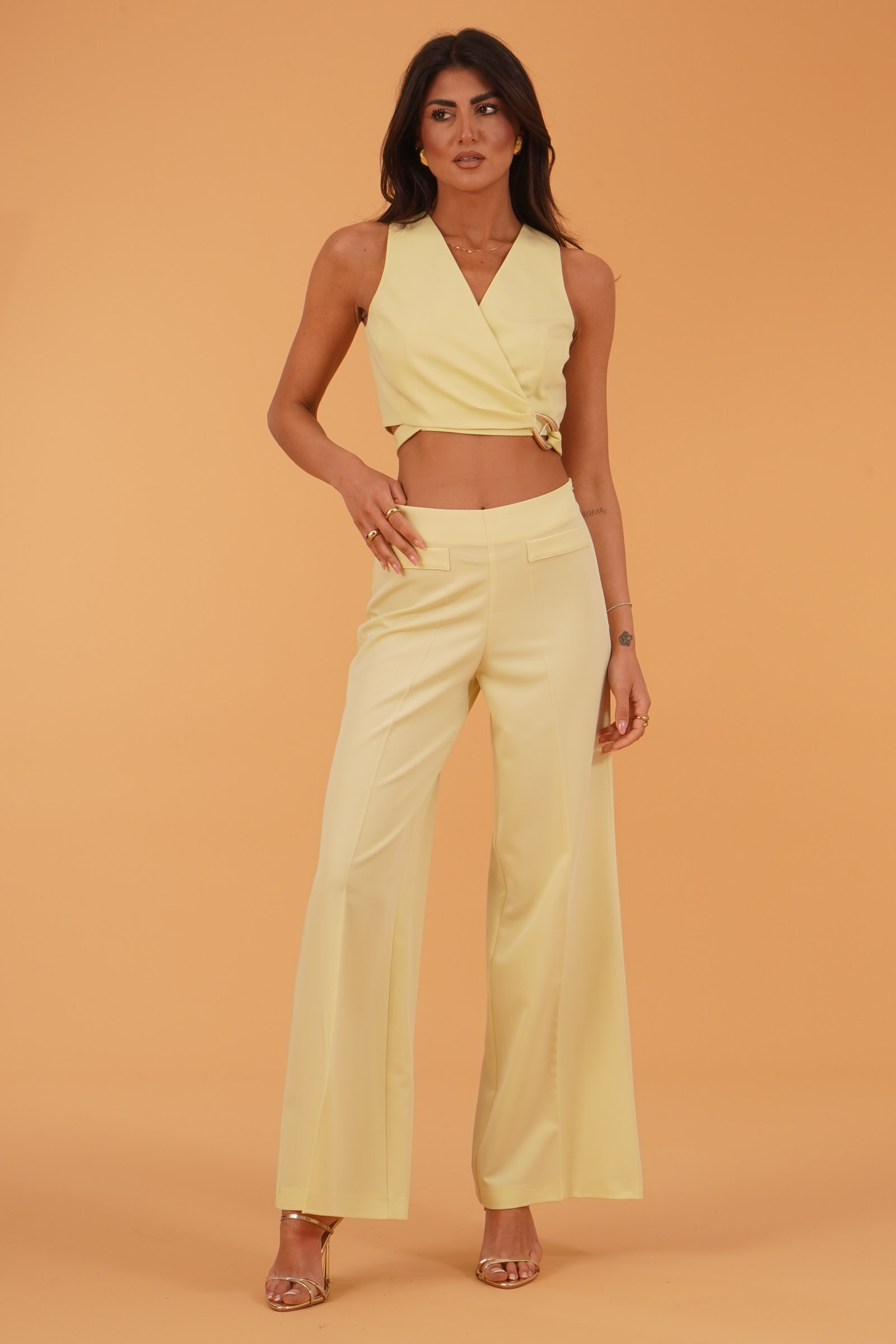 Vestibilita' regolare. Chiusura ad incrocio con dettaglio di fibbietta in metallo color oro. Altezza modella 1,80.Indossa la taglia 40. Composizione: 72% Poliestere, 23% Viscosa, 5% Elastane. Brand Simona Corsellini
