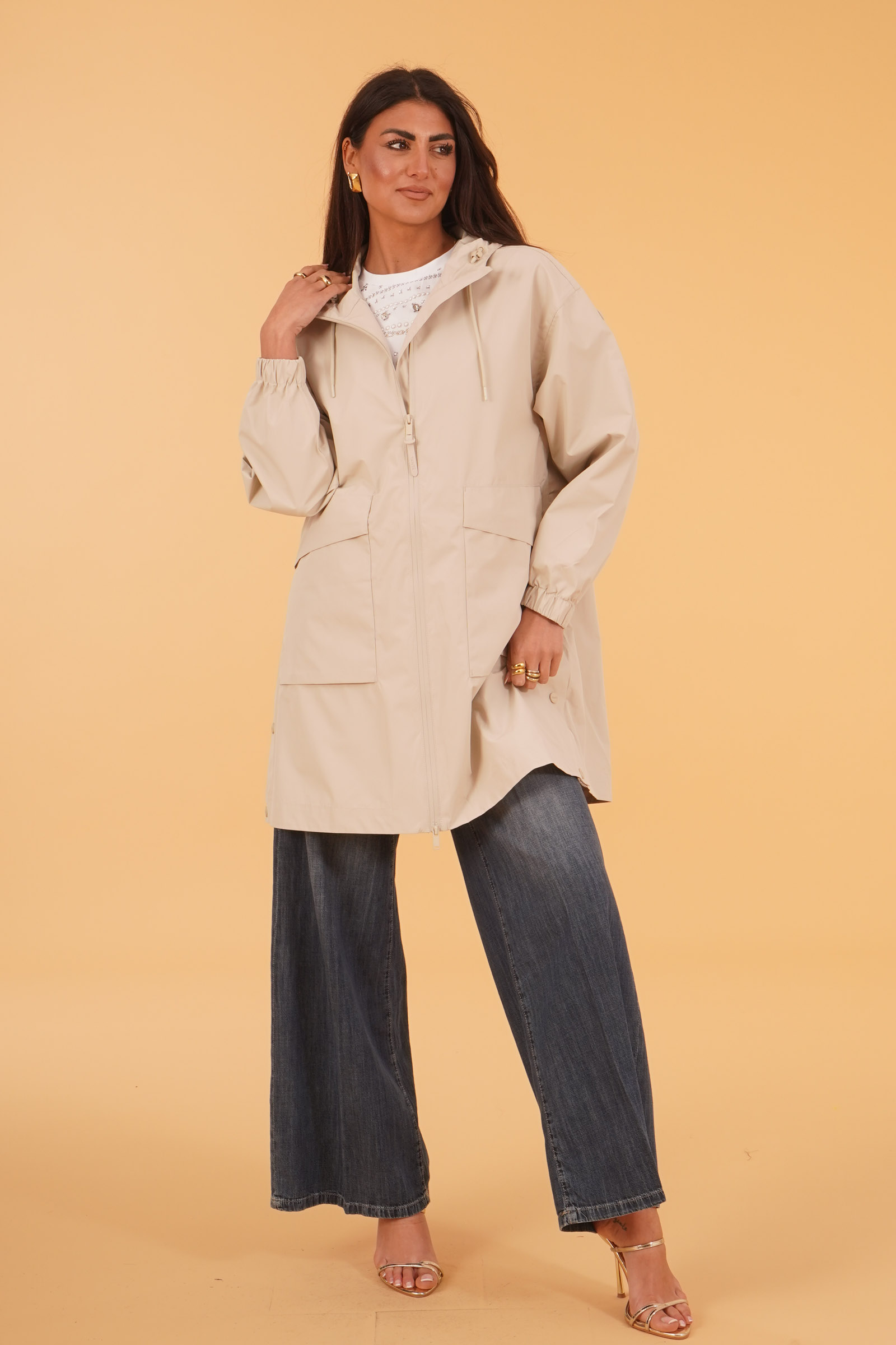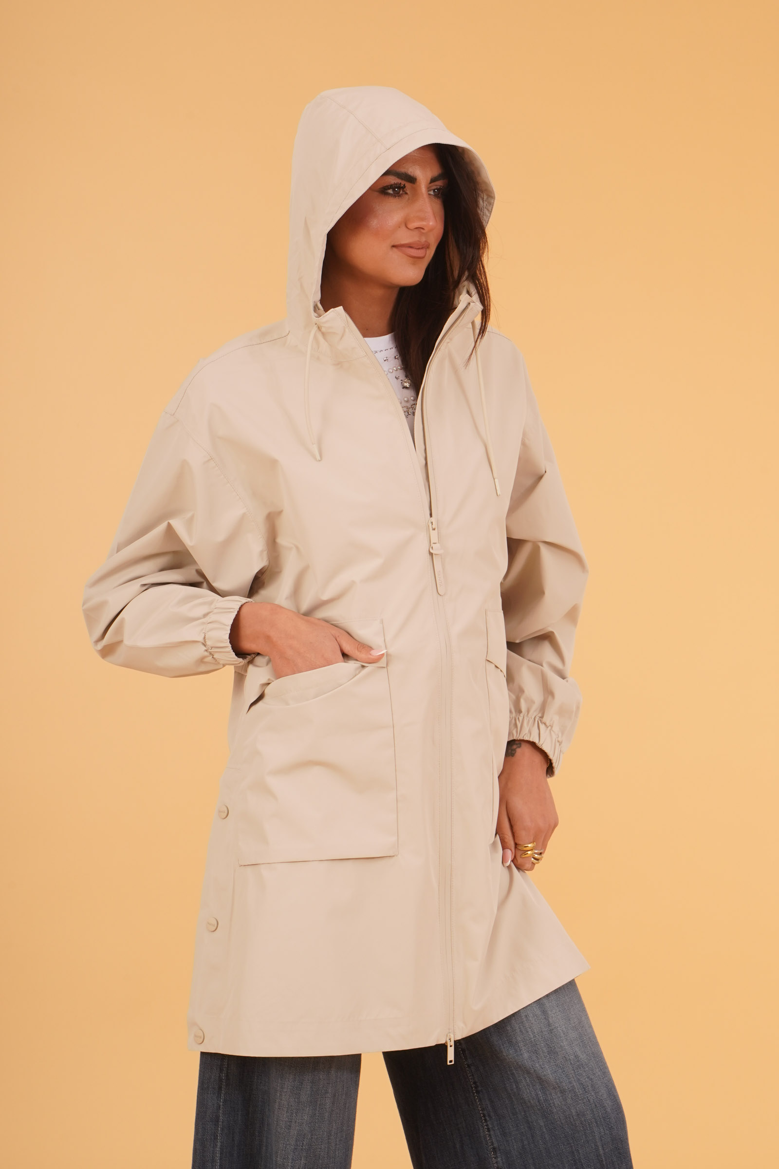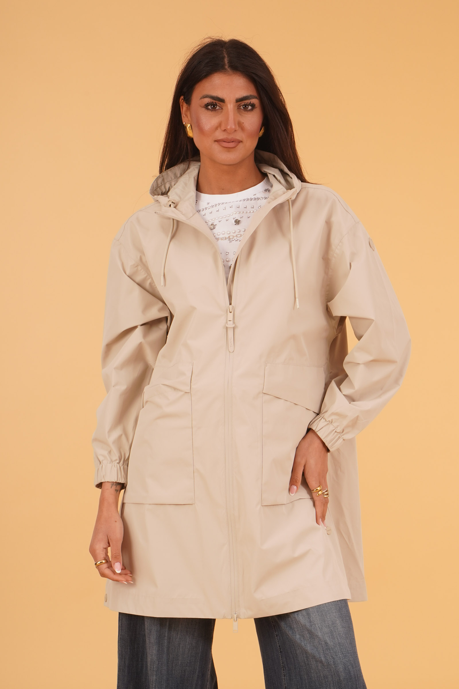 Vestibilita' regolare. Chiusura con zip a doppio cursore. Tessuto impermeabile. Tasche con pattina. Apertura laterale con bottoni. Cappuccio non removibile. Altezza modella 1,80. Indossa taglia 40. Composizione: 100% Poliestere. Brand: Tanta