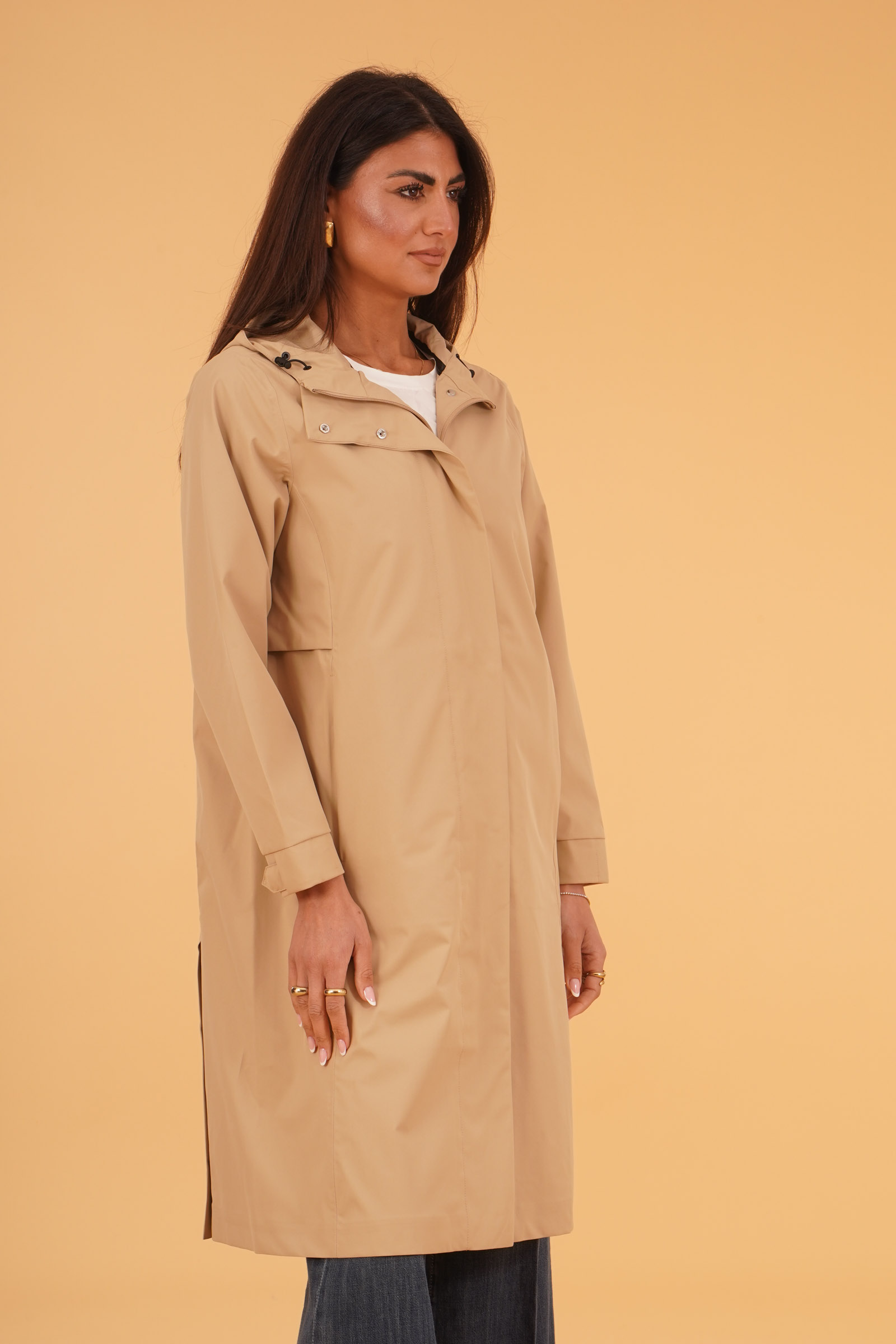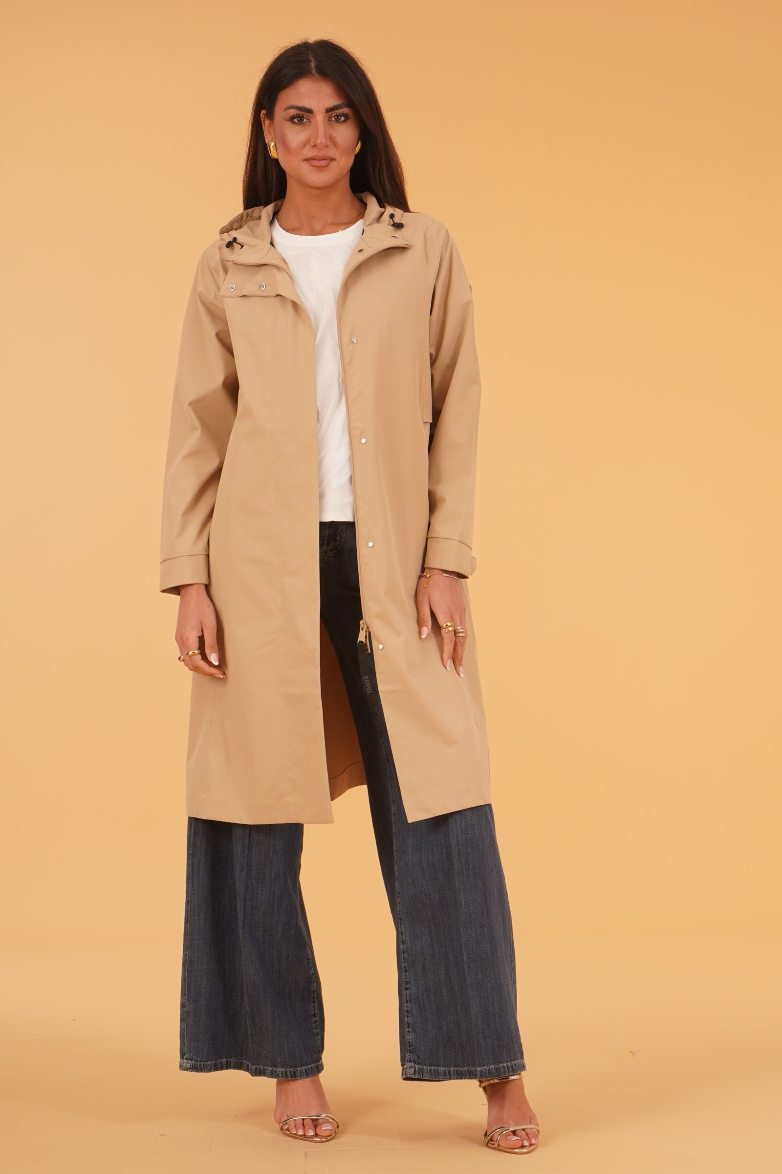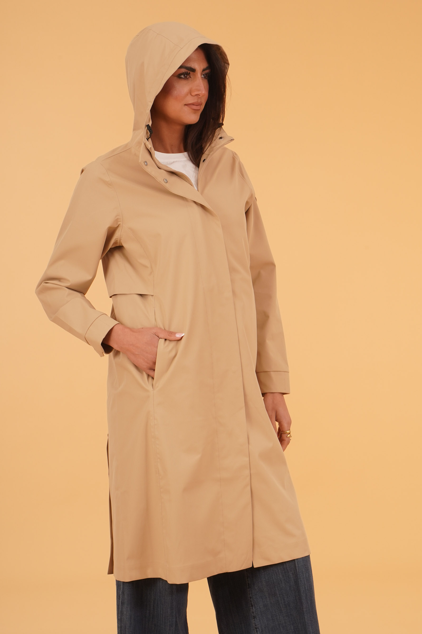 Vestibilita' regolare. Chiusura con zip a doppio cursore piu' bottoni. Tessuto impermeabile. Tasche a filo con zip. Cappuccio non removibile. Altezza modella 1,80. Indossa taglia 40. Composizione: 100% Poliestere. Brand: Tanta