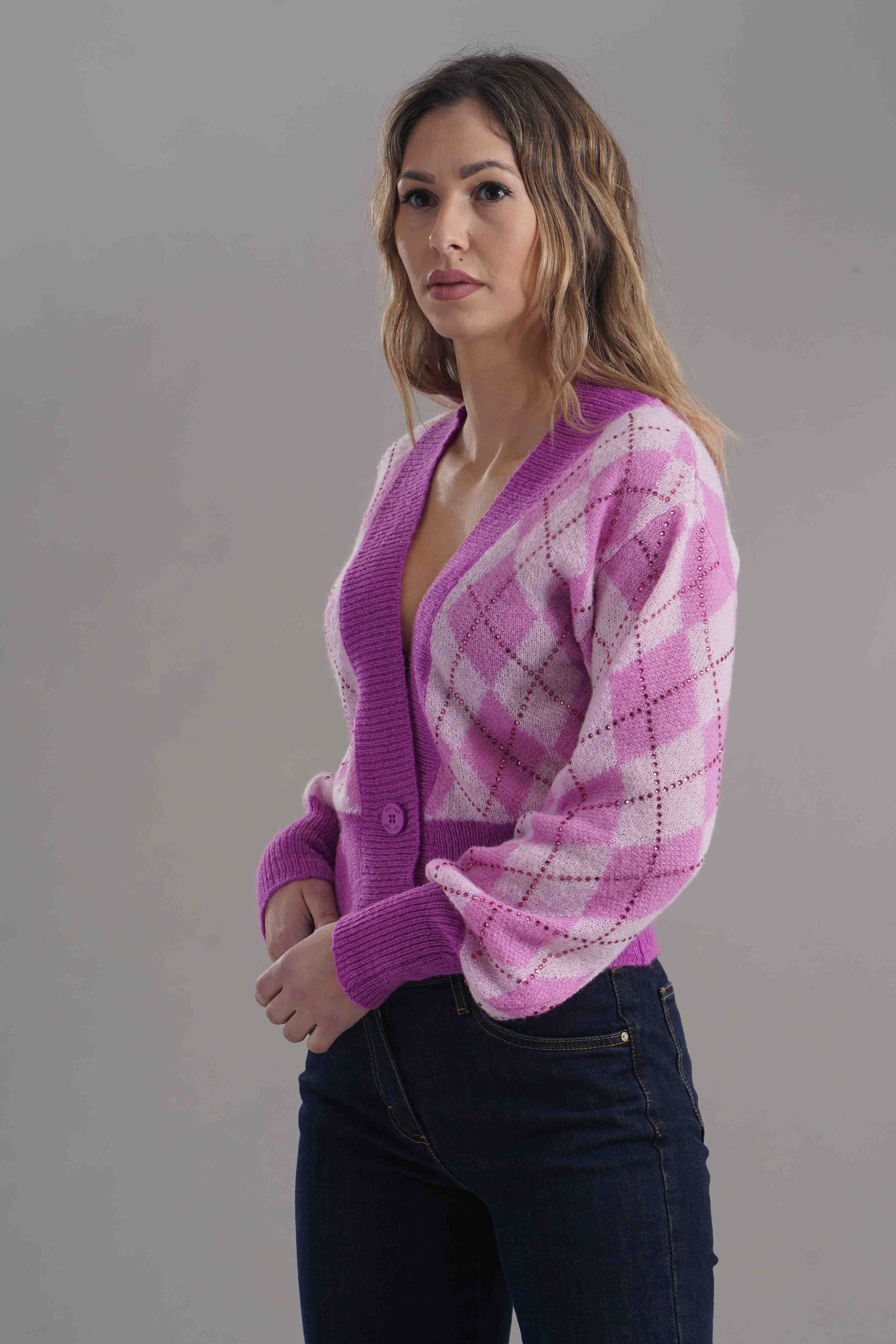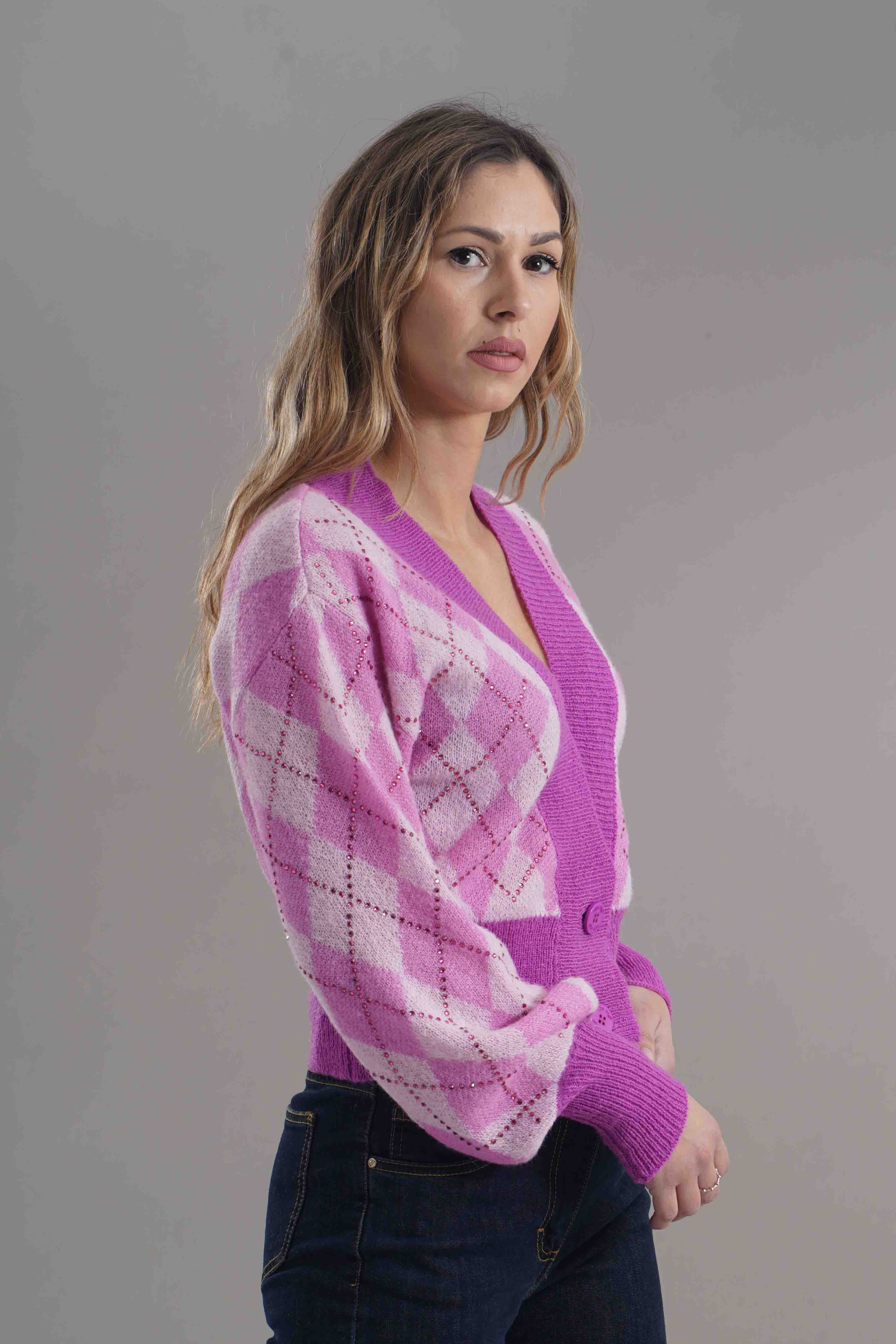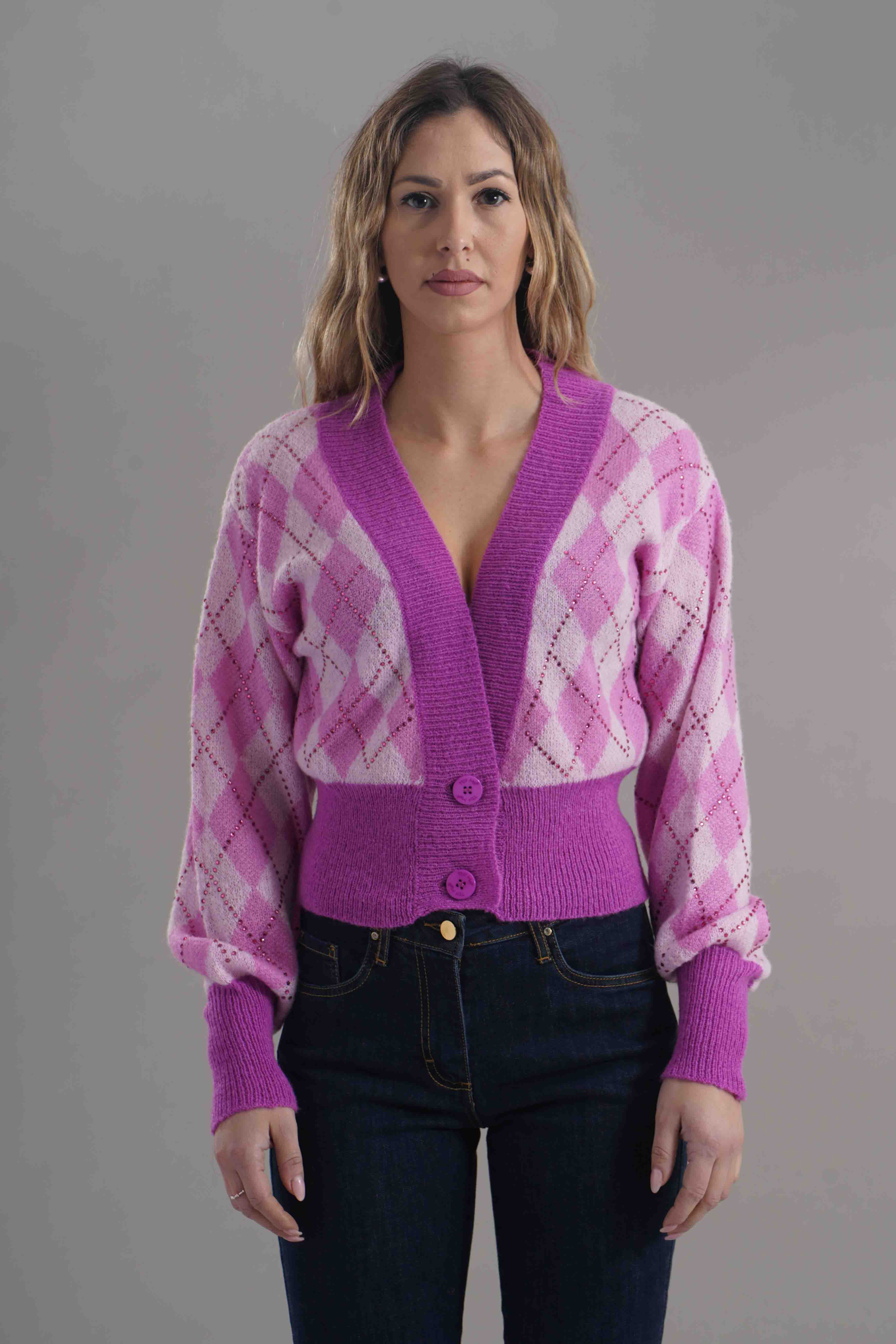 Vestibilita' regolare. Chiusura con bottoni logati. Manica a sbuffo. Dettaglio di strass applicati. Altezza modella 1,75. Nella foto indossa la taglia S. Composizione: 45% Nylon, 40% Acrilico, 10% Wool, 5% Mohair. Brand: Try Me
