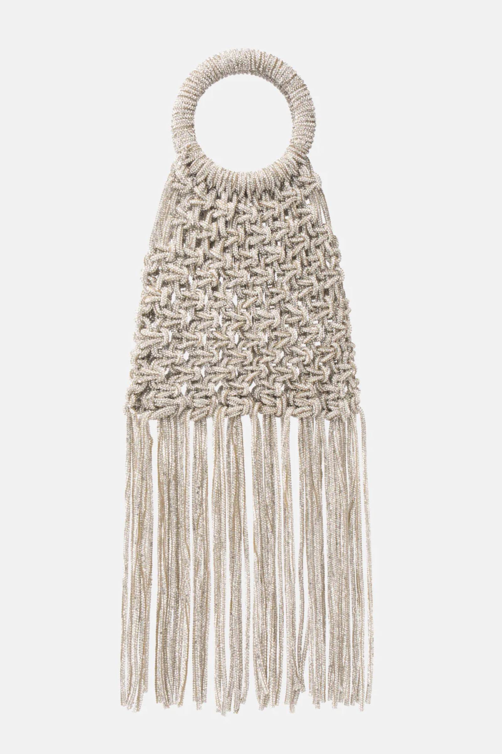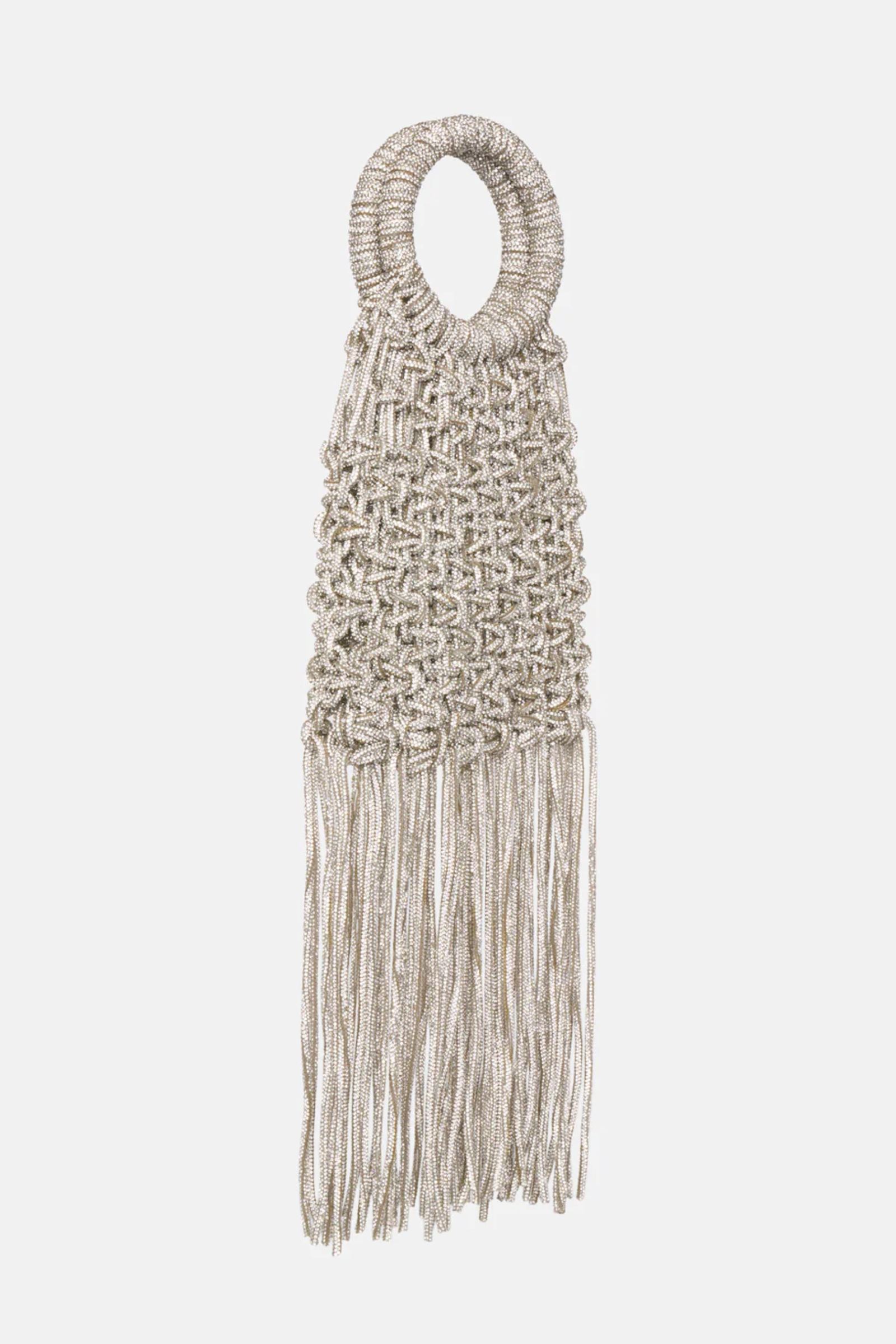 Pochette con nodi tempestati di strass e trim finali pendenti. Misure: L 18,5cm, P 4cm, L 18,5cm. Brand: Twenty Fourhaitch