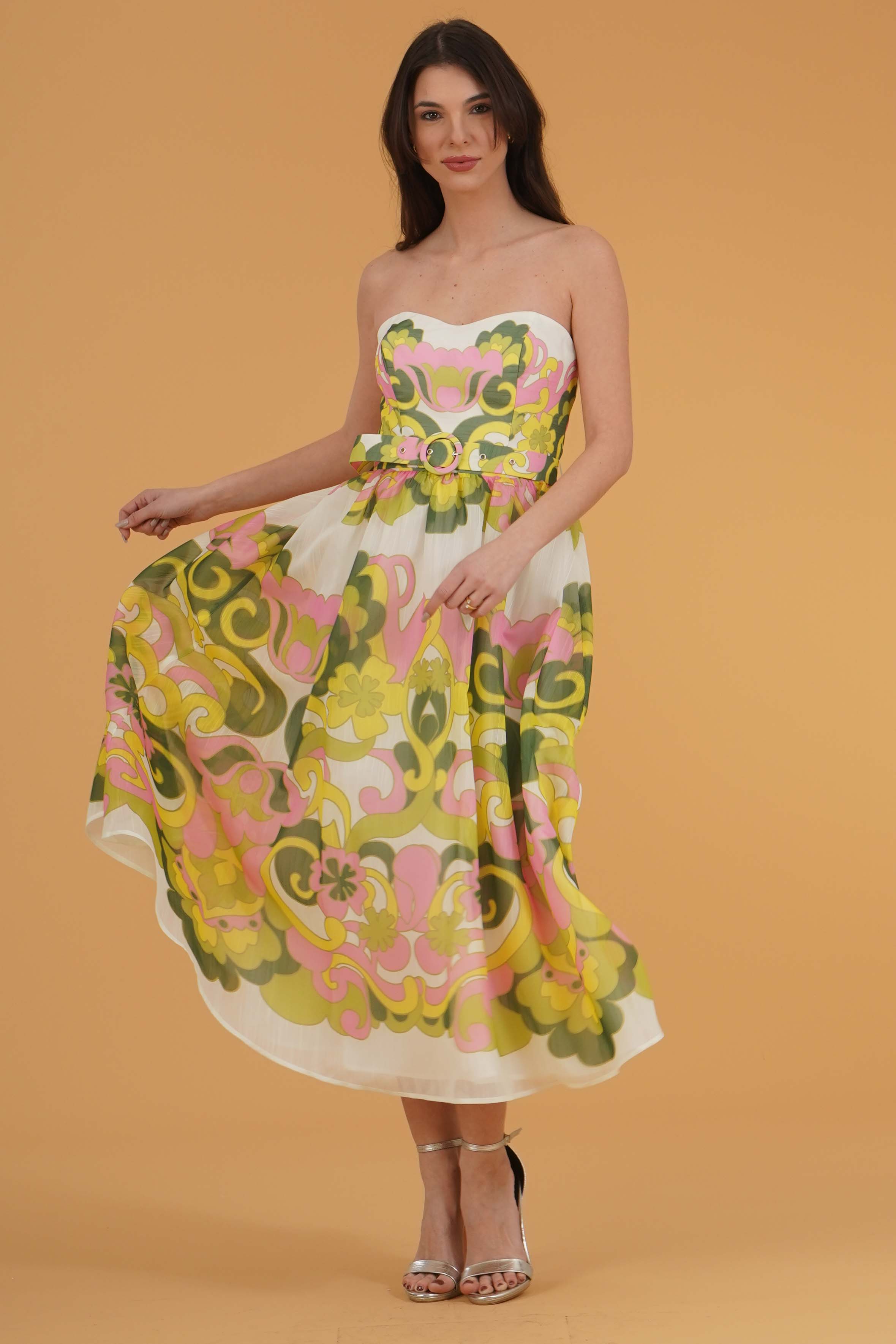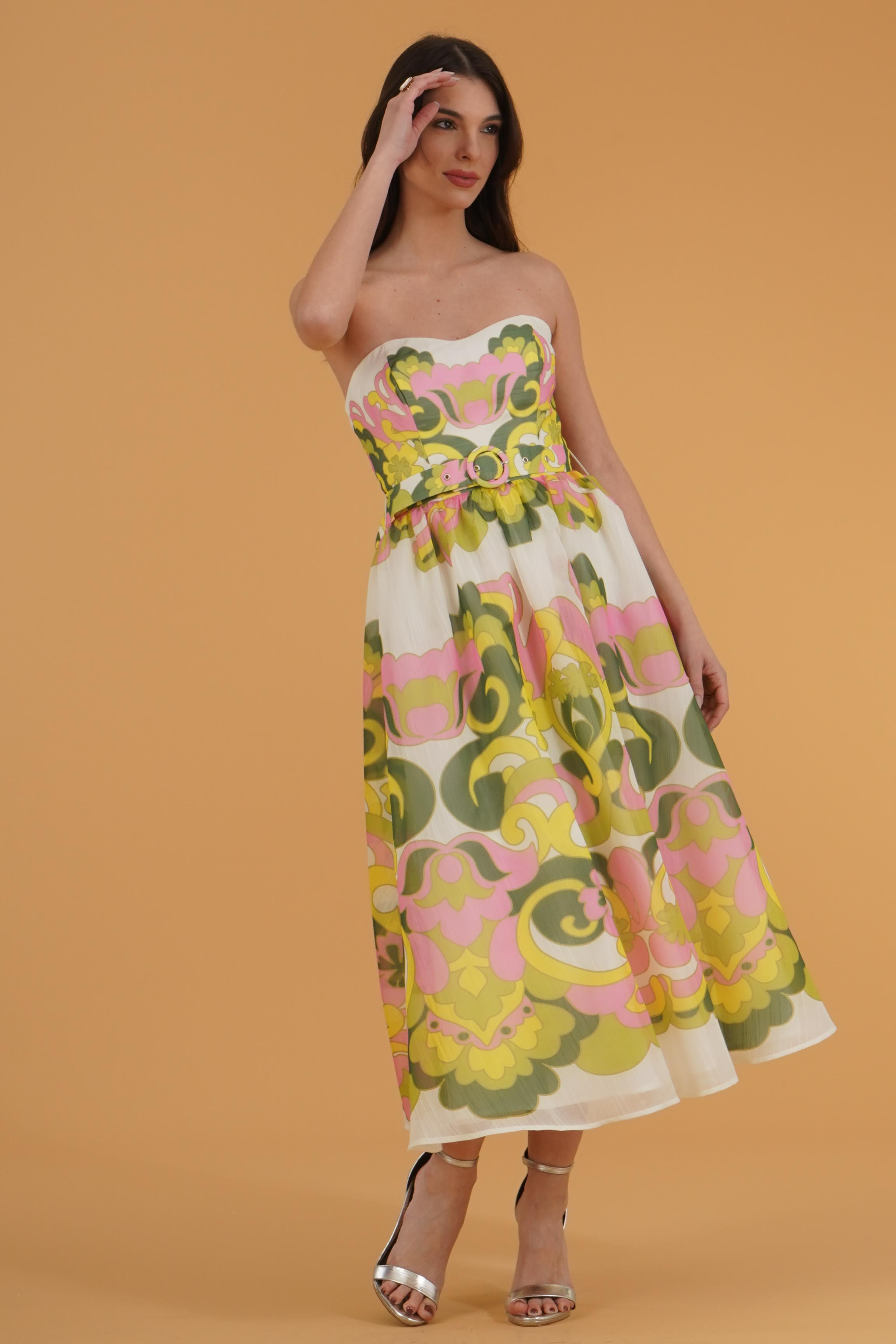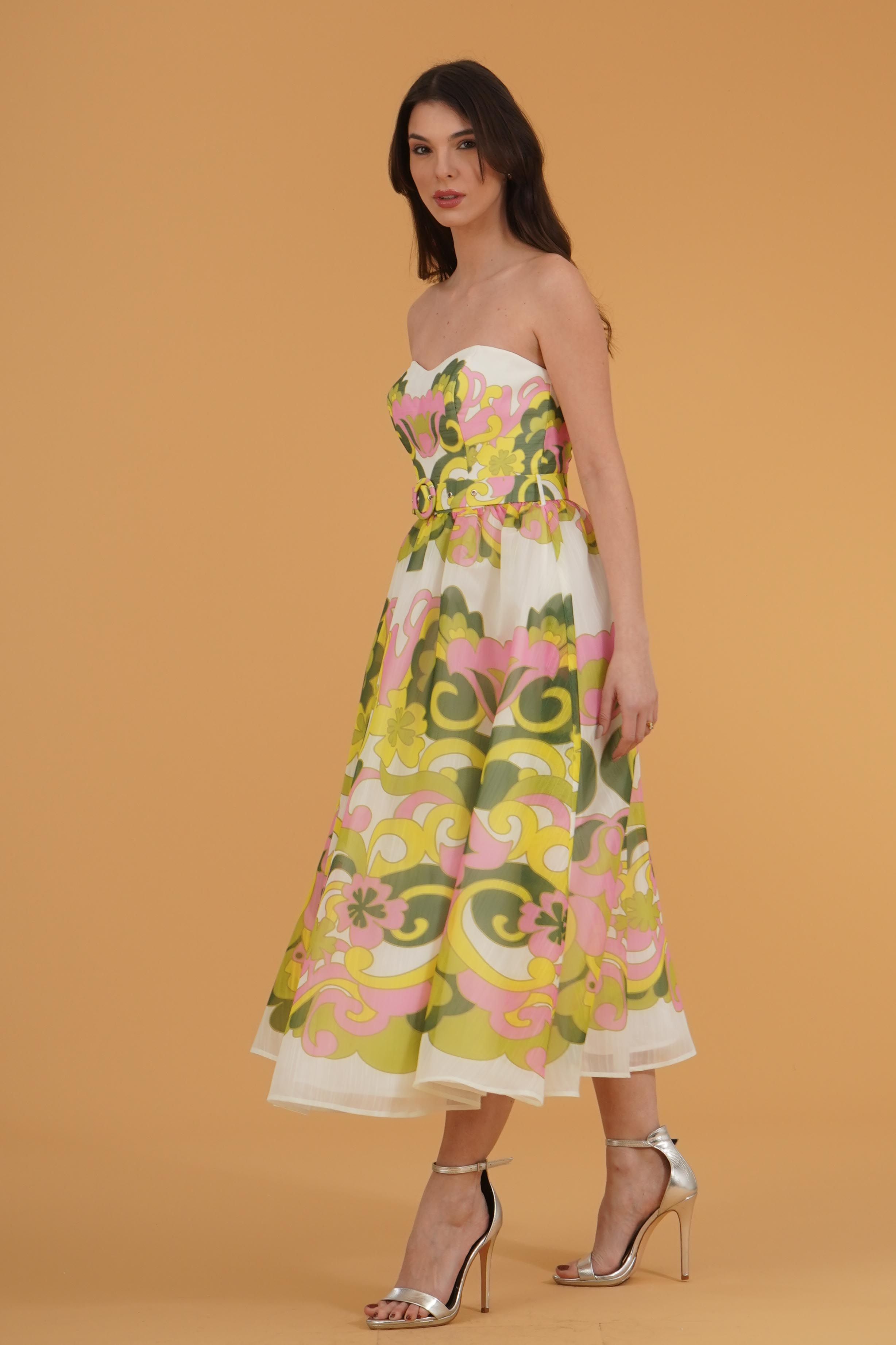 Vestibilita' regolare. Corpetto con coppe. Gonna vita alta ampia. Cintura removibile. Chiusura con zip posteriore. Altezza modella 1,78. Nella foto ndossa la taglia 40. Composizione: 100% Poliestere. Brand: Twins Fantasy