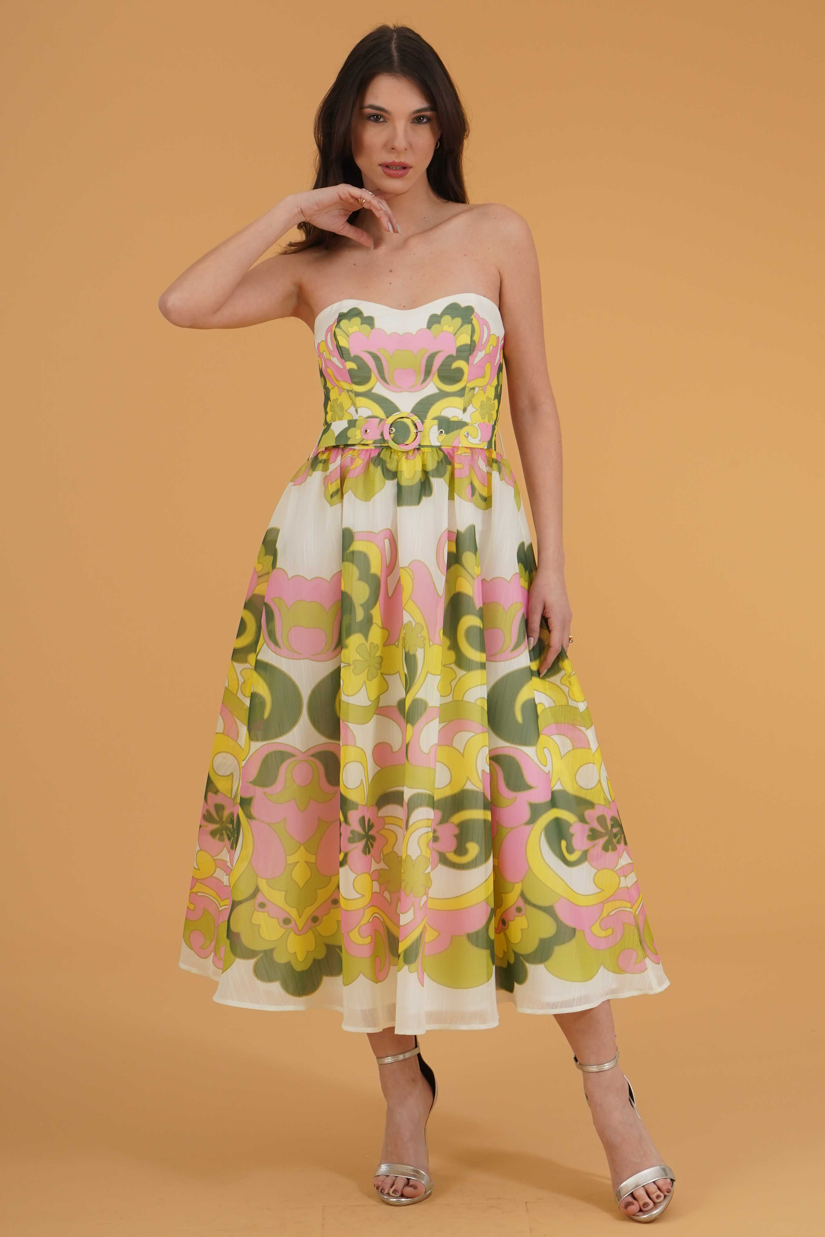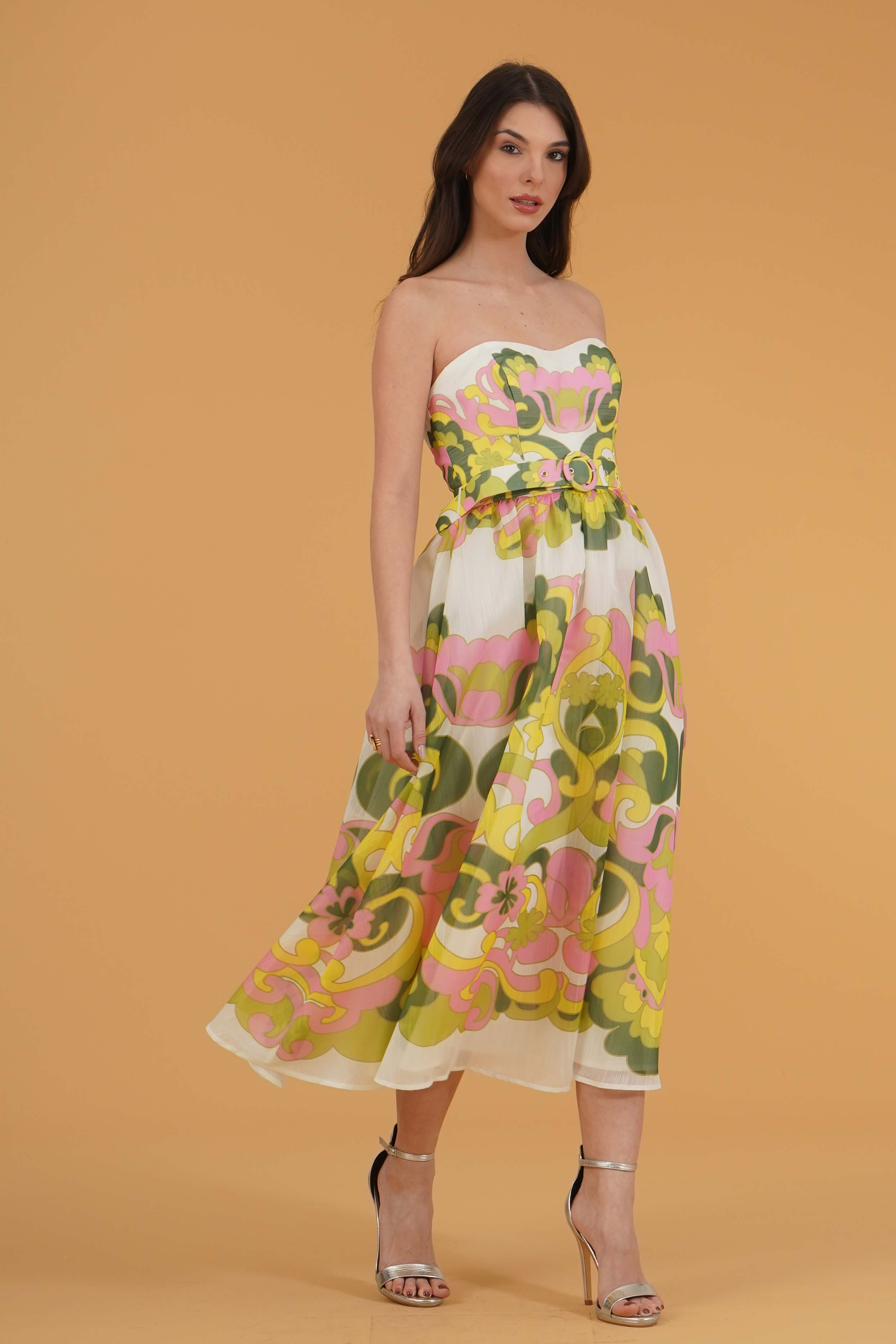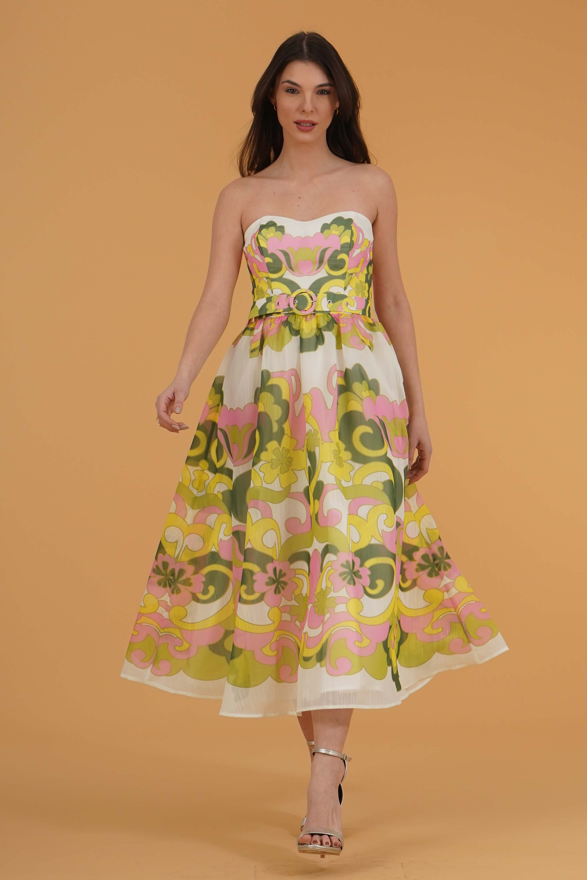 Vestibilita' regolare. Corpetto con coppe. Gonna vita alta ampia. Cintura removibile. Chiusura con zip posteriore. Altezza modella 1,78. Nella foto ndossa la taglia 40. Composizione: 100% Poliestere. Brand: Twins Fantasy