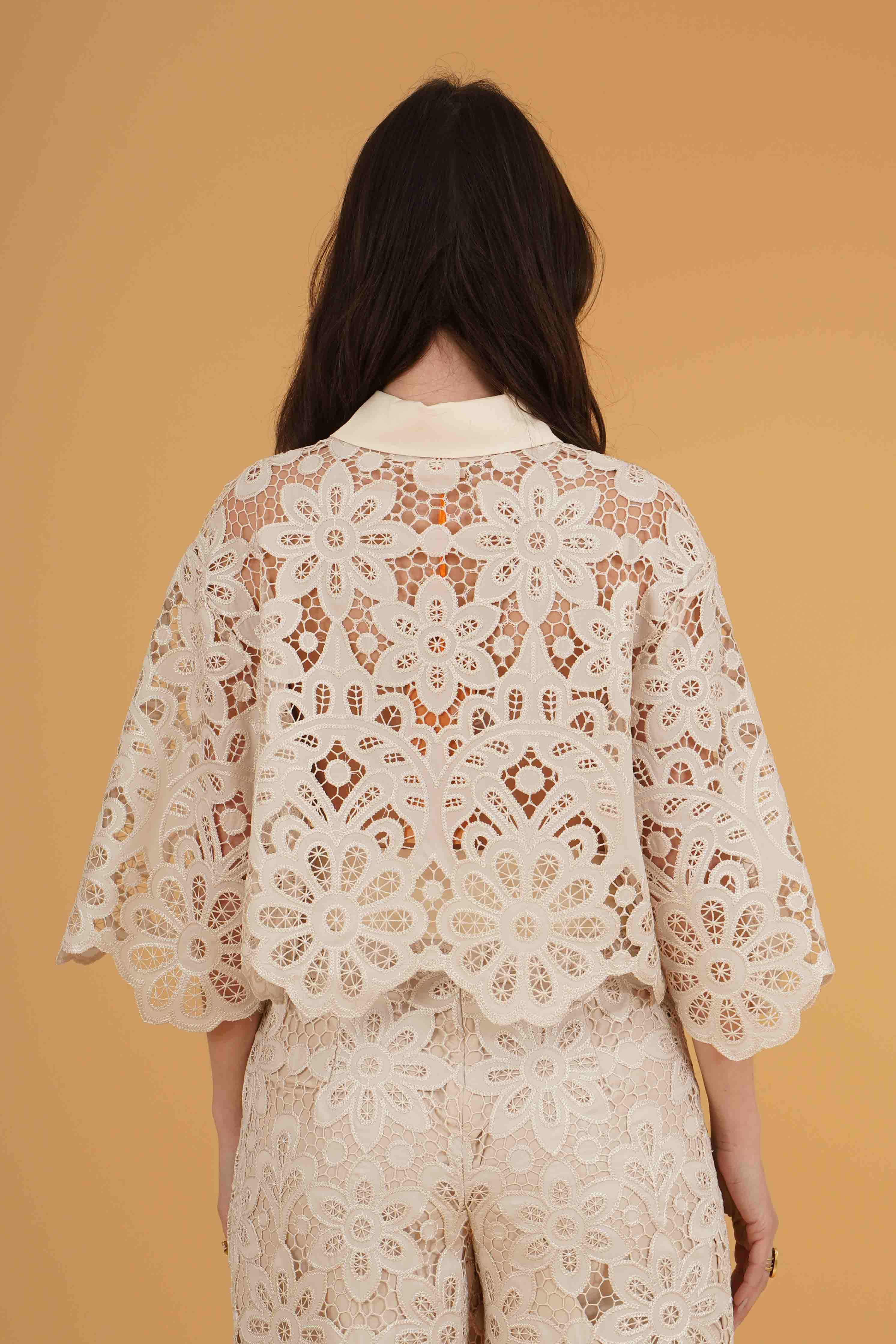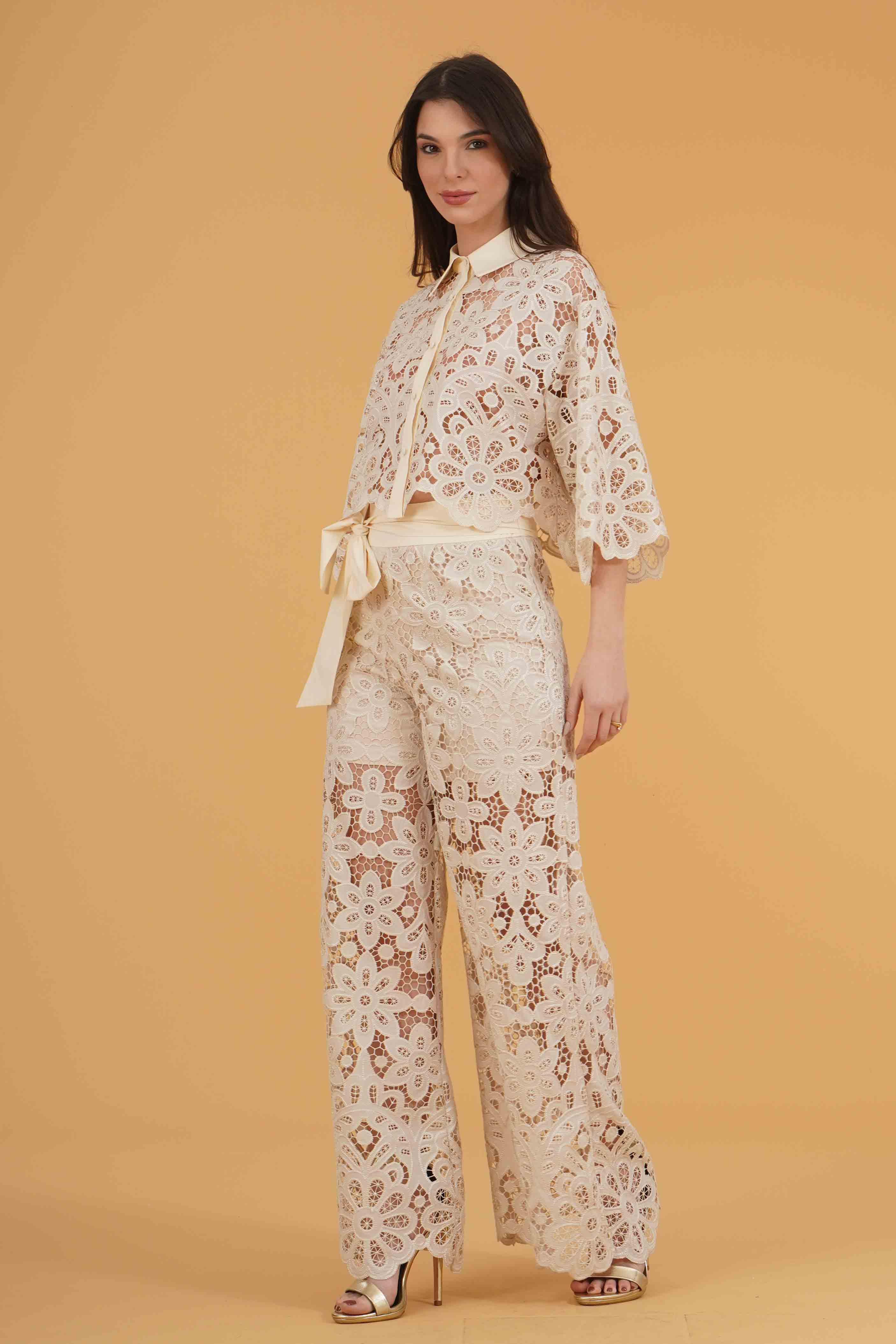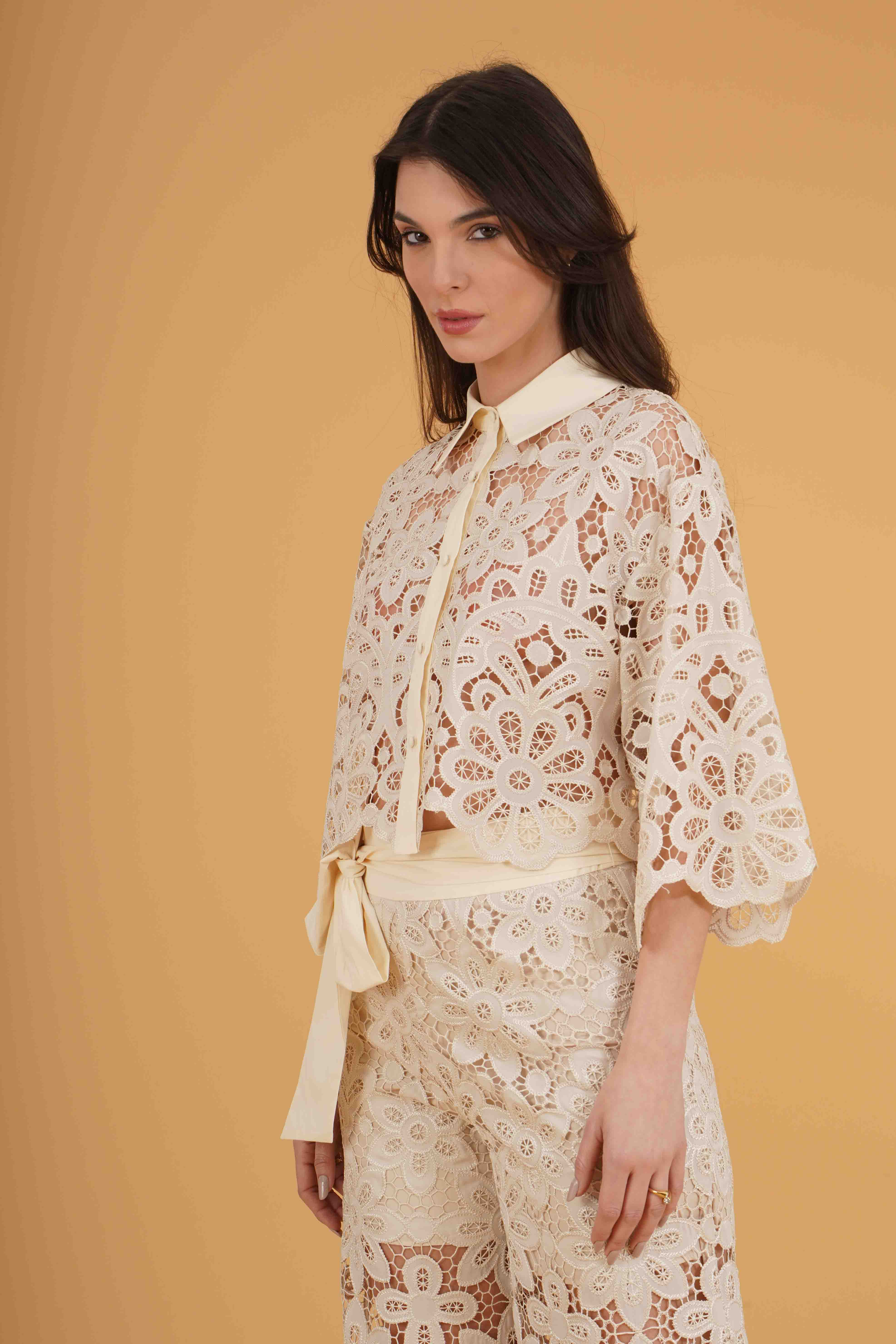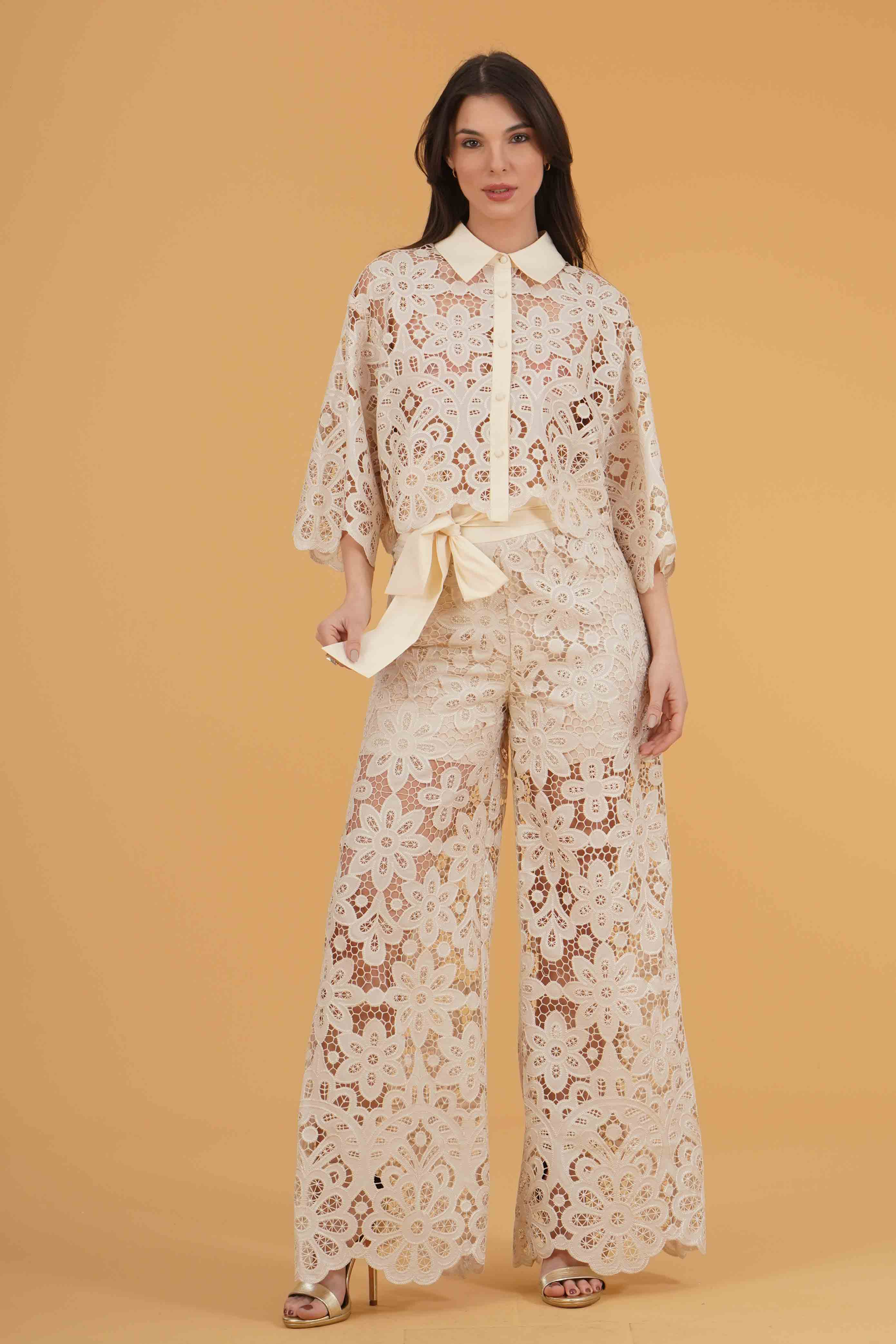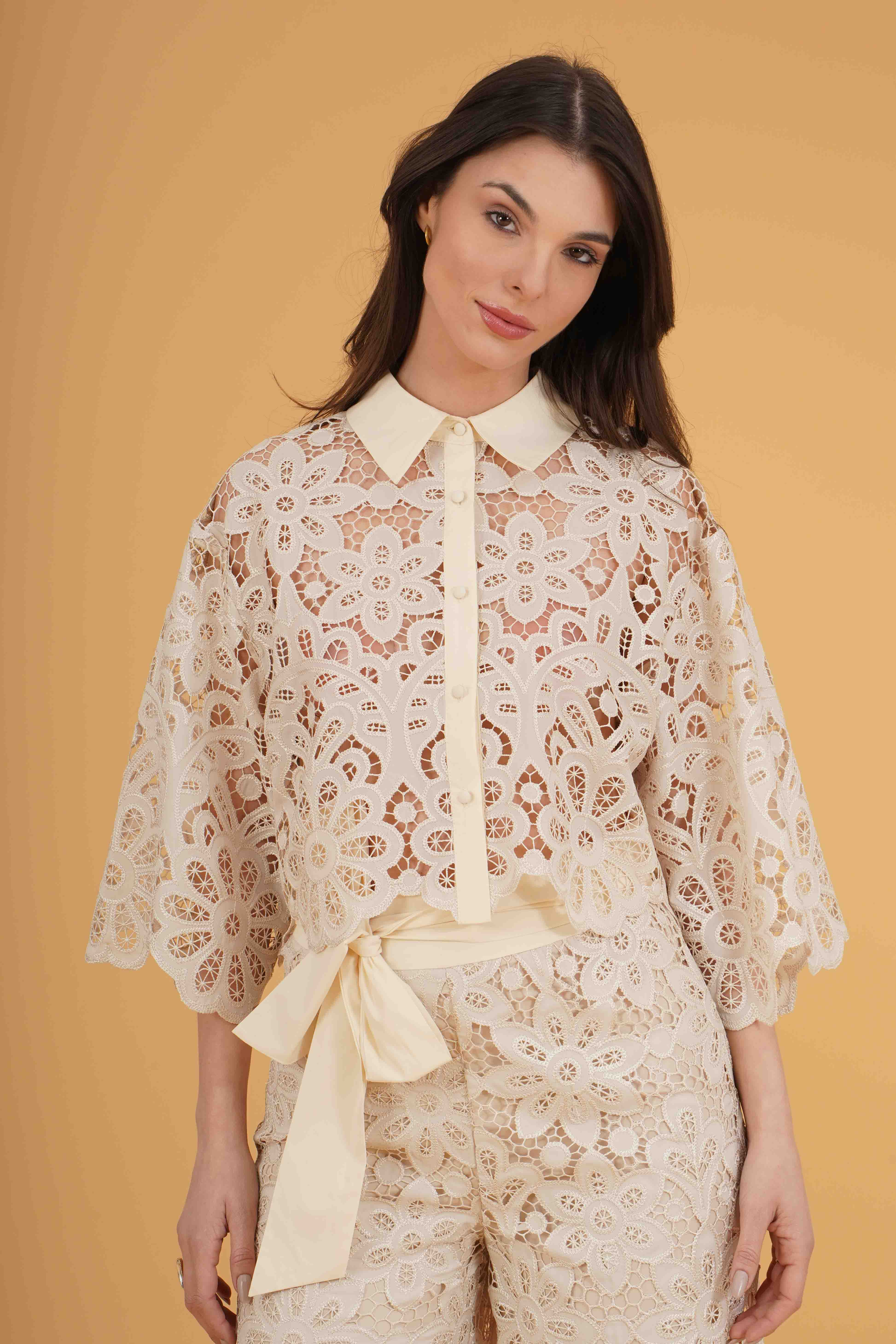 Vestibilita' regolare. Camicia cropp. Chiusura con bottoni. Manica tre quarti ampia. Pantalone vita alta. Cintura removibile. Chiusura con zip invisibile posteriore. Pnatloncino non removibile. Altezza modella 1,78. Nella foto indossa la taglia 40. Composizione: 100% Poliestere. Brand: Twins Fantasy