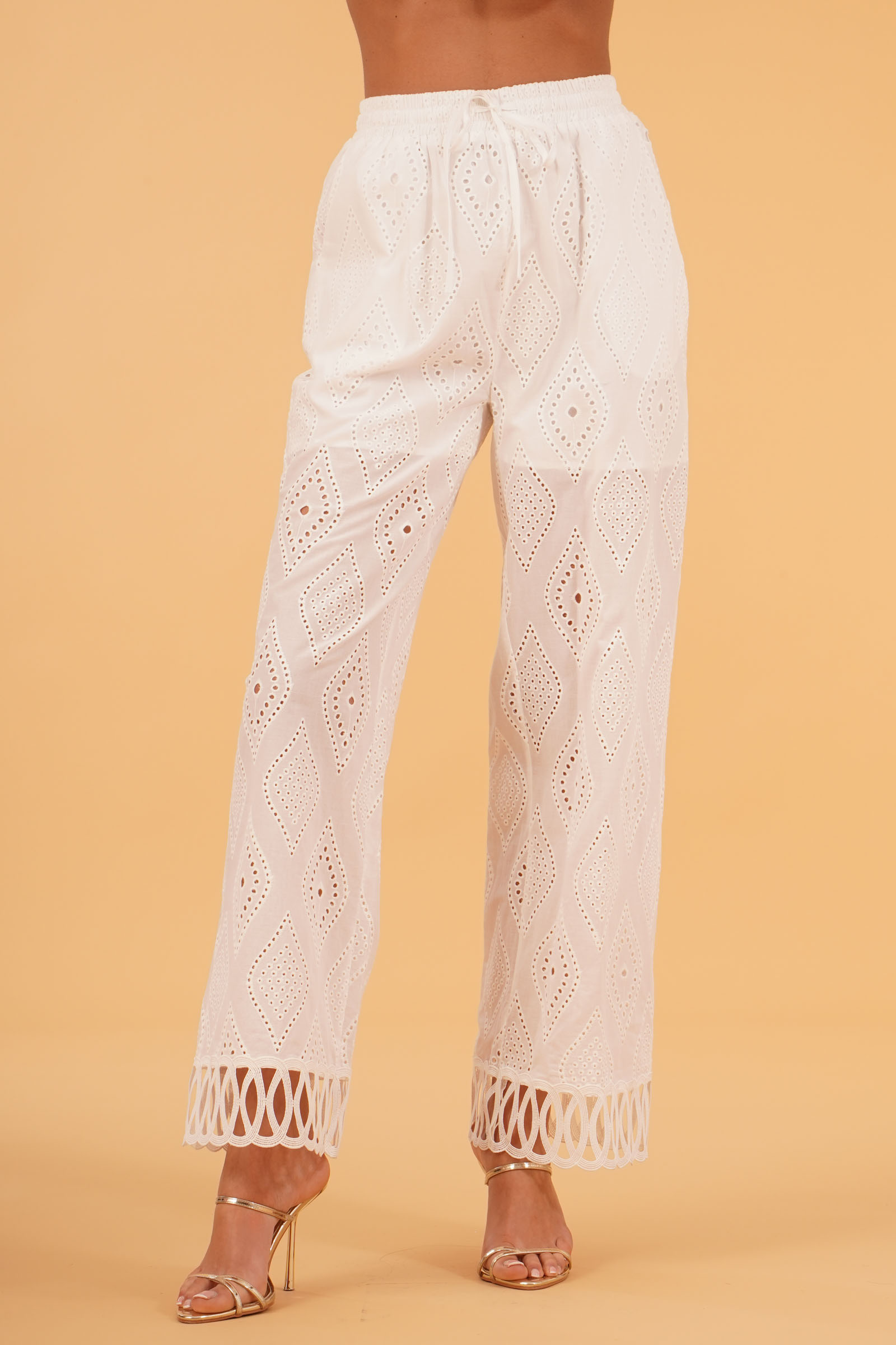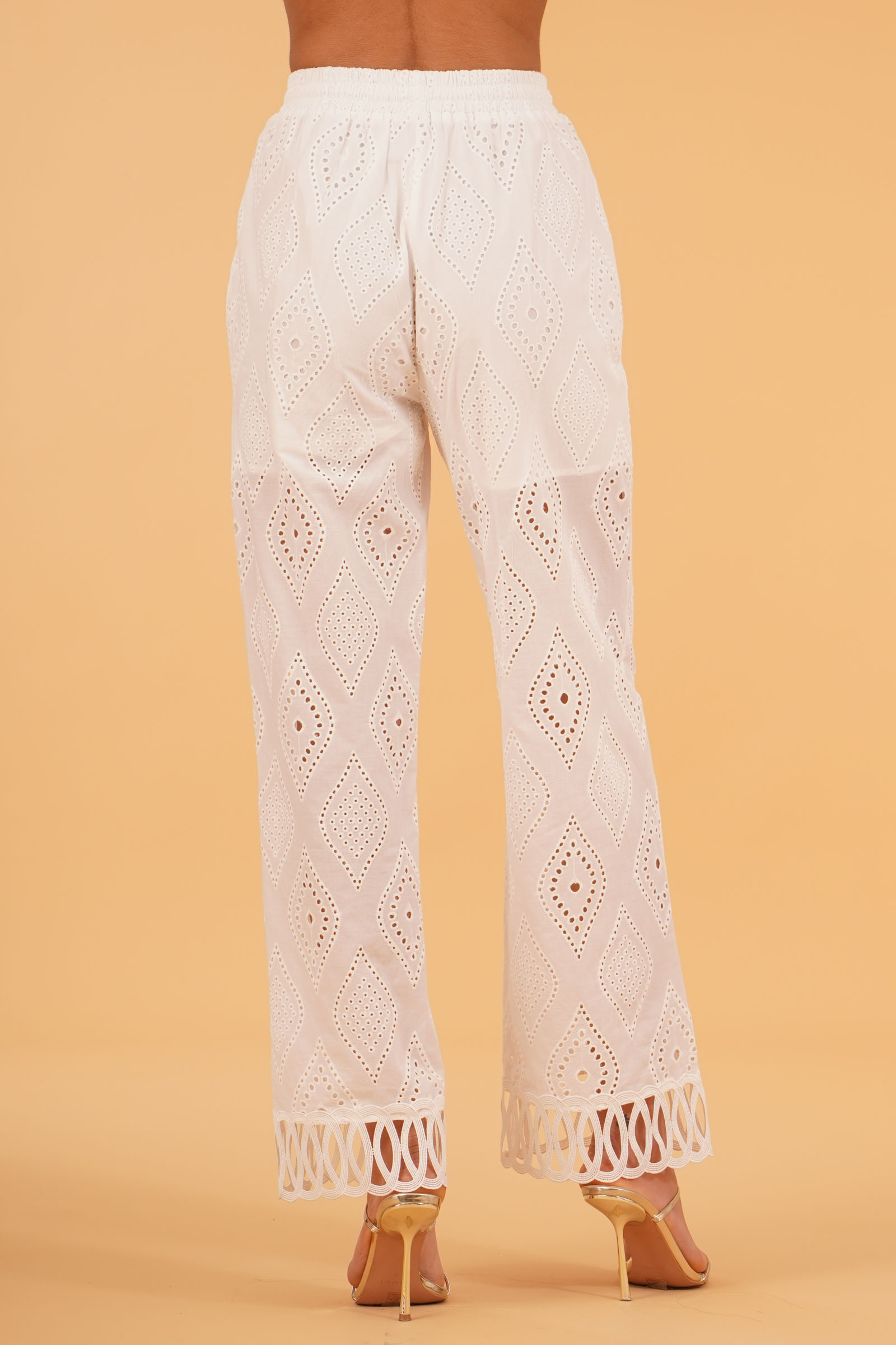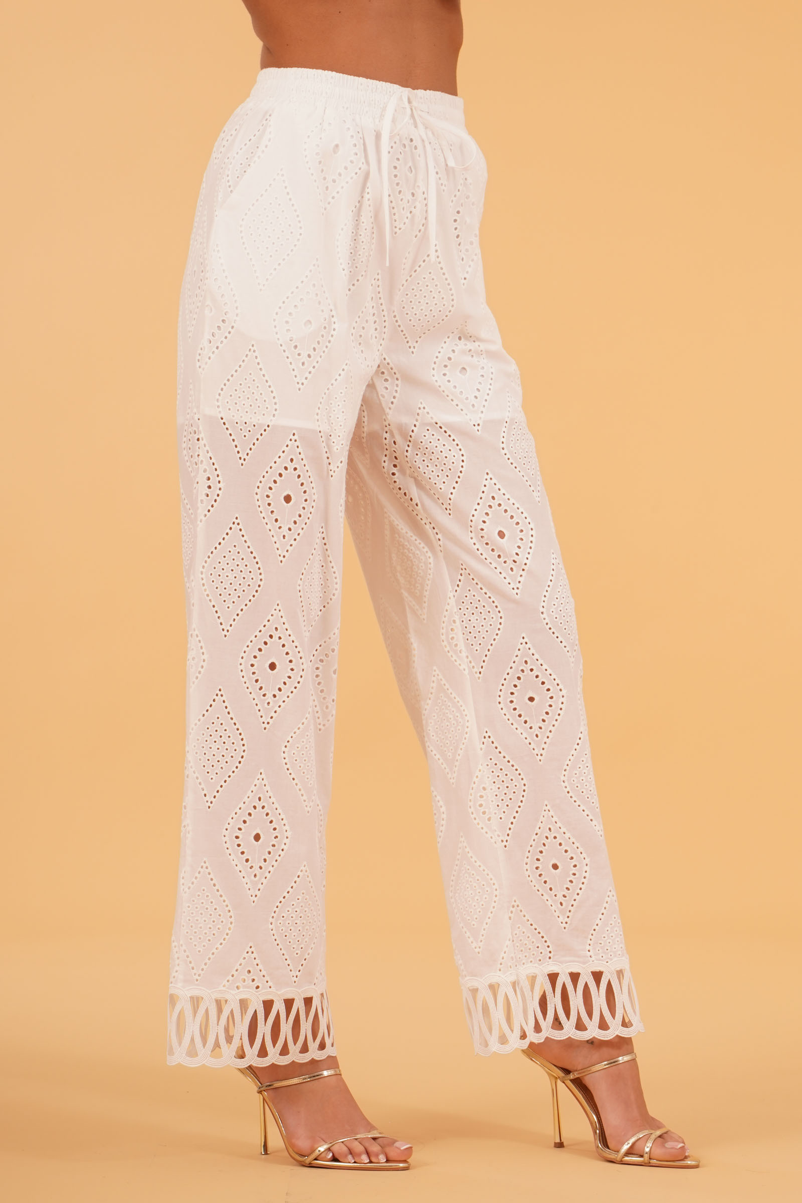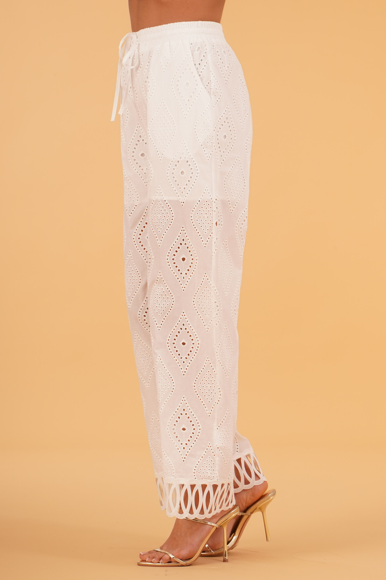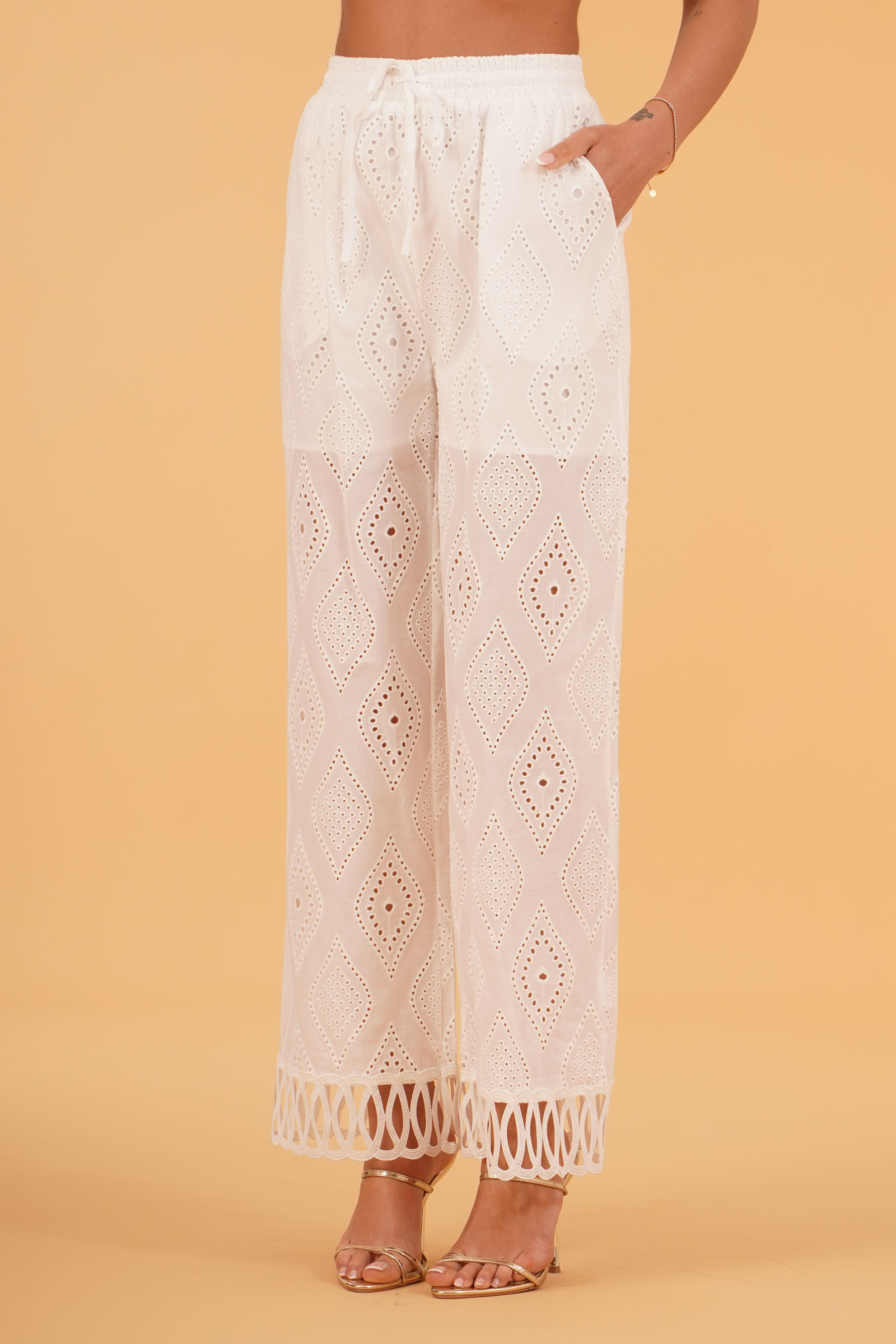 Vestibilita' regolare. Elastico piu' laccetto in vita. Ricamo traforato a rombi. Tasche america. Fodera a pantaloncino. Altezza modella 1,80. Nella foto indossa la taglia S. Composizione: 100% Cotone. Brand: U R INK