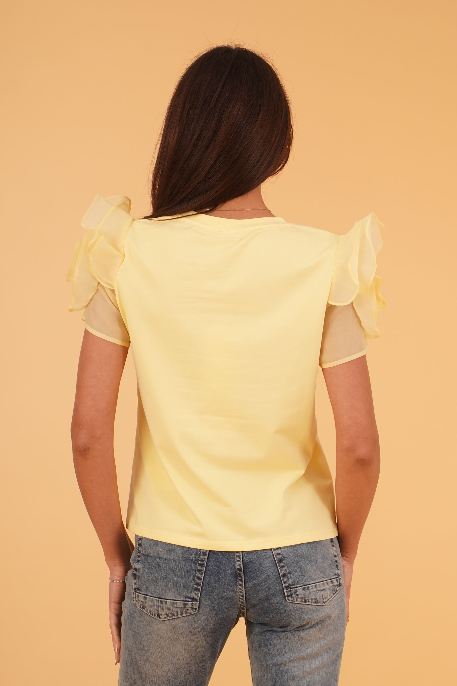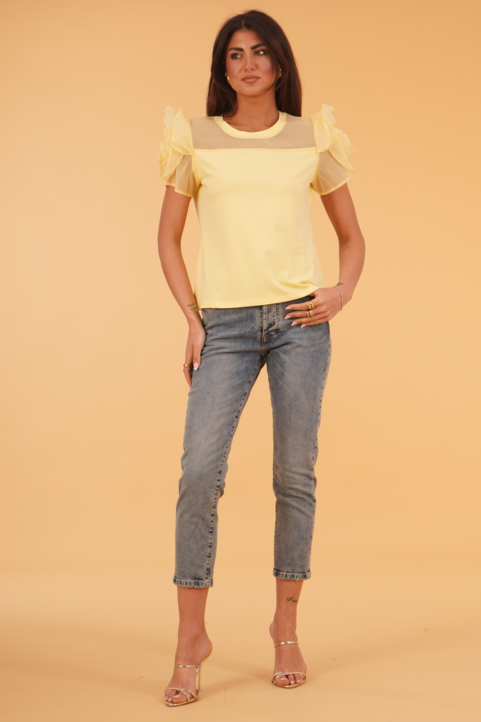 Vestibilita' regolare. Dettagli di tulle piu' rouches. Altezza modella 1,80. Indossa taglia S. Composizione: 92% Cotone, 8% Elastane. Brand: Z.O.E.
