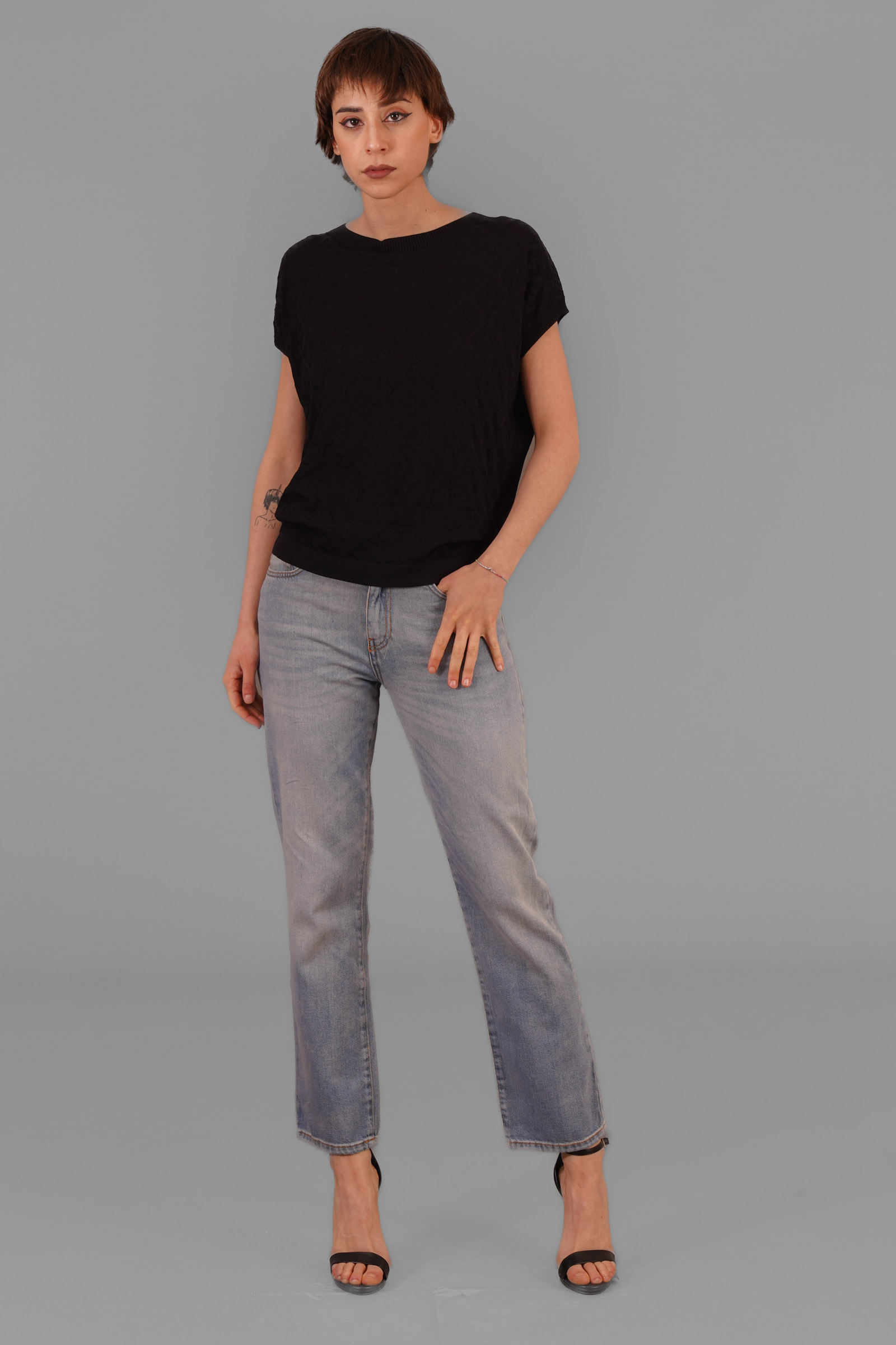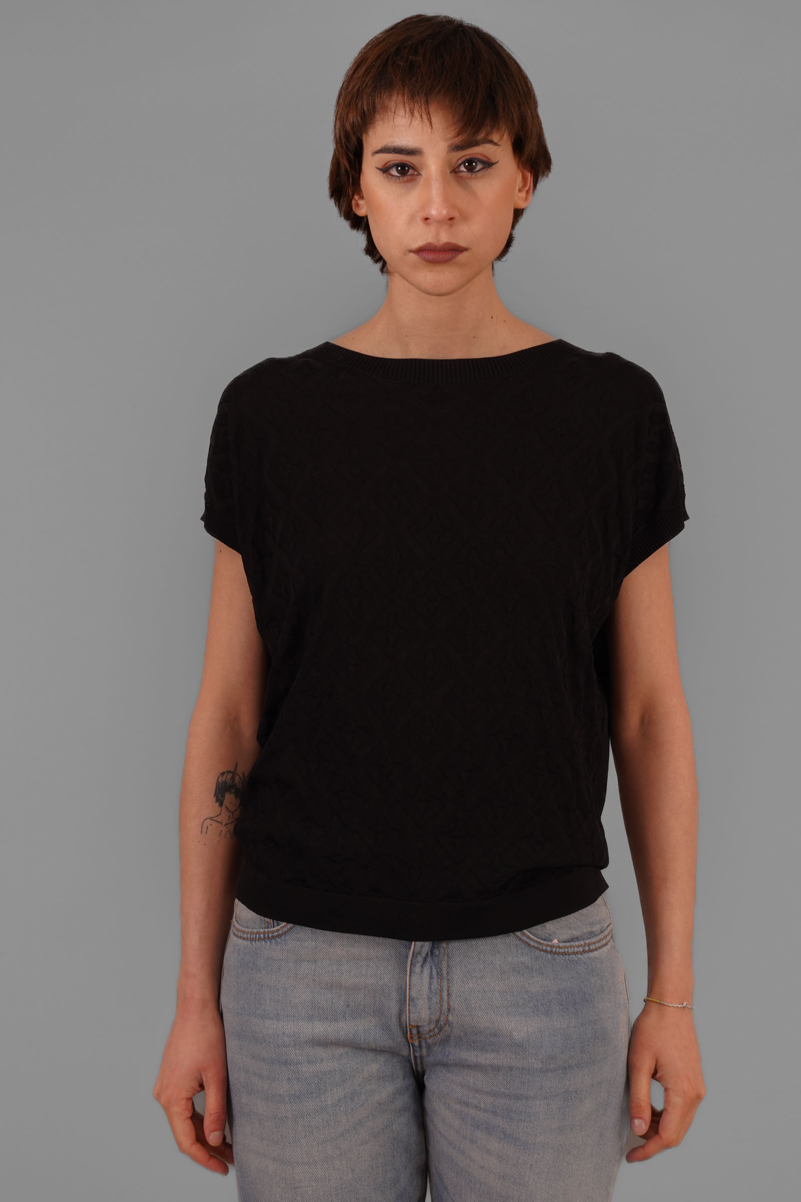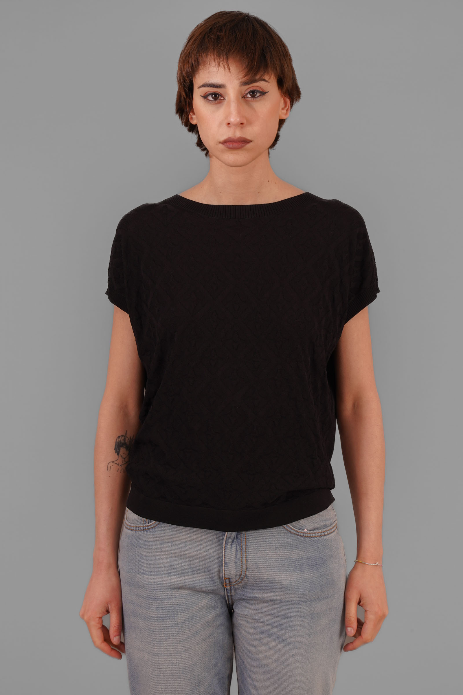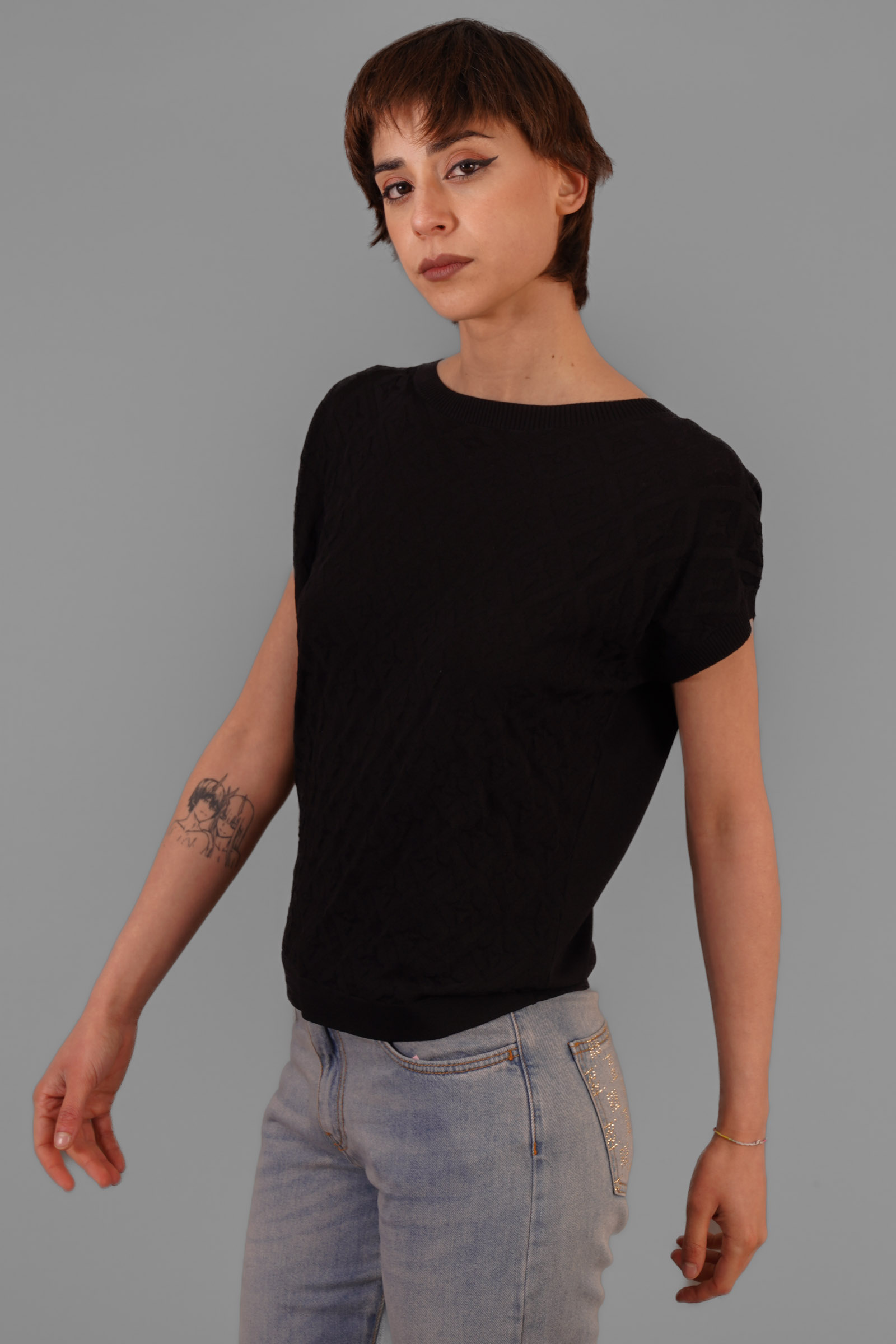 Vestibilita' regolare. Mezze maniche. Girocollo. Altezza modella 1,82. Nella foto indossa la taglia S. Composizione: 65% Viscosa, 35% Poliammide. Brand: Z.O.E